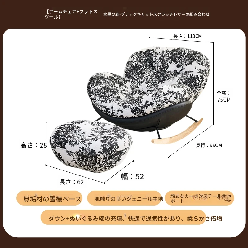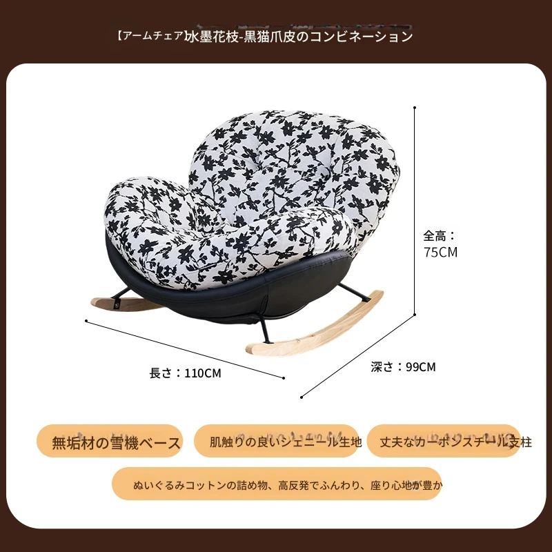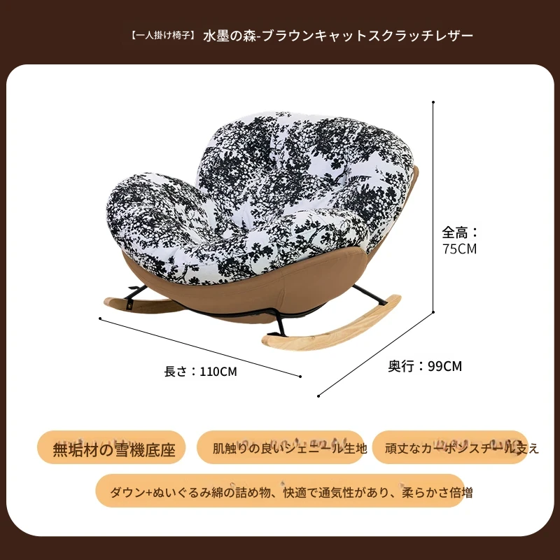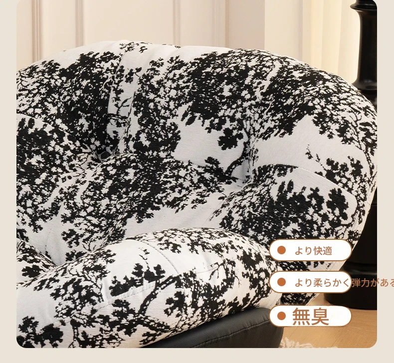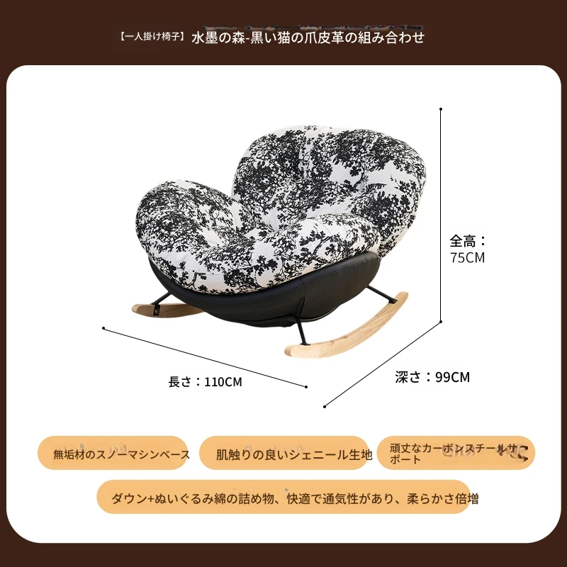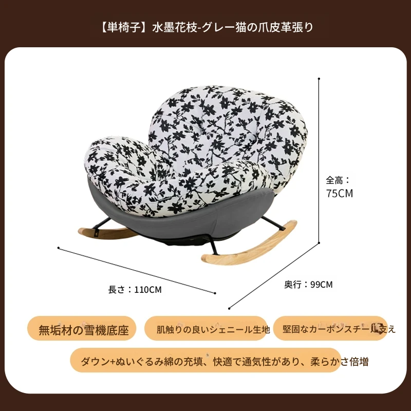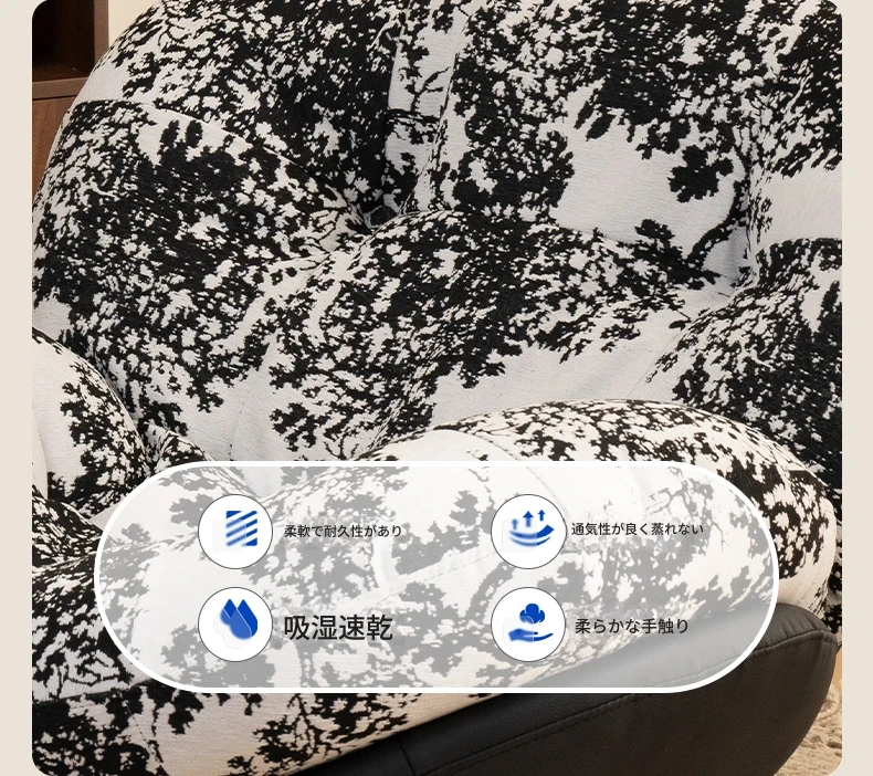 【一人掛け椅子】水墨花枝シェニール-ブラックキャットスクラッチレザー(ぬいぐるみ綿+ダウン)