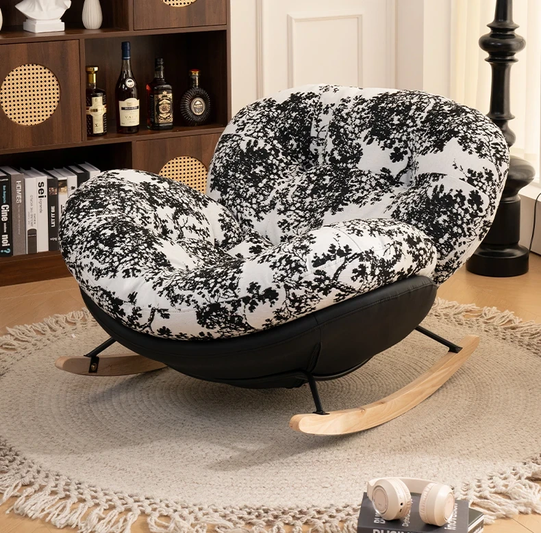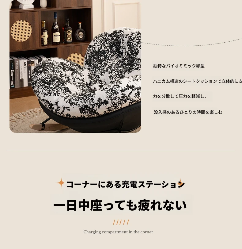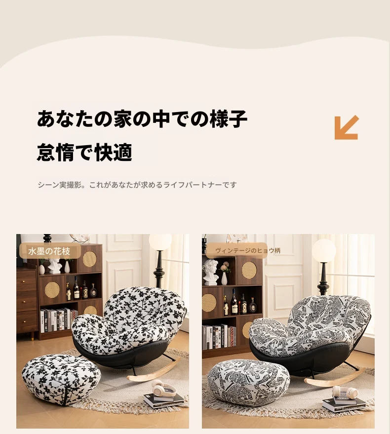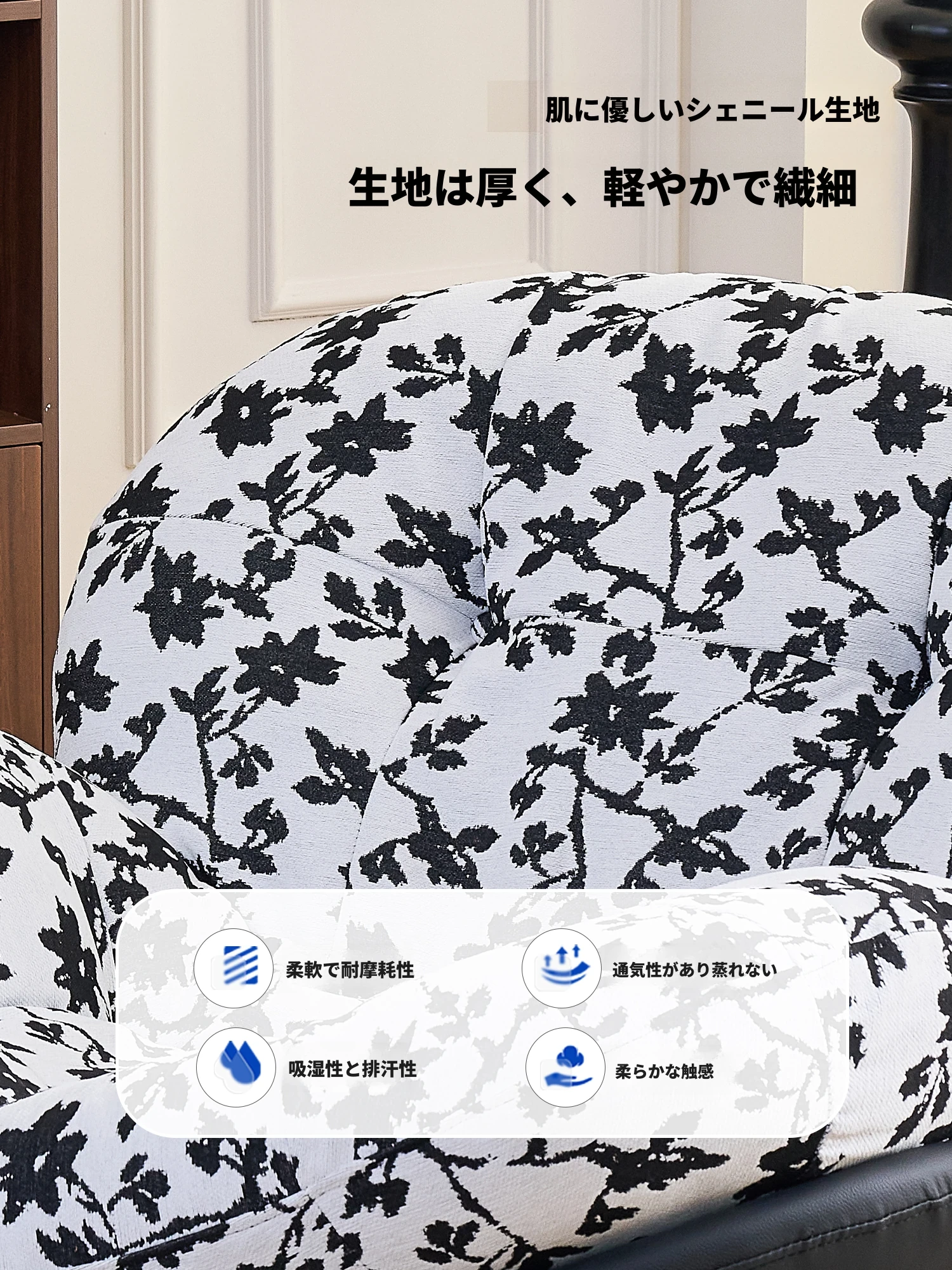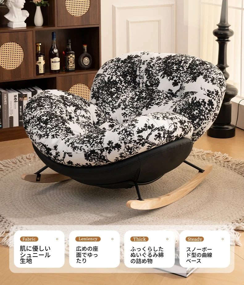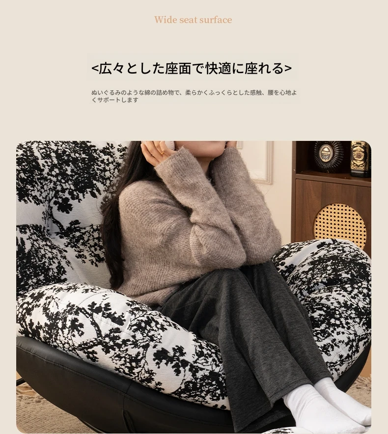 【一人掛け椅子】水墨花枝シェニール-ブラックキャットスクラッチレザー(ぬいぐるみ綿+ダウン)