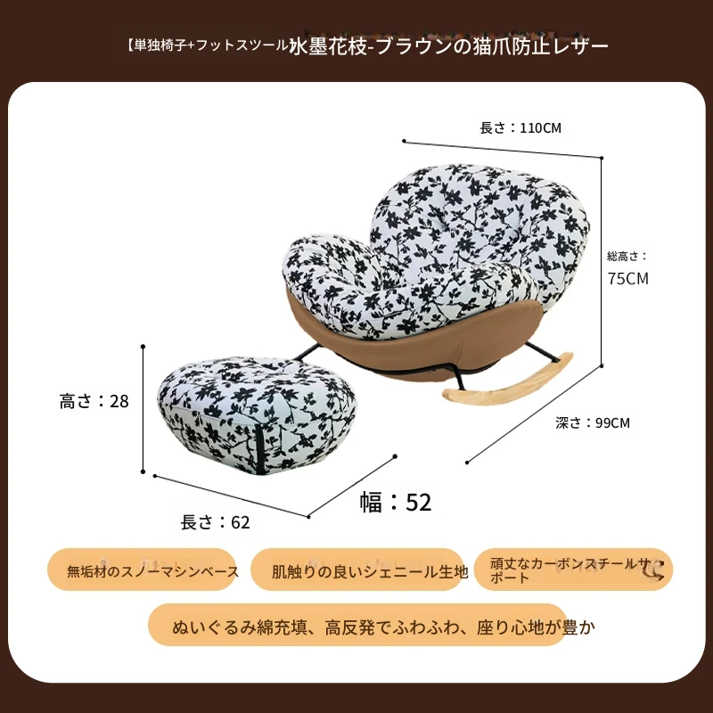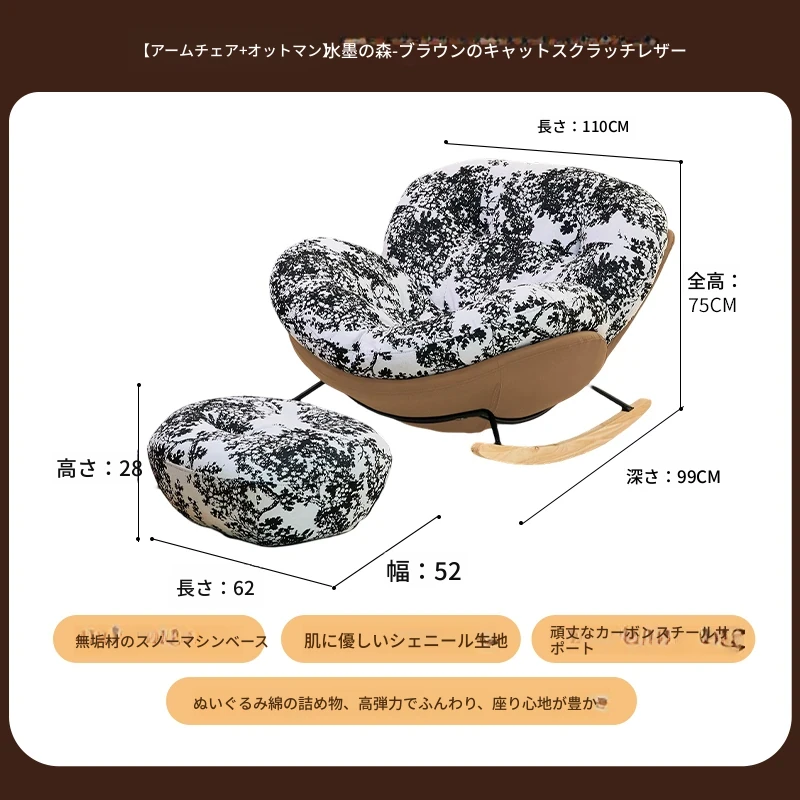 【一人掛け椅子+オットマン】水墨花枝シェニール-ブラウンキャットスクラッチレザー(ぬいぐるみ綿)