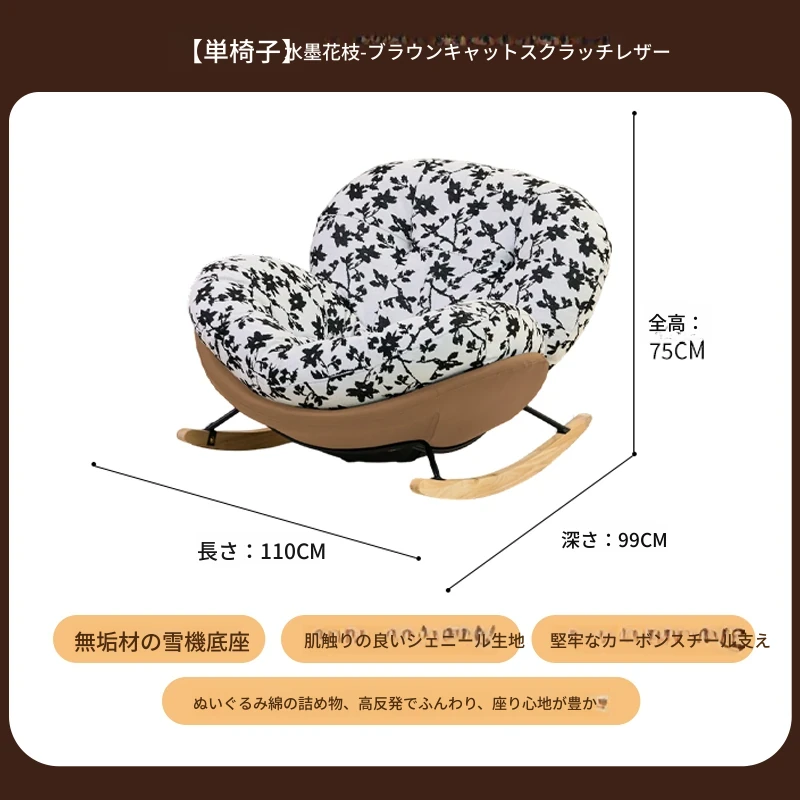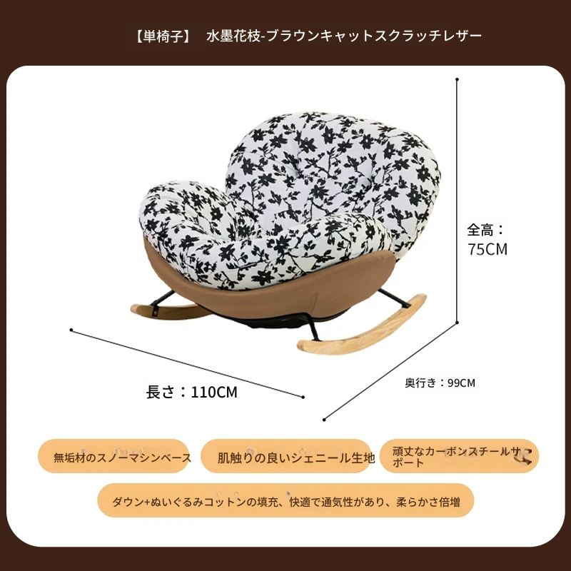 【一人掛け椅子】水墨花枝シェニール-ブラウンキャットスクラッチレザー(ぬいぐるみ綿+ダウン)