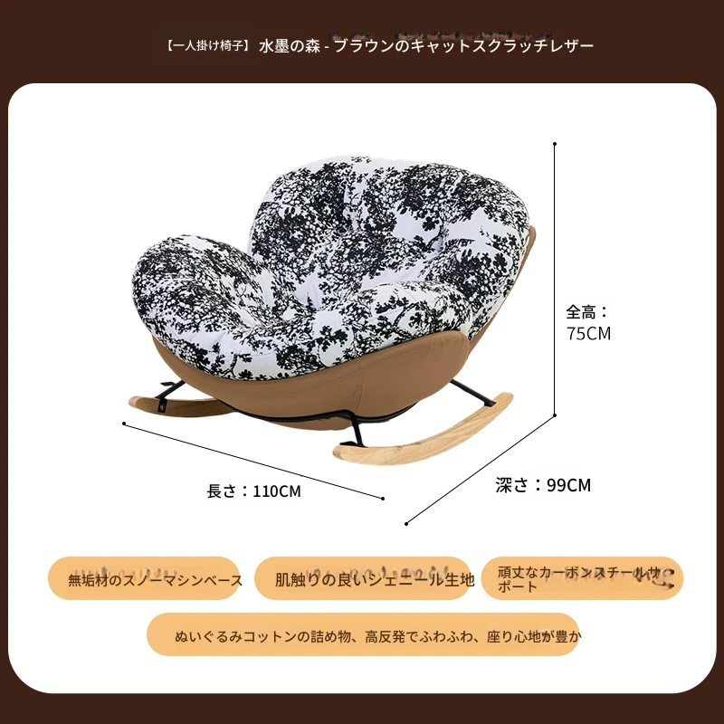 【一人掛け椅子】水墨花枝シェニール-ブラウンキャットスクラッチレザー(ぬいぐるみ綿)