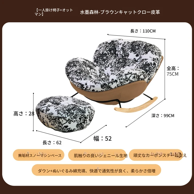 【一人掛け椅子+オットマン】水墨森林シェニール-ブラウンキャットスクラッチレザー(ぬいぐるみ綿)