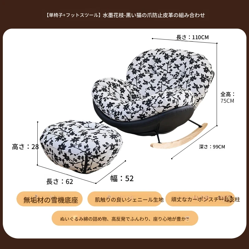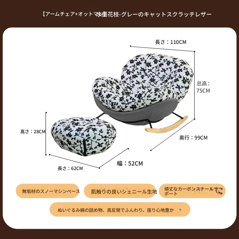 【一人掛け椅子+オットマン】水墨花枝シェニール-ブラックキャットスクラッチレザー(ぬいぐるみ綿)