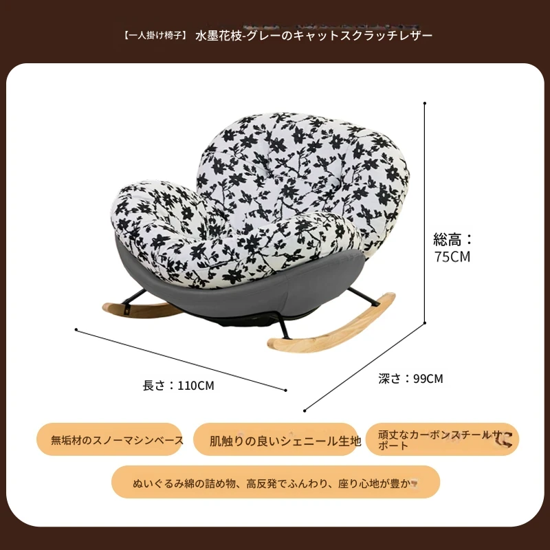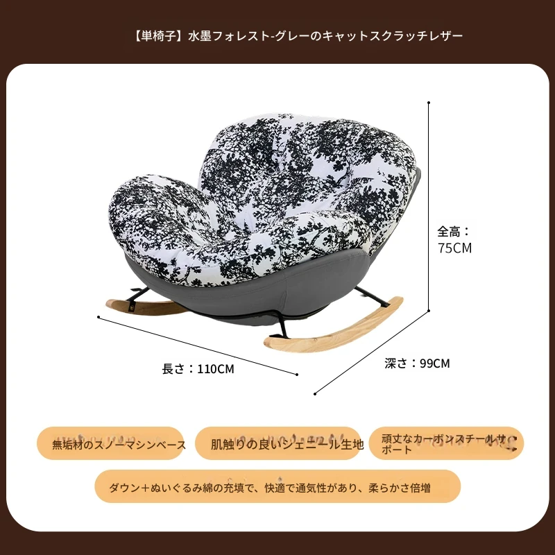 【一人掛け椅子】水墨花枝シェニール-グレーキャットスクラッチレザー(ぬいぐるみ綿+ダウン)