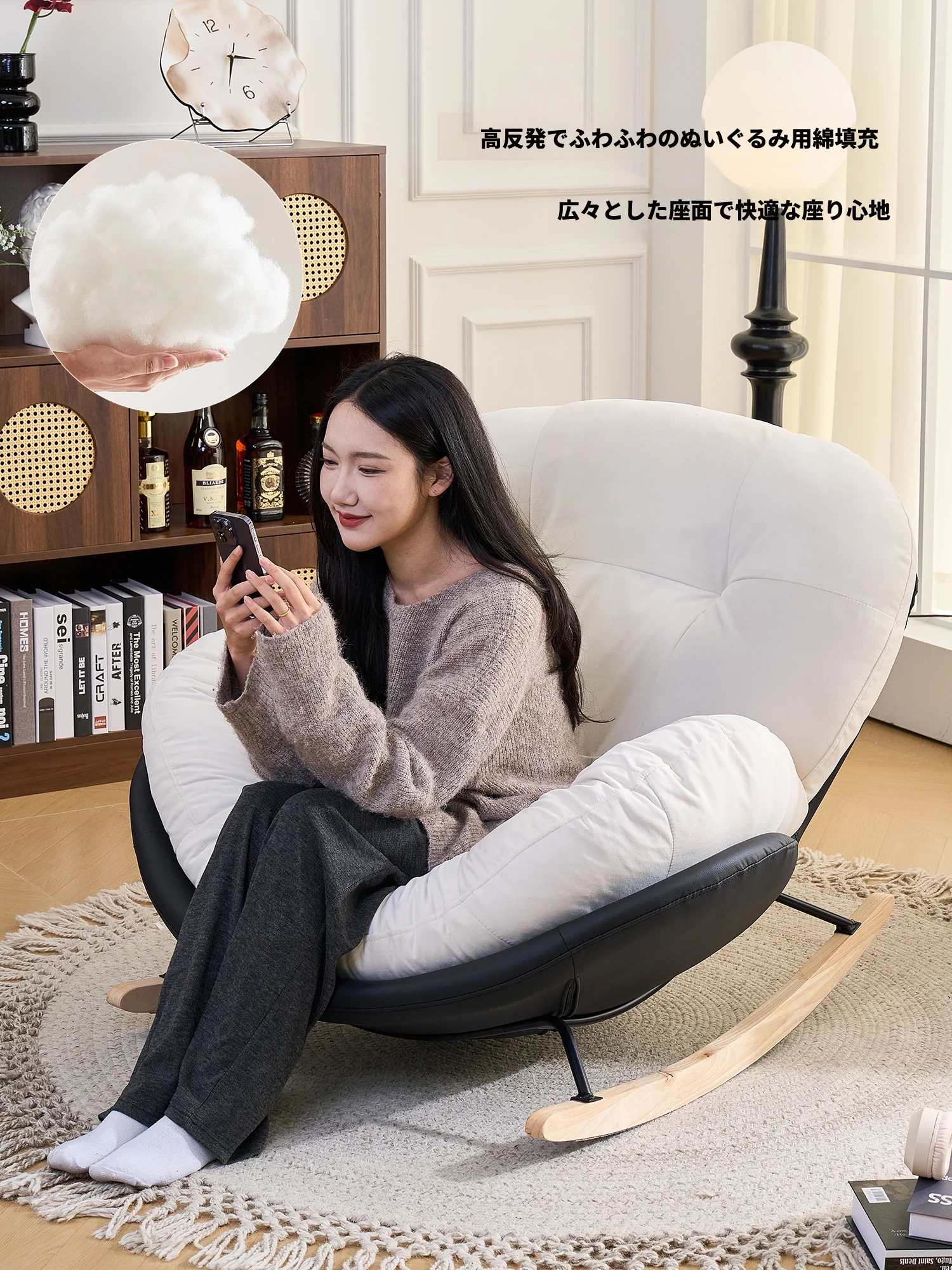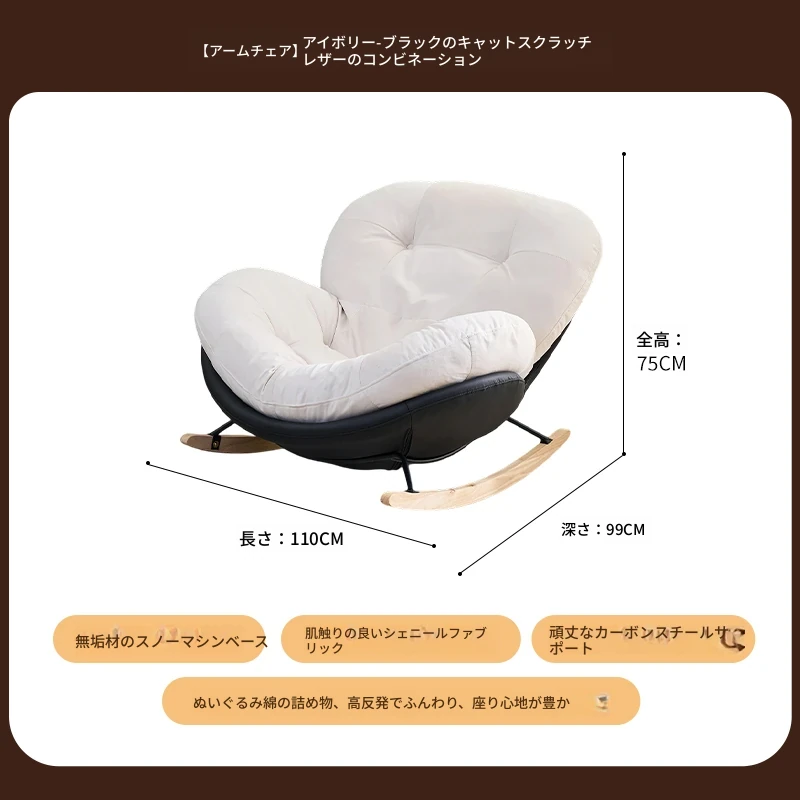 【一人掛け椅子】アイボリースエード-ブラックキャットスクラッチレザー(ぬいぐるみ綿+ダウン)