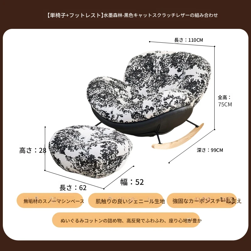 【一人掛け椅子+オットマン】水墨森林シェニール-ブラックキャットスクラッチレザー(ぬいぐるみ綿)