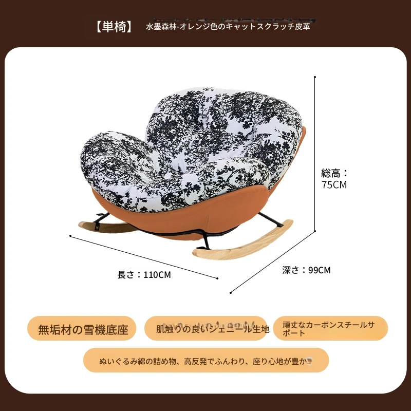 【一人掛け椅子】水墨森林シェニール-オレンジキャットスクラッチレザー(ぬいぐるみ綿+ダウン)