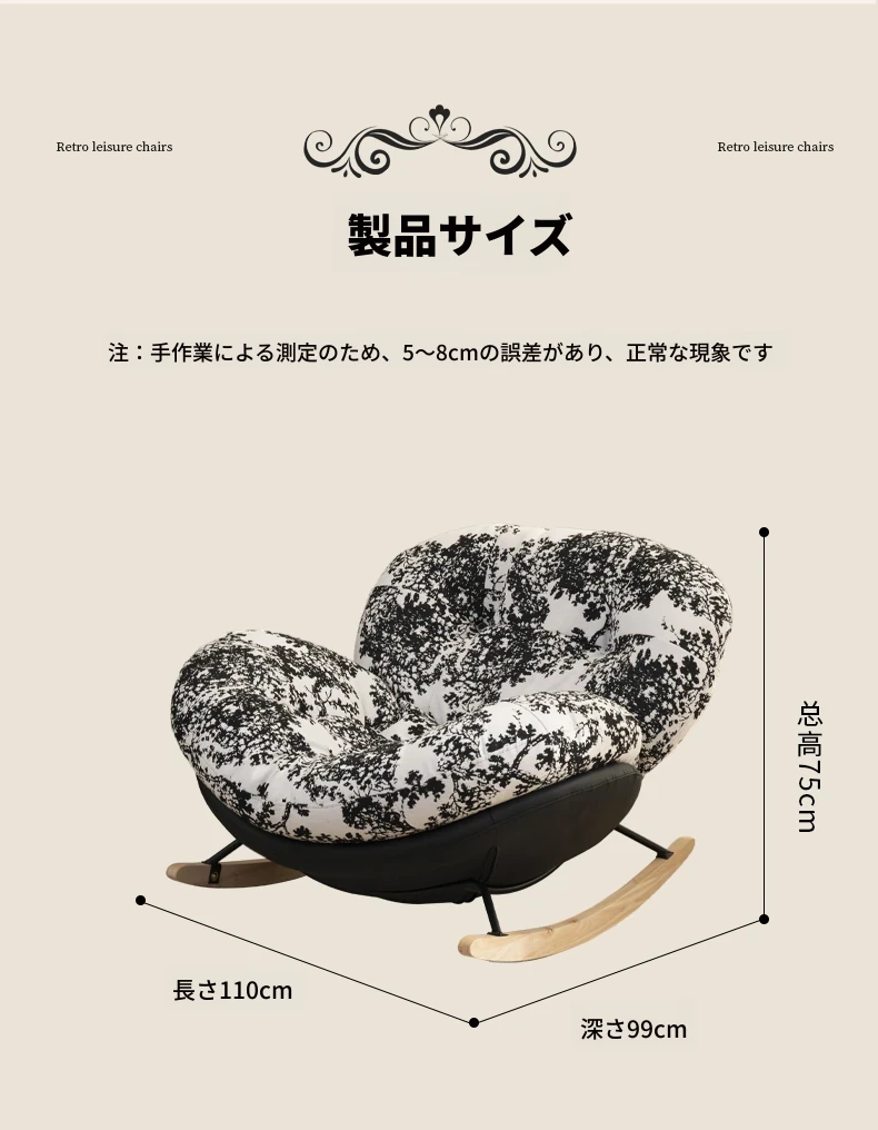 【一人掛け椅子】水墨花枝シェニール-ブラックキャットスクラッチレザー(ぬいぐるみ綿)