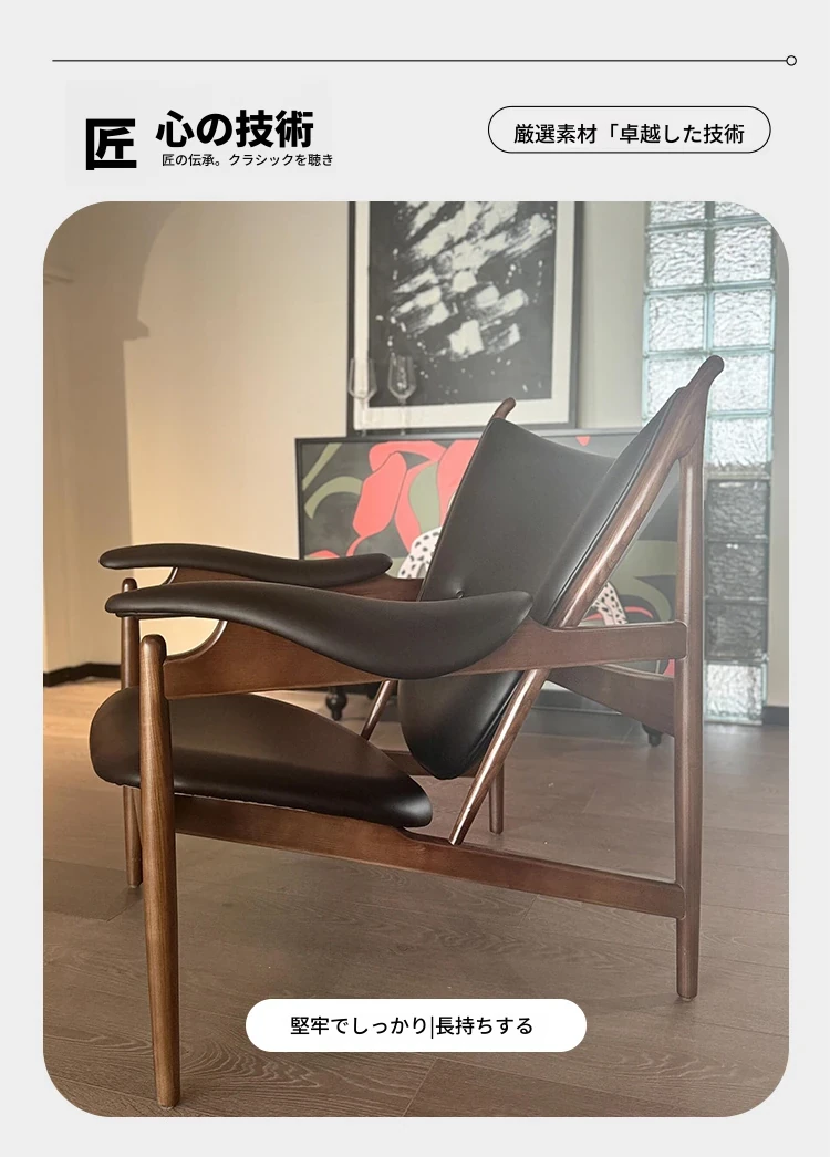 新しい中式デザインの無垢材製エグゼクティブチェア - モダンでシンプル、ラグジュアリーな雰囲気を演出。高級感あふれるウォールナットの木目とレザー張りで、リラックスできる家庭用ソファチェア。