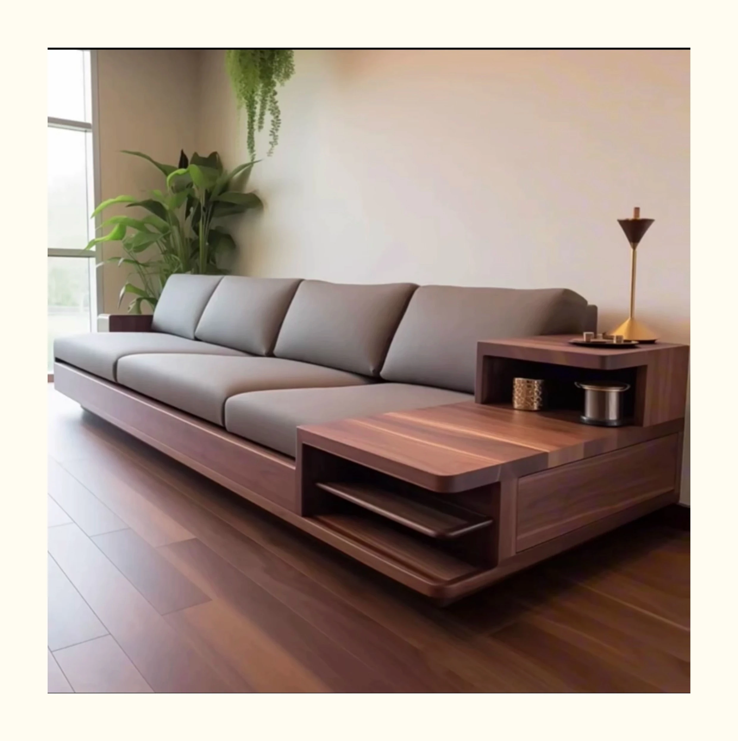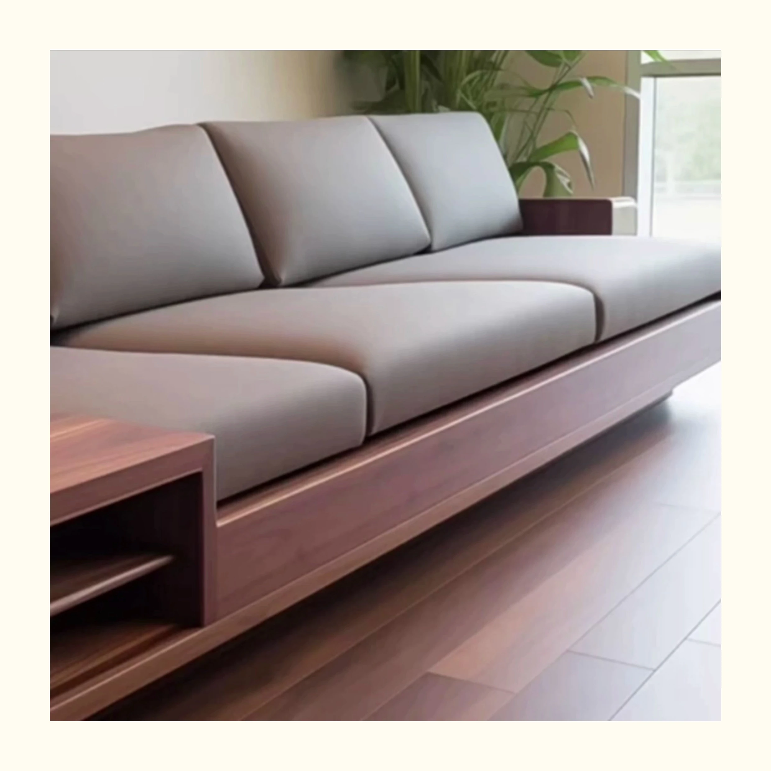 新中式モダンデザインの簡約直排式無垢材ソファ - 高級感溢れるウォールナット仕上げ、快適な三人掛けソファで、リビングをスタイリッシュに演出!