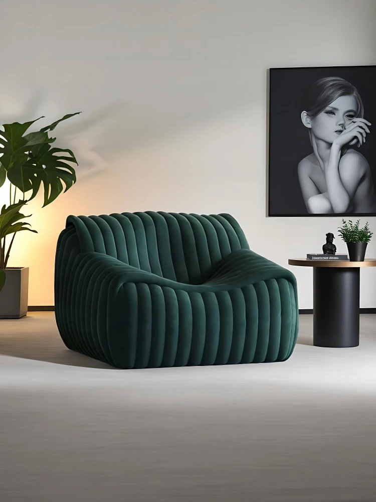 イタリアンミニマル軽奢リラックス1人掛けチェア|寝室・リビング・バルコニーに最適|モデルルーム・民宿・小型住宅にぴったりなラウンジソファ!心地よいひとときをお届けします。