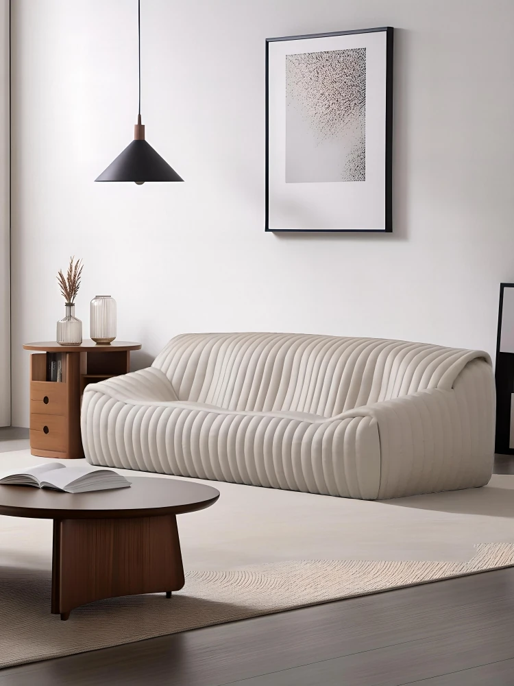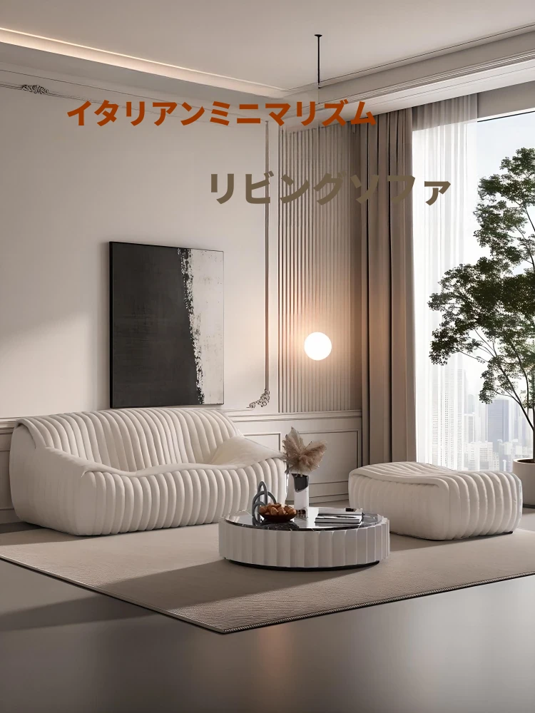モダンミニマリストデザインの小型リビング用3人掛けソファ - 和の美学を感じる侘寂風、展示会やアパレルショップにもぴったり!シンプルで洗練された空間を演出します。