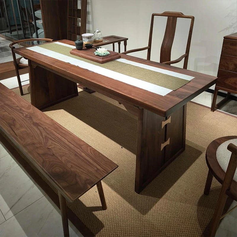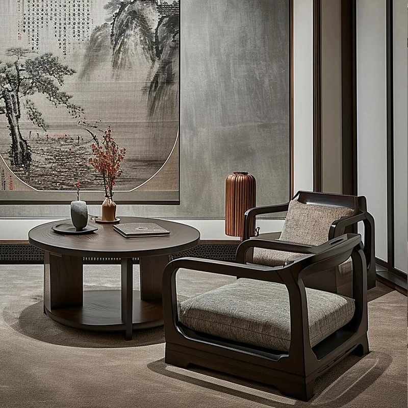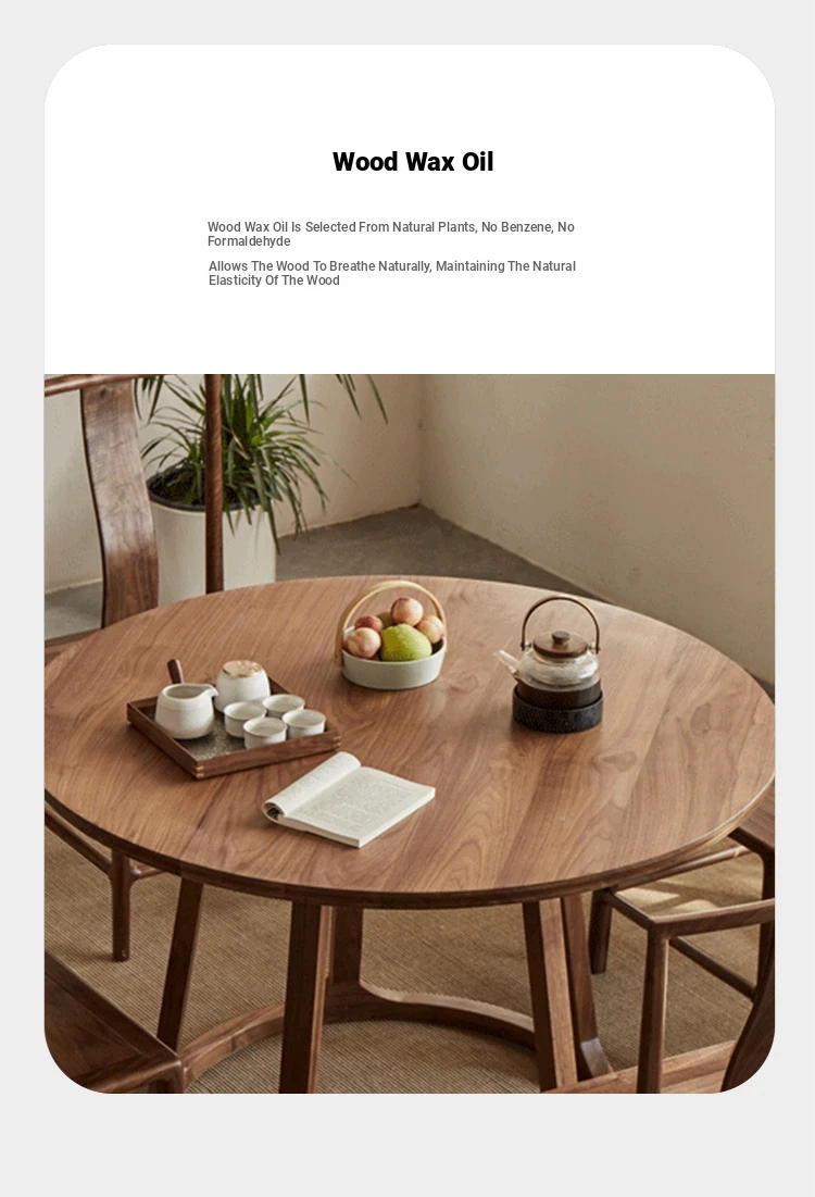 Modern Round Walnut Dining Table - Minimalist Light Luxury New Chinese Style Solid Wood Table for Living Room, Ideal for Home Use with Rotating Base