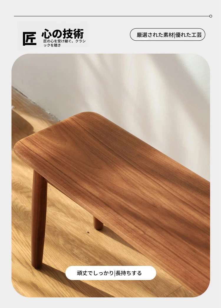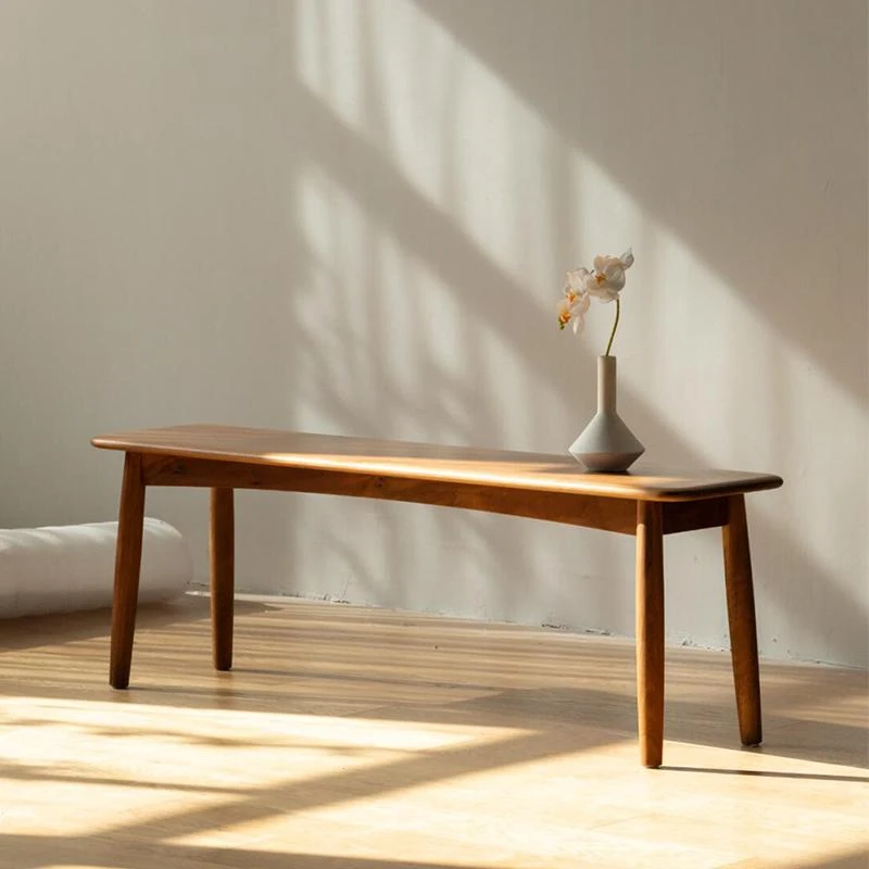 新中式スタイルの無垢材ロングベンチ|モダンでシンプルなデザイン|家庭用・ベッドサイド・靴を履くためのベンチ|ダイニングテーブルにもぴったり!快適さとスタイルを兼ね備えた一品。