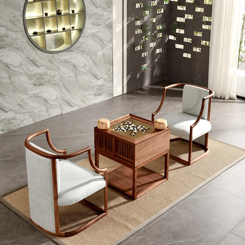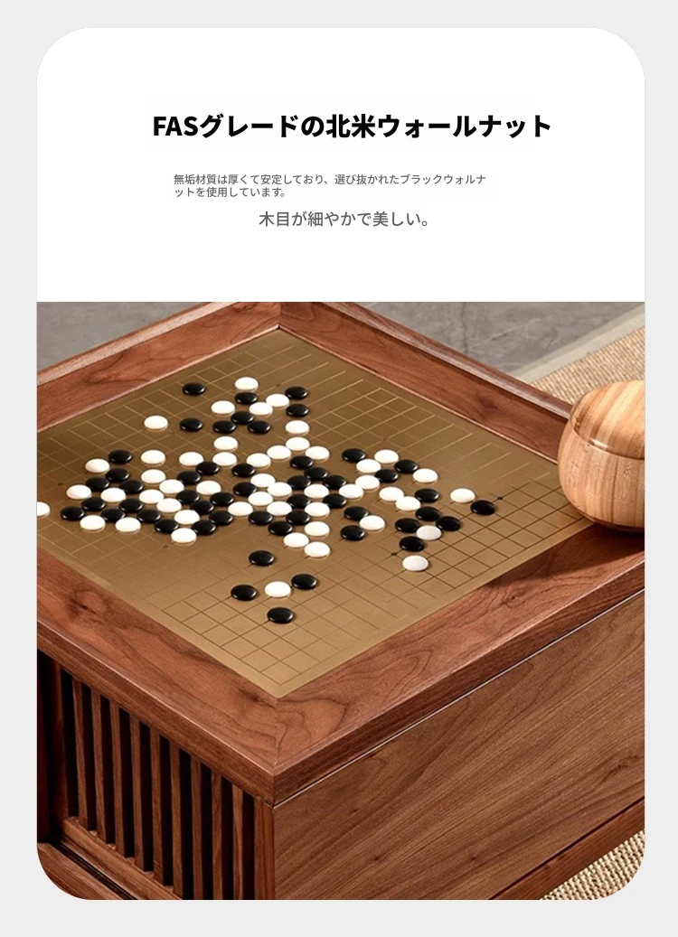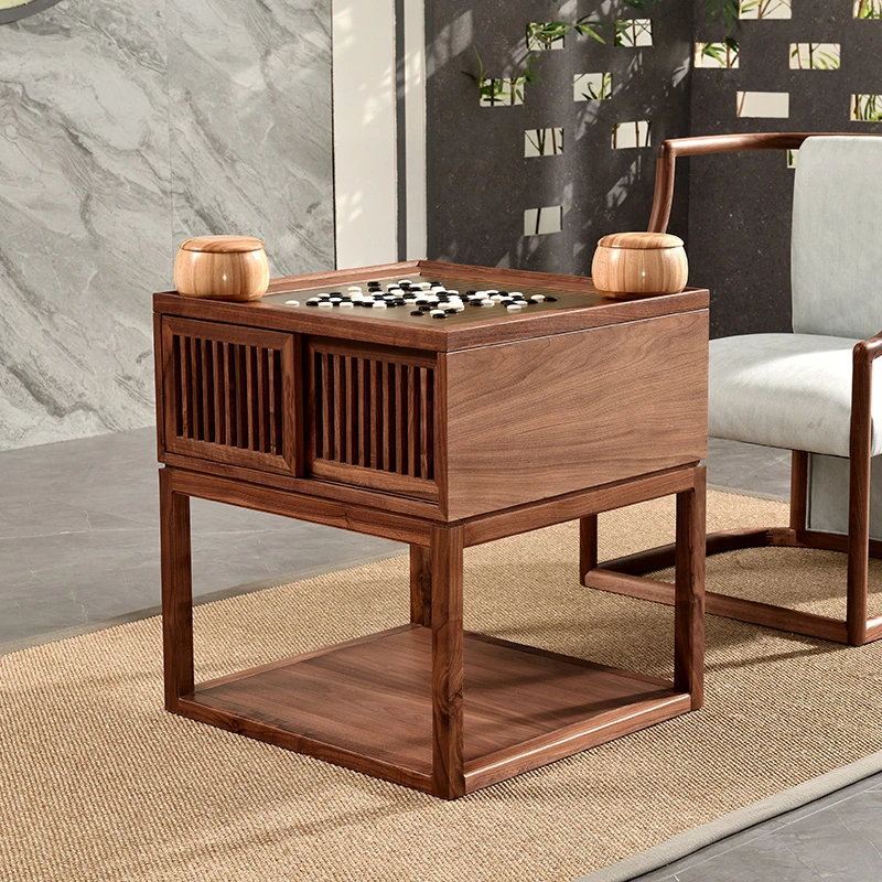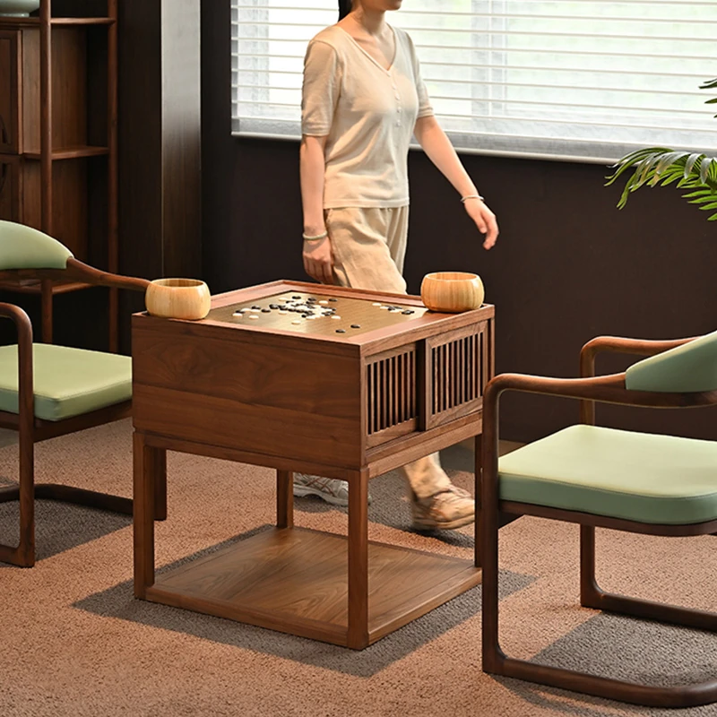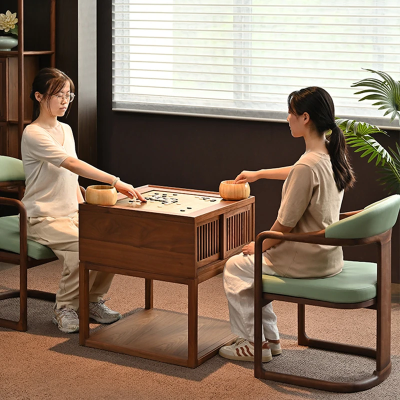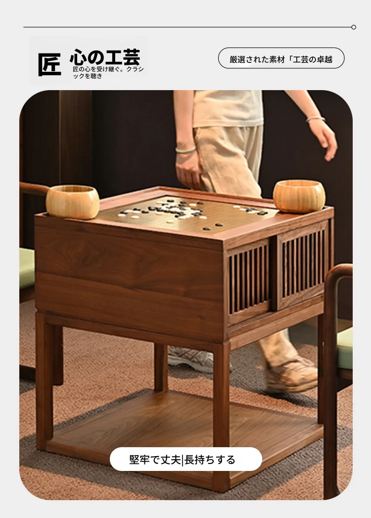 新中式本格木製囲碁テーブル - モダンな禅の雰囲気漂う、ブラックウォールナット製の高級家庭用囲碁台。学びと対戦を楽しむための理想的な空間を提供します。