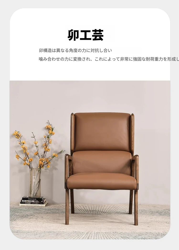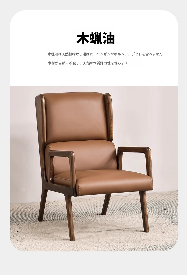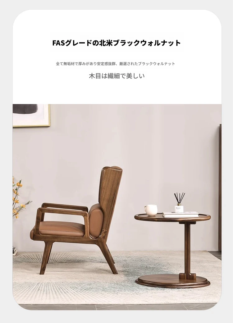 リビングデザイン用シングルソファ バルコニーに最適な禅スタイルリラックスチェア ブラックウォールナット製 休憩エリアや接客にもぴったりな本革ソファ椅子で、心地よいひとときをお楽しみください。