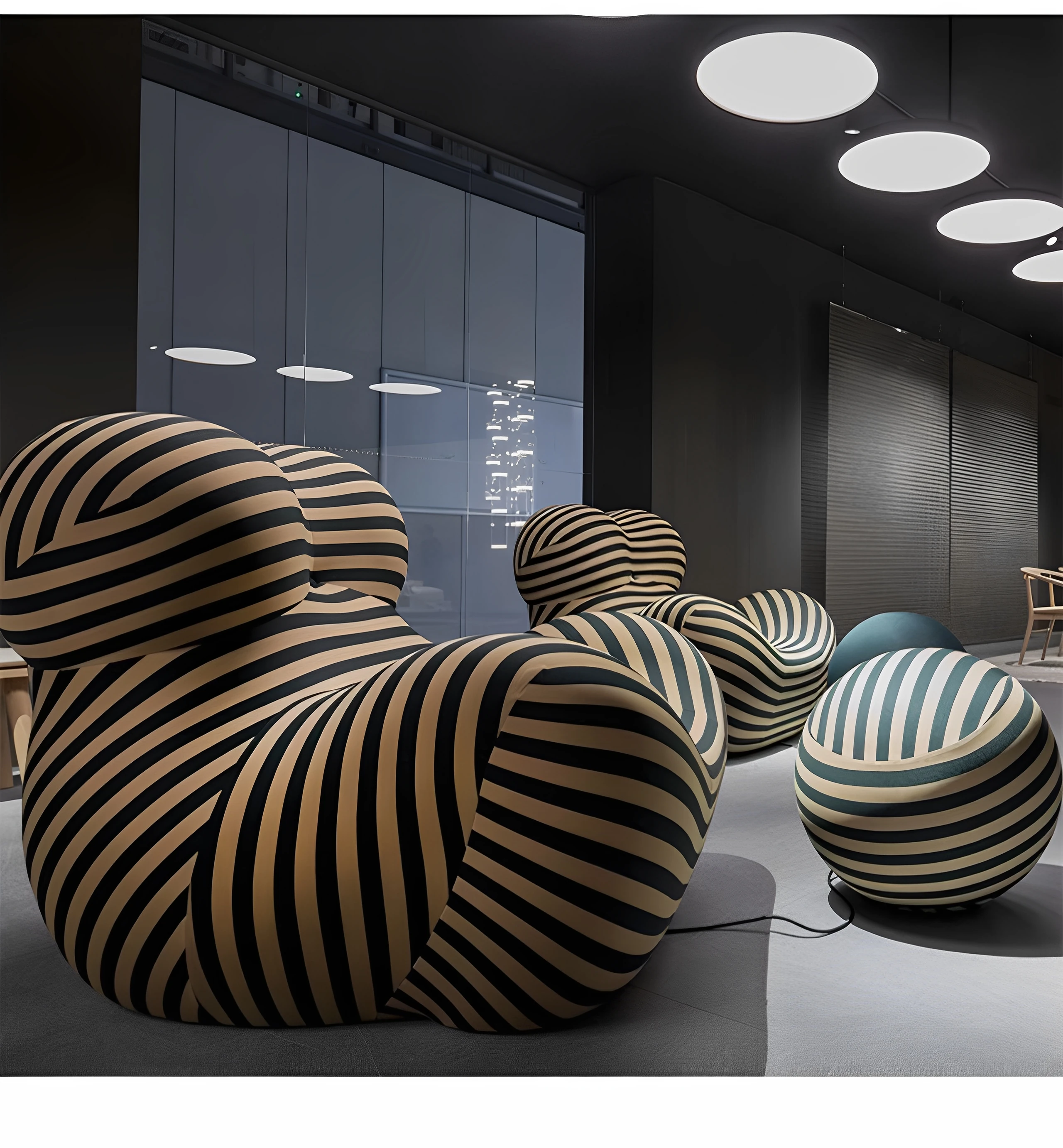 シプリア粉扑チェア|イタリアンミニマリズムの布製一人掛けソファ|トレンド感満載のクリエイティブなデザイン|高級リビングにぴったりなリラックスチェア