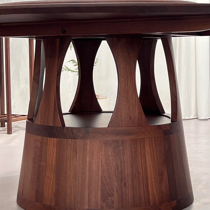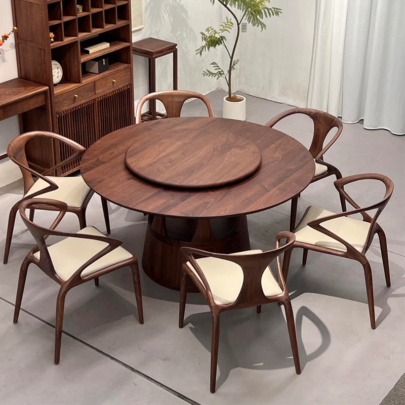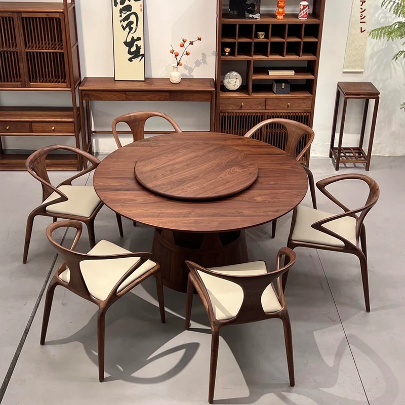新中式2025新作!現代的シンプルさと軽やかなラグジュアリー感を兼ね備えた、ウォールナット製の高級ダイニングテーブル。家族や友人との特別なひとときを演出します。