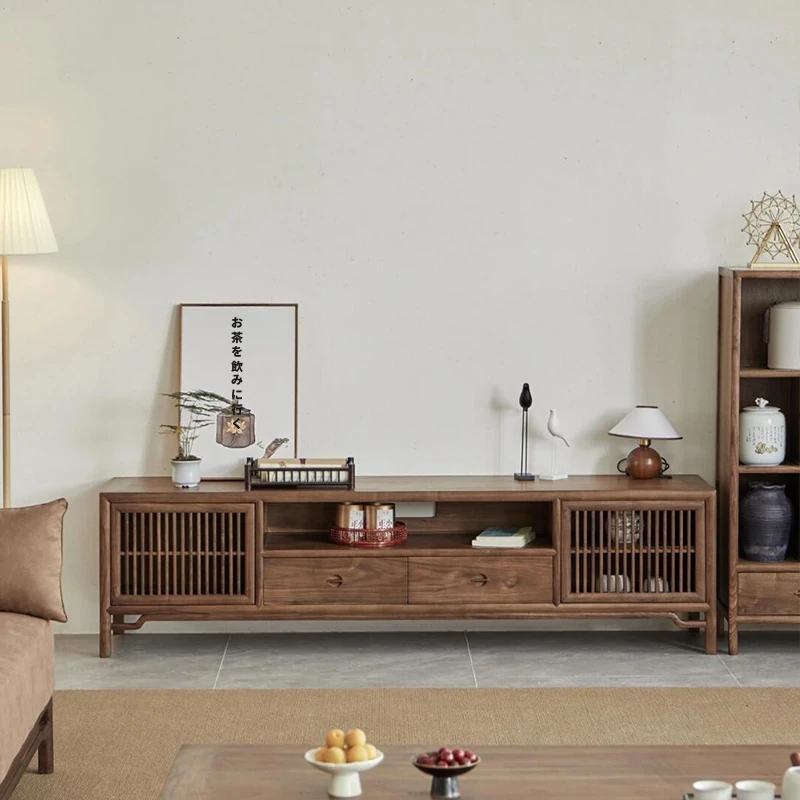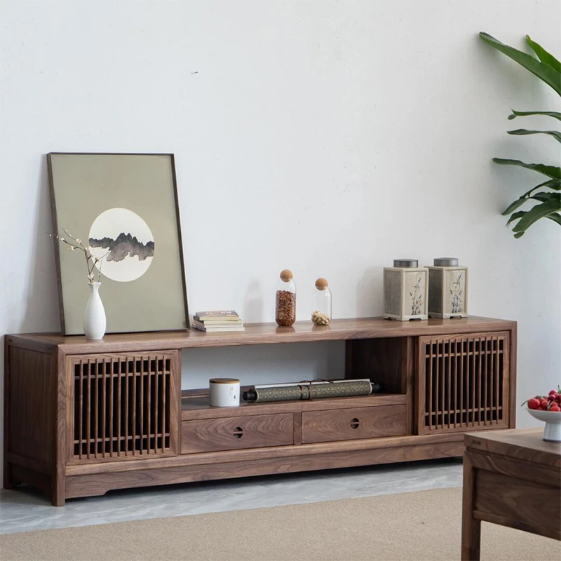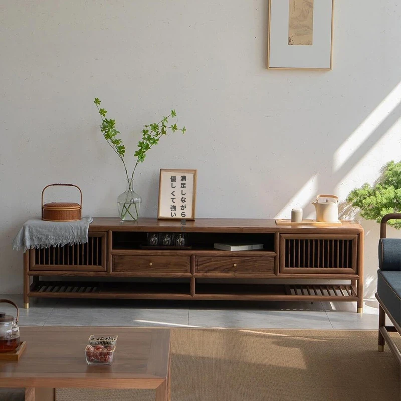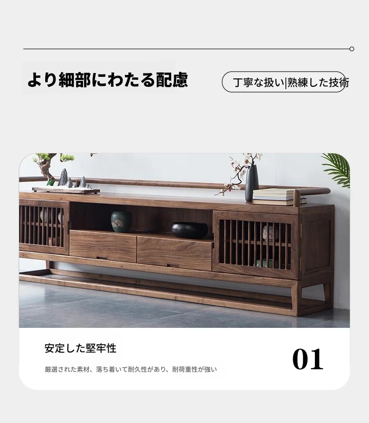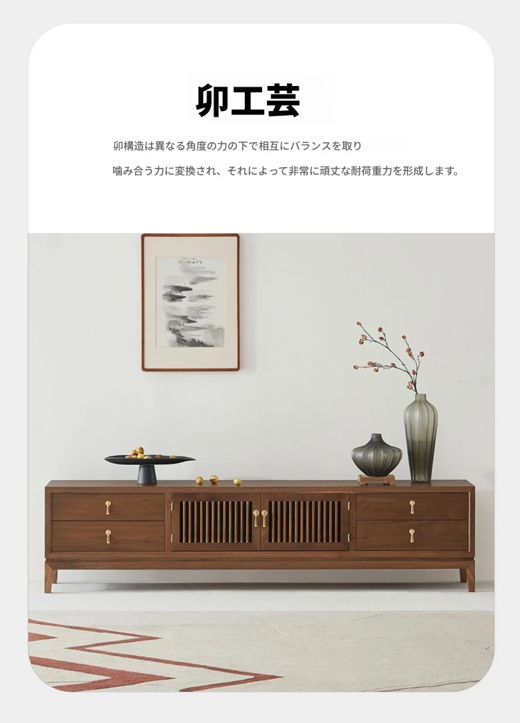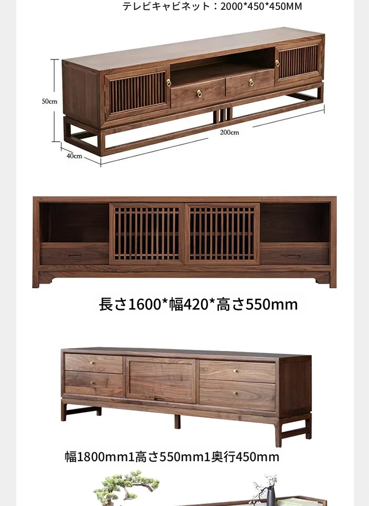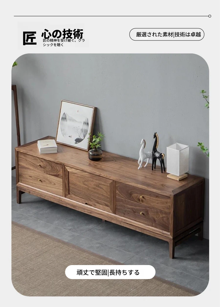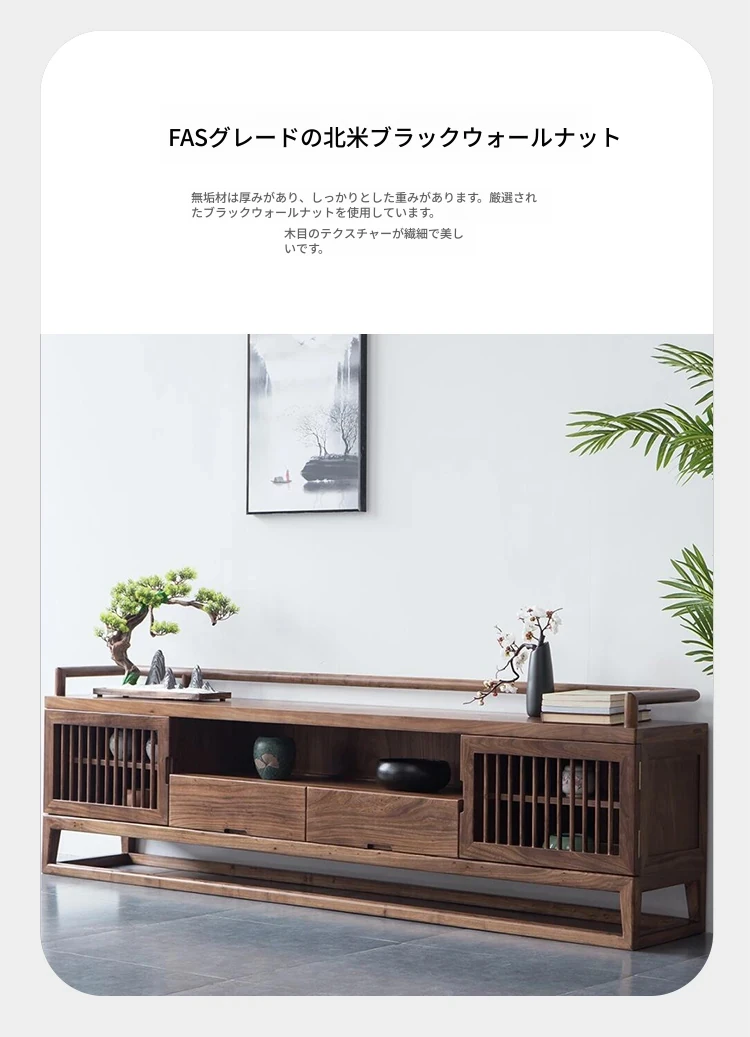 新中式2025年最新作!胡桃木製・シンプルモダンなテレビキャビネット。スタイリッシュなフロアキャビネットで、ミニマルな収納力と軽やかなラグジュアリー感を実現。お部屋を洗練された空間に演出します!