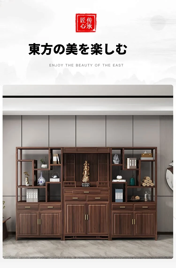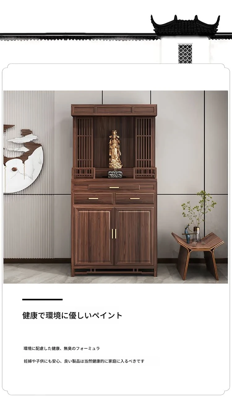 新中式神龛・仏壇・供え台|おしゃれで実用的な仏具|家庭用・リビングに最適|観音様・財神様をお祀りするための特別な空間を演出!