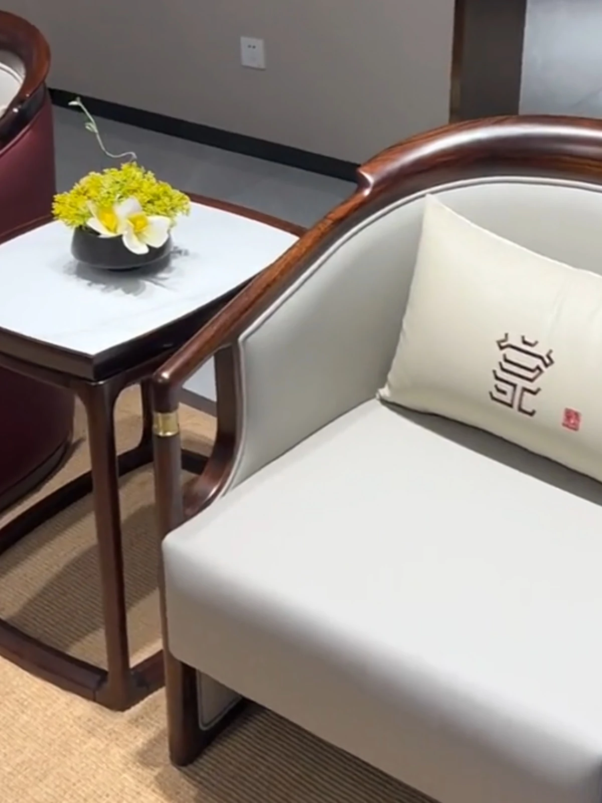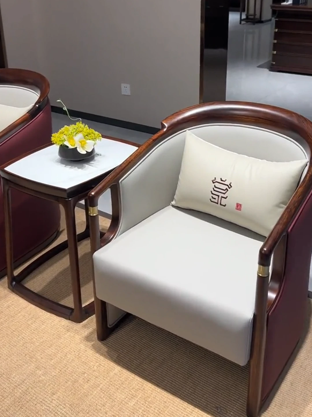 2025年新作!大容量皮革ソファー - 高級感溢れる新中式デザイン、ウォールナット材使用で、リビングや接待スペースに最適!快適なひとときをお届けします。
