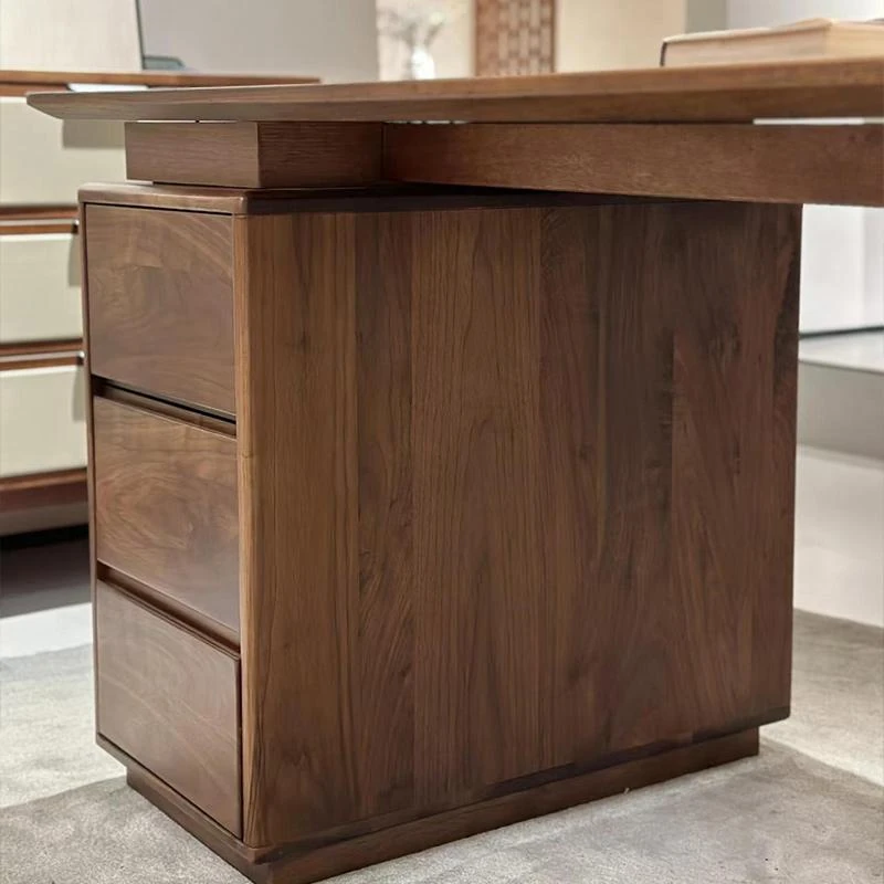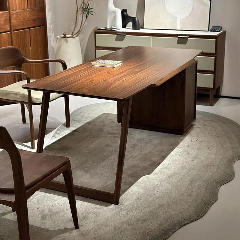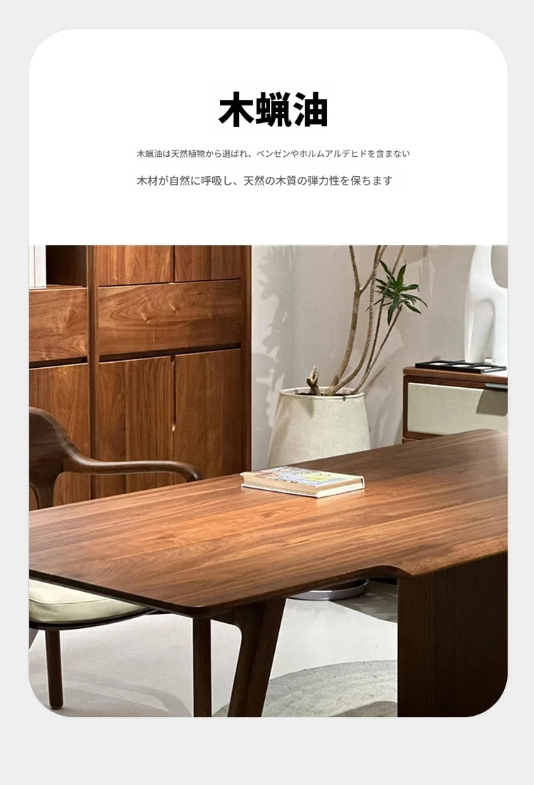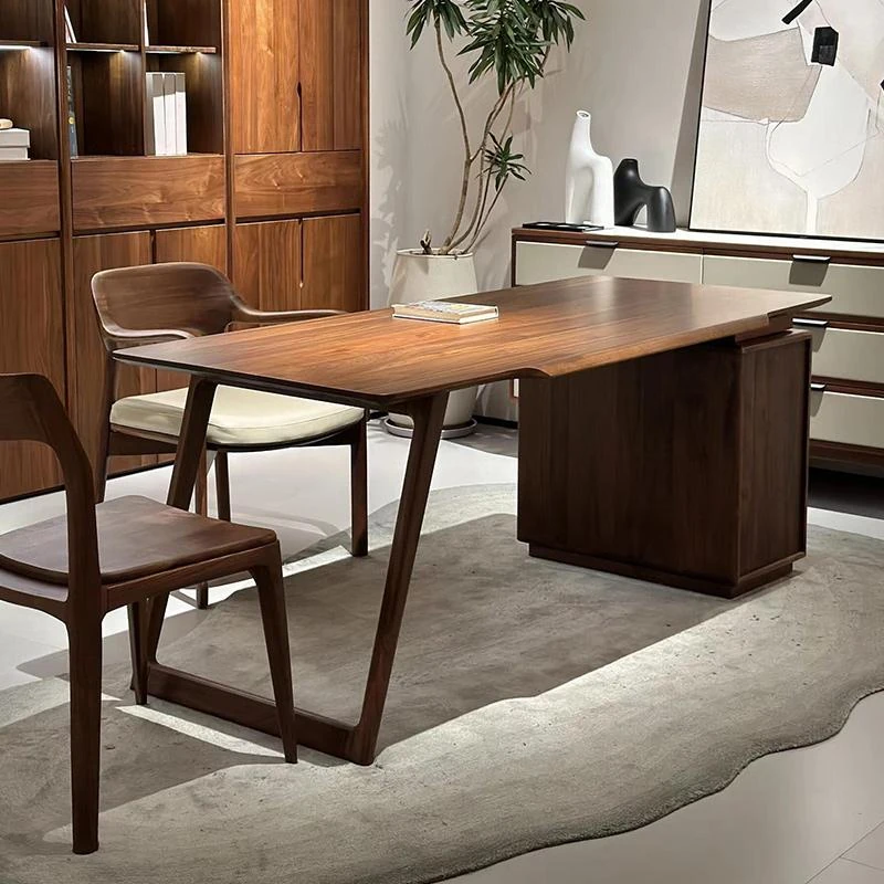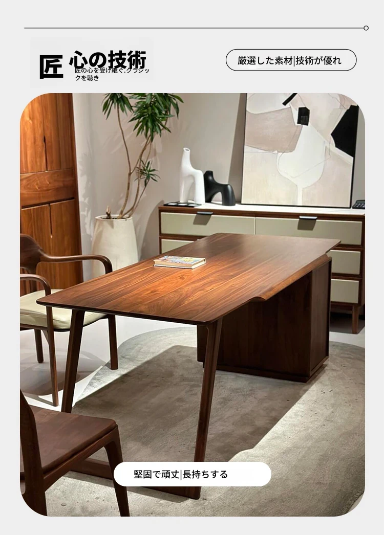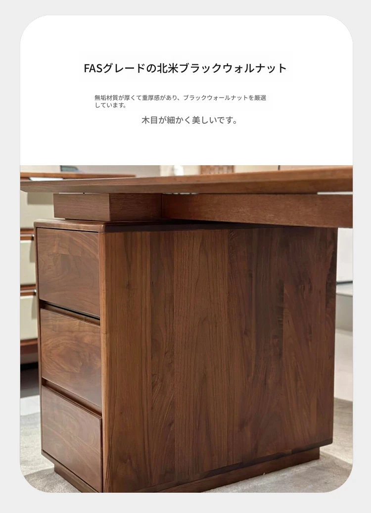 2025年新款!新中式实木書桌 - モダンでシンプルなデザイン、ウォールナットの高級感あふれるオフィス用パソコンデスク。リビングにも最適!洗練された空間を演出します。