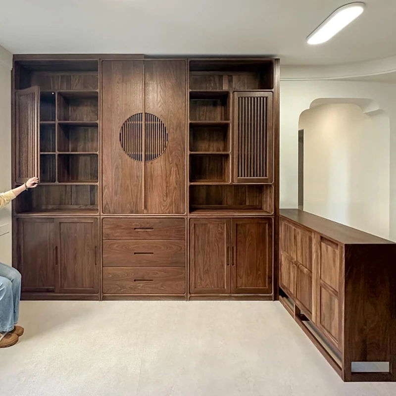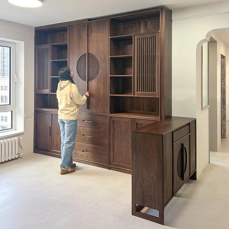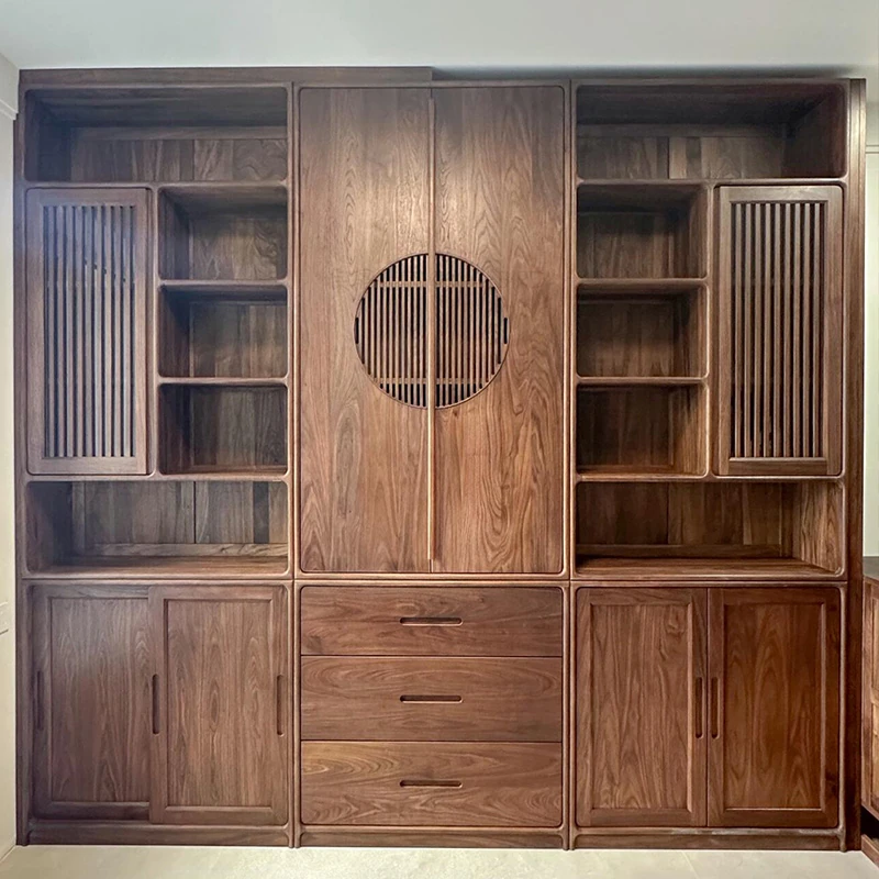 新中式博古架 - 高級感溢れる実木製多宝阁!リビングや茶室にぴったりの収納棚。オフィスの整理整頓にも最適なディスプレイキャビネット。美しさと機能性を兼ね備えた収納ソリューション!