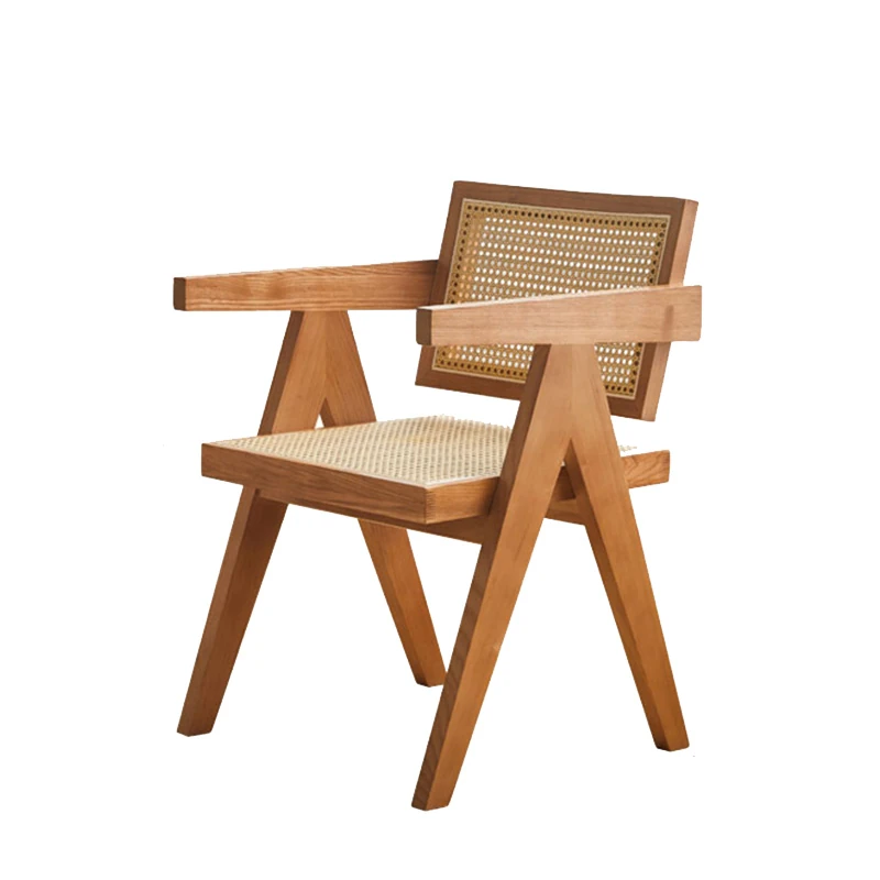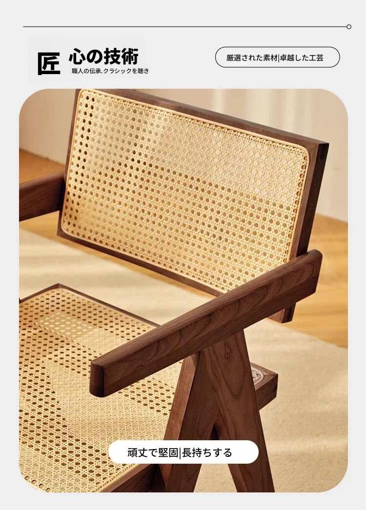 新中式デザインの無垢材とラタン編みのアームチェア - 家庭用、リビングルームやホテルのロビーに最適な接客用チェア。おしゃれで快適、主役の座り心地を提供します!