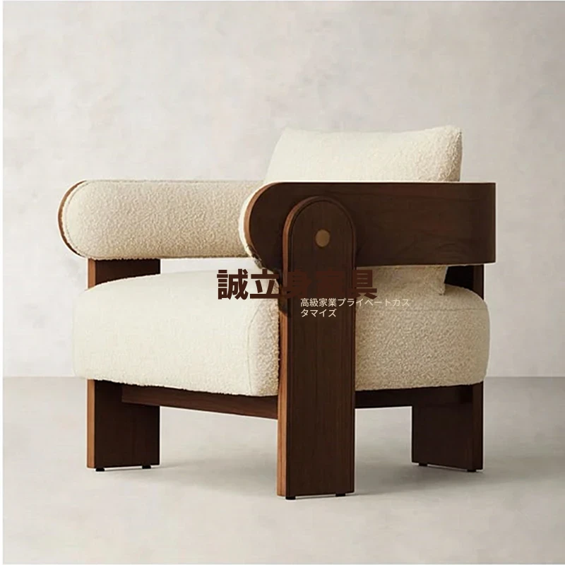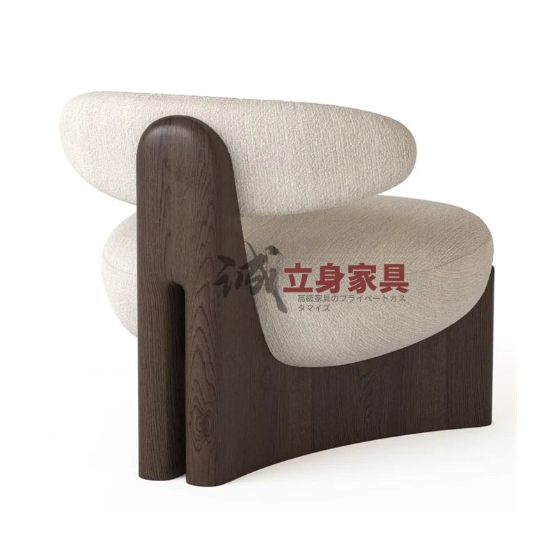 新作・モダンな和の侘寂スタイルの実木布製シングルチェア|デザイナーのモデルルームや展示会、ホテルに最適な一人掛け椅子。洗練されたデザインで、心地よい空間を演出します!
