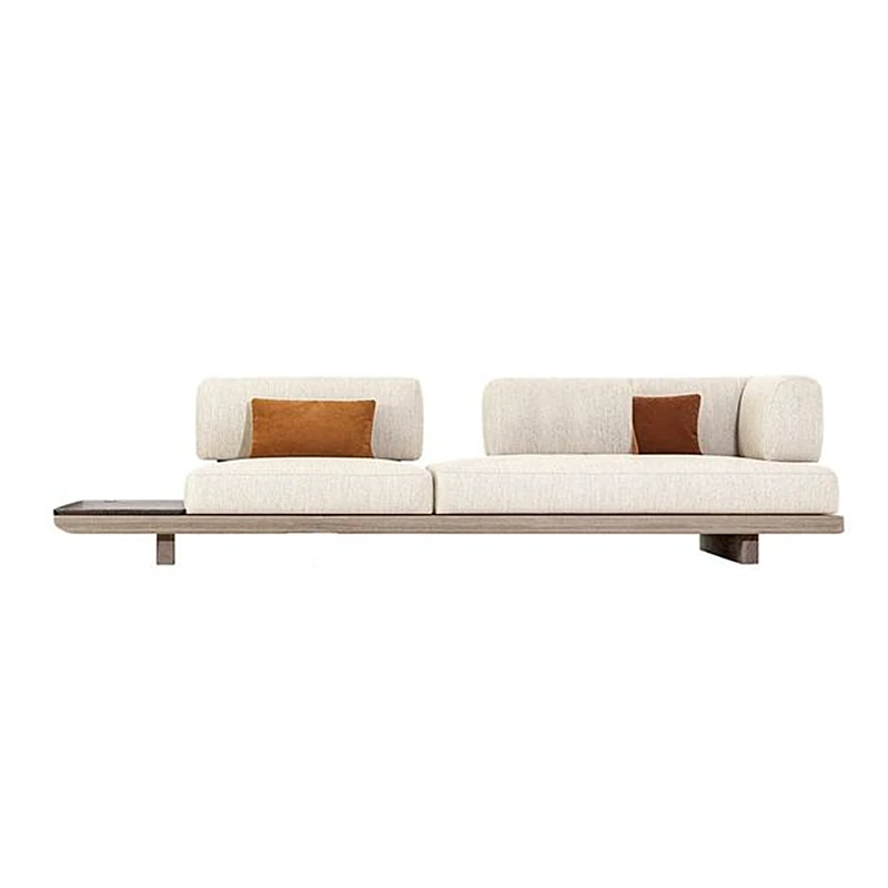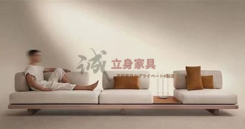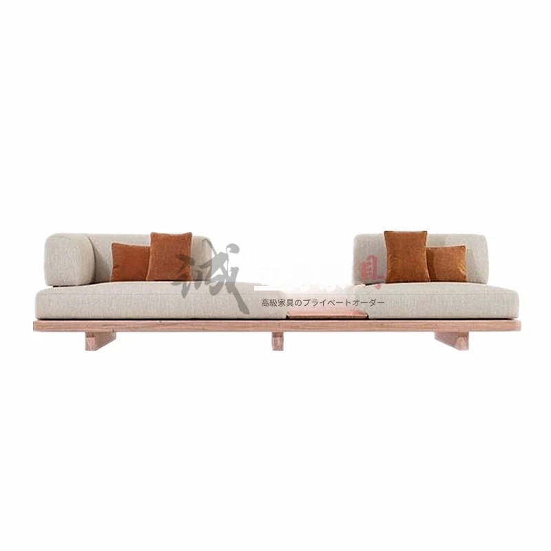 北欧風ミニマリストデザインの無垢材ソファ - おしゃれなカフェやモデルルームに最適!快適な座り心地と洗練されたスタイルで、あなたの空間を格上げします。