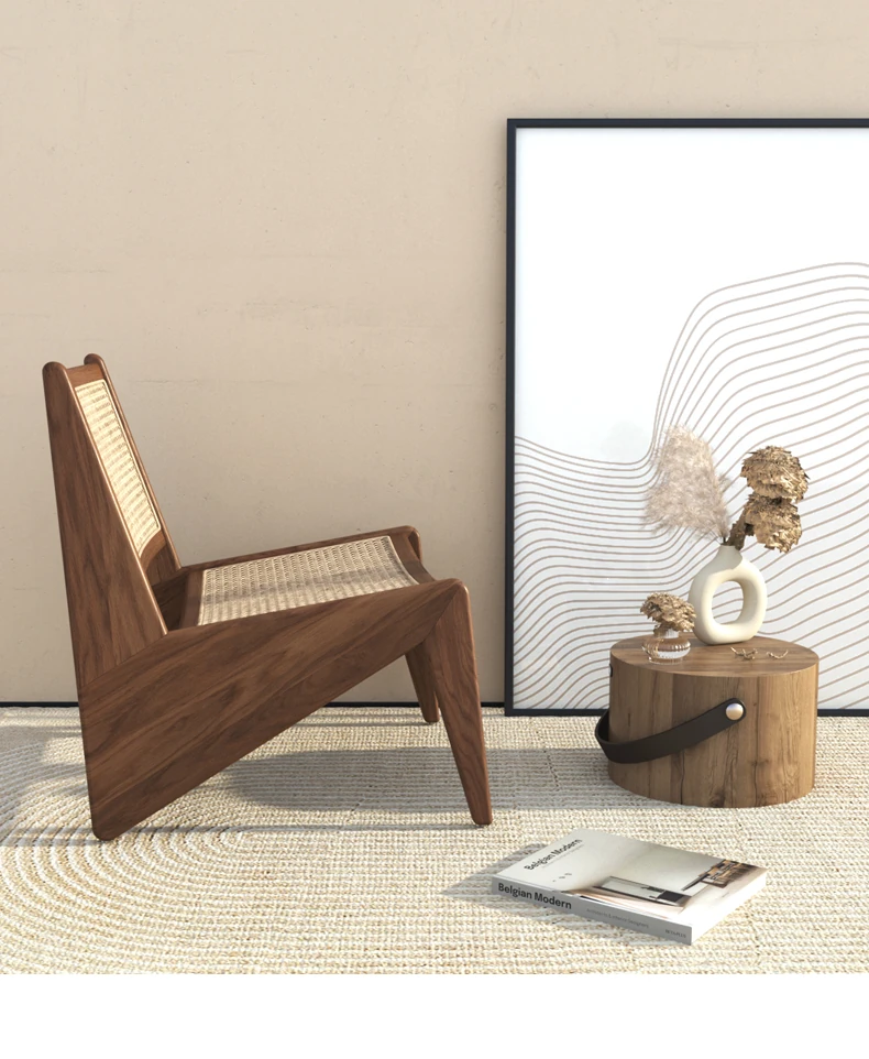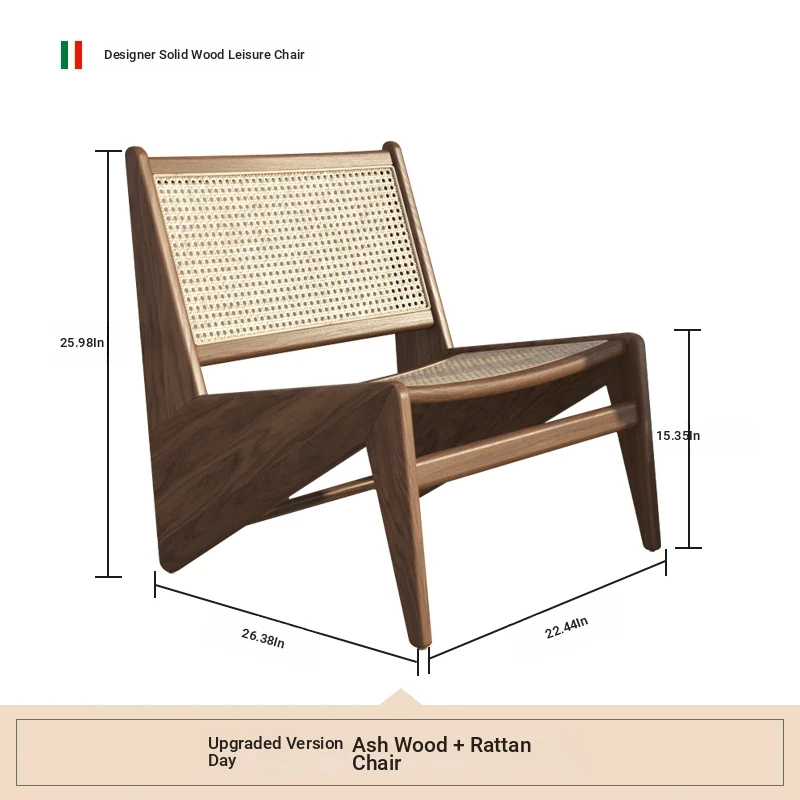 Nordic Single Sofa - Solid Wood & Rattan Lounge Chair for Balcony, Small Apartments & Bedrooms, Embracing Wabi-Sabi Style for Cozy Guesthouses and Relaxation