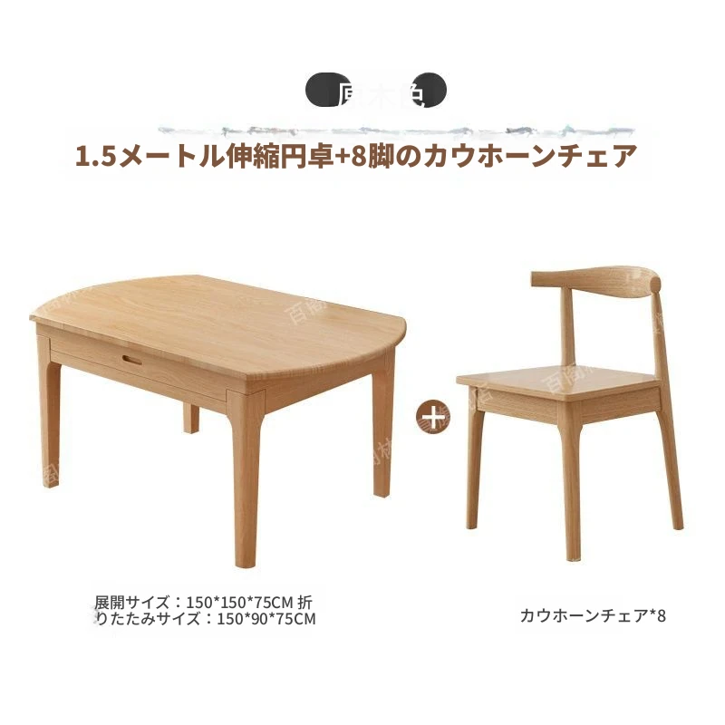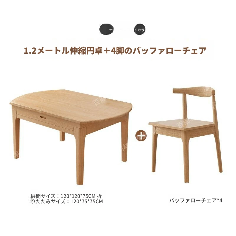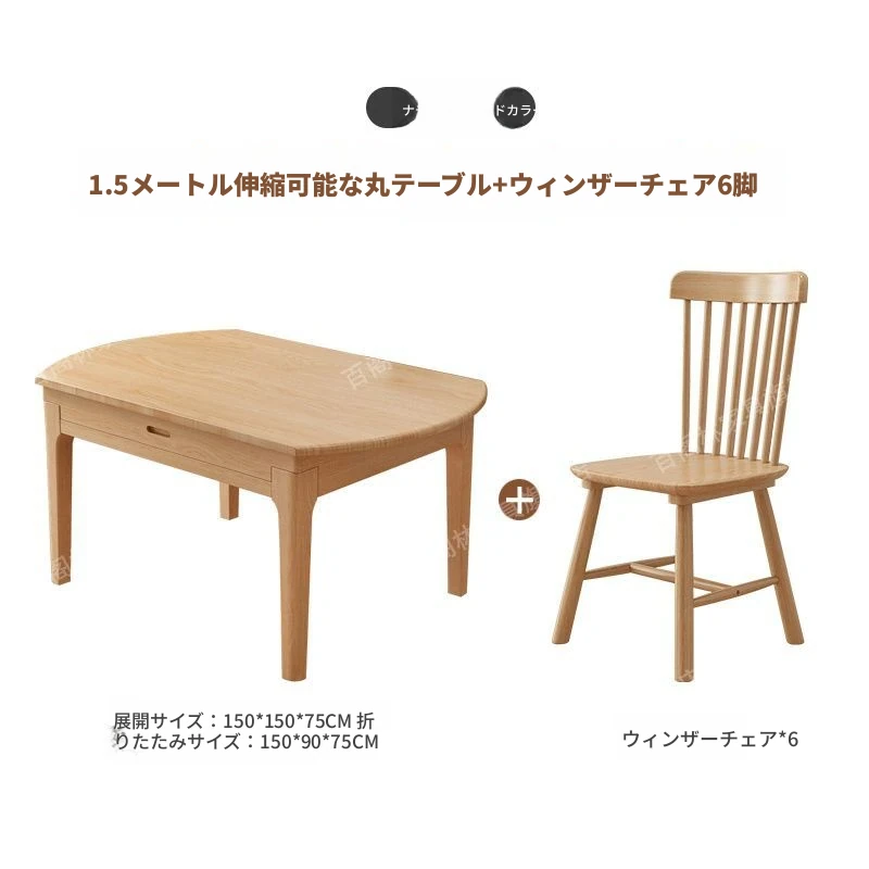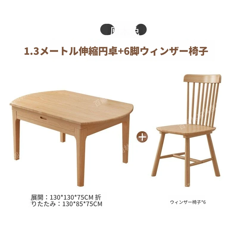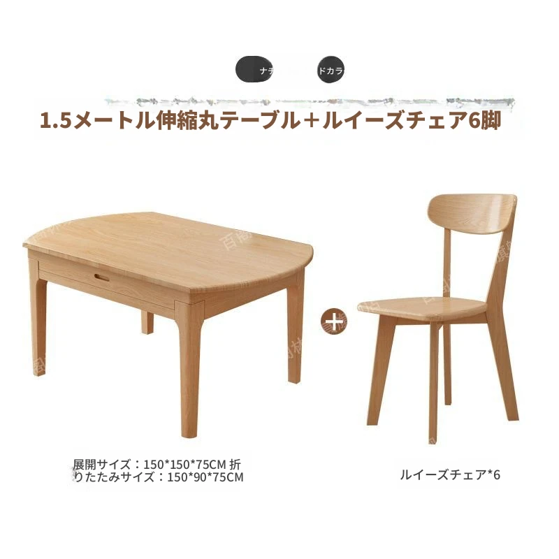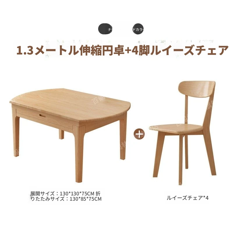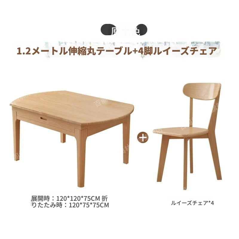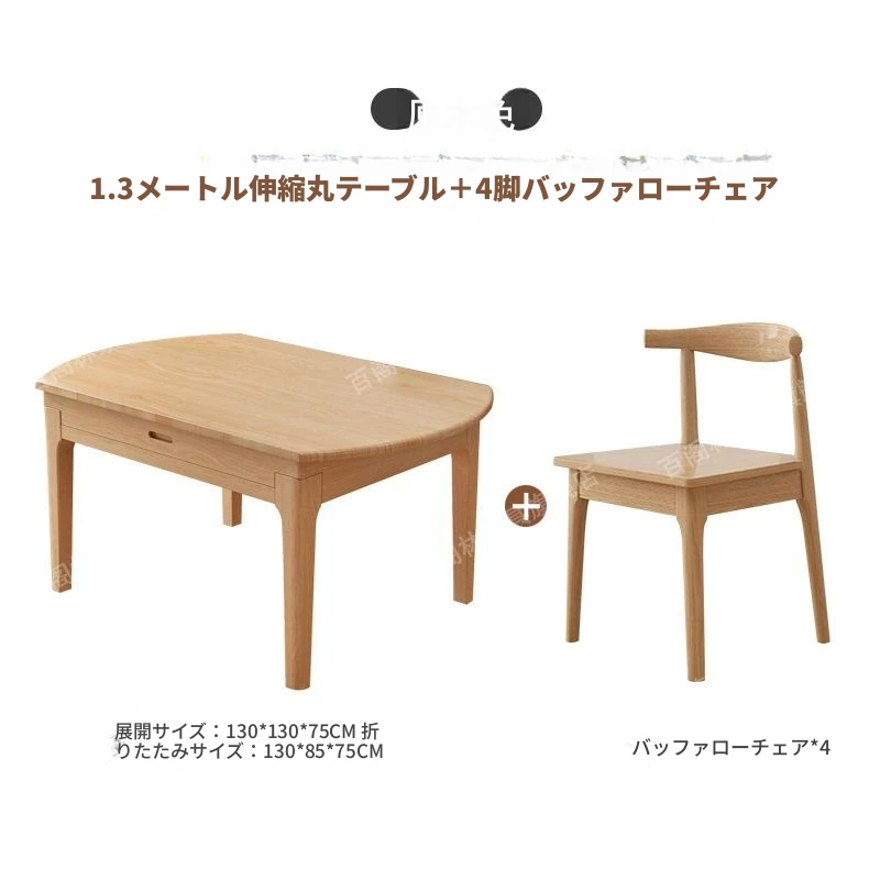北欧スタイルの無垢材ダイニングテーブル&チェアセット - シンプルで伸縮可能な折りたたみ式、コンパクトな家用二用途テーブル(角型・丸型対応)で、狭いスペースでもおしゃれに食事を楽しめます!