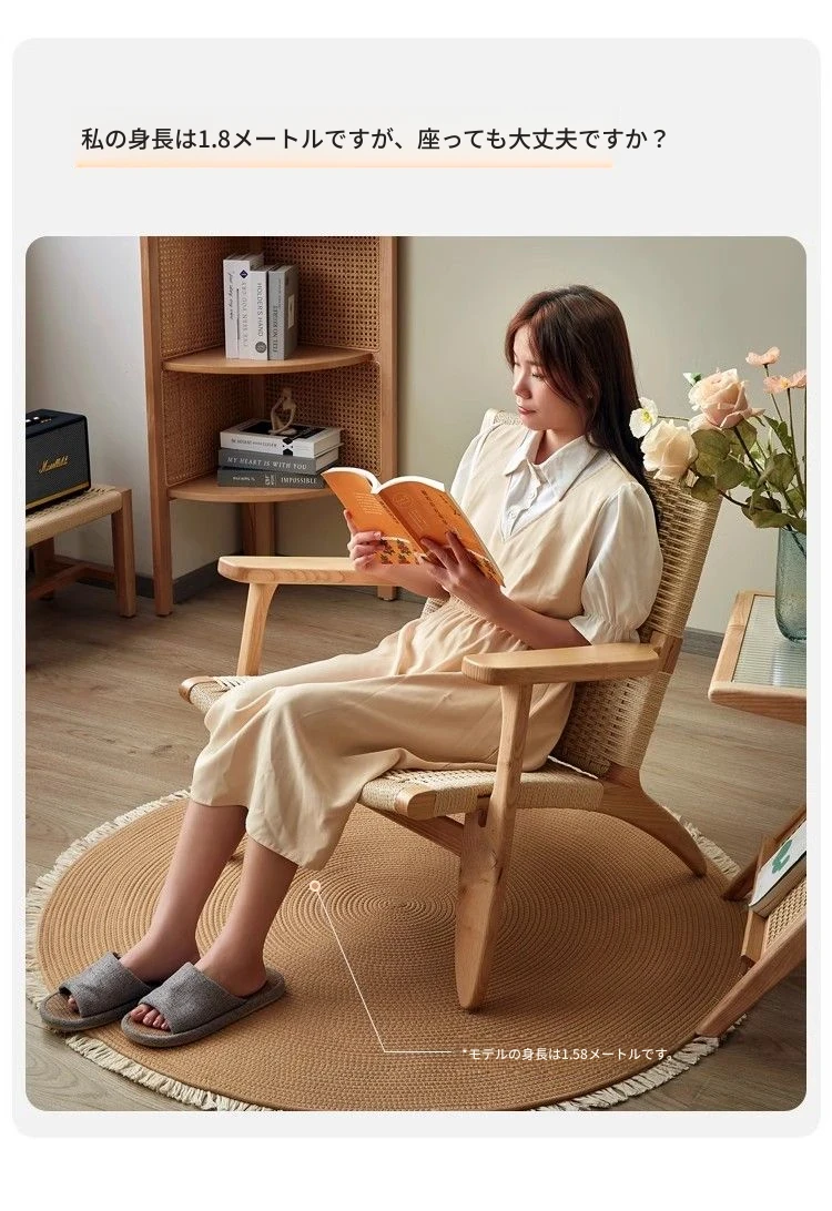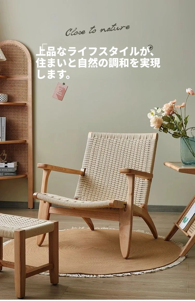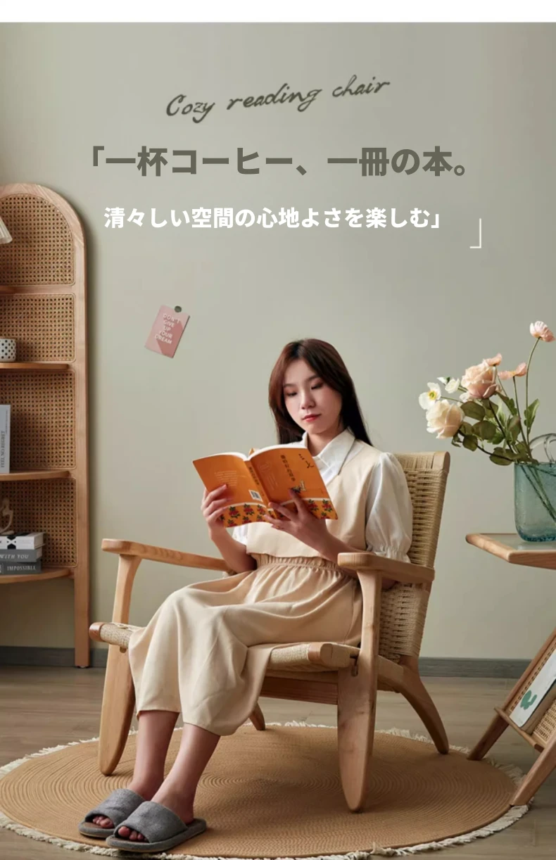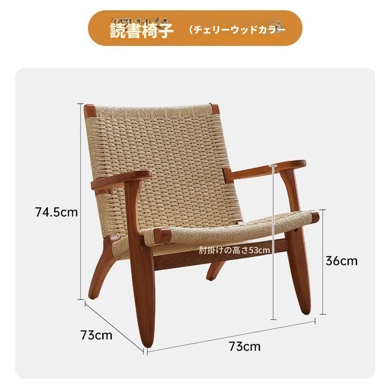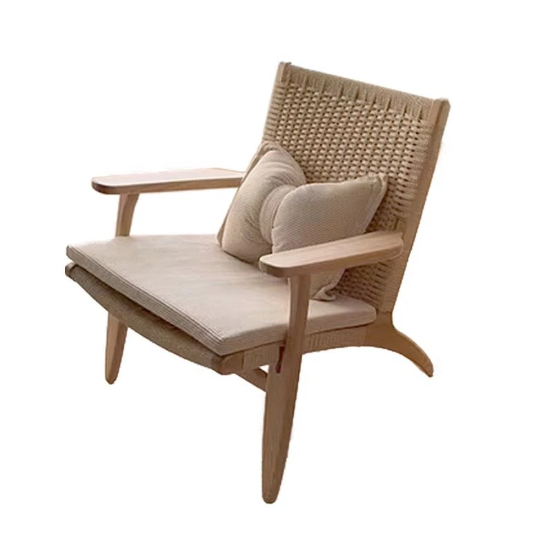 バルコニー用リラックス一人掛けソファチェア - ラウンジに最適な北欧スタイル!実木製のシンプルなデザインで、快適な背もたれとアームレスト付き。宿泊施設やホテルにぴったりな、くつろぎのひとときを提供します!