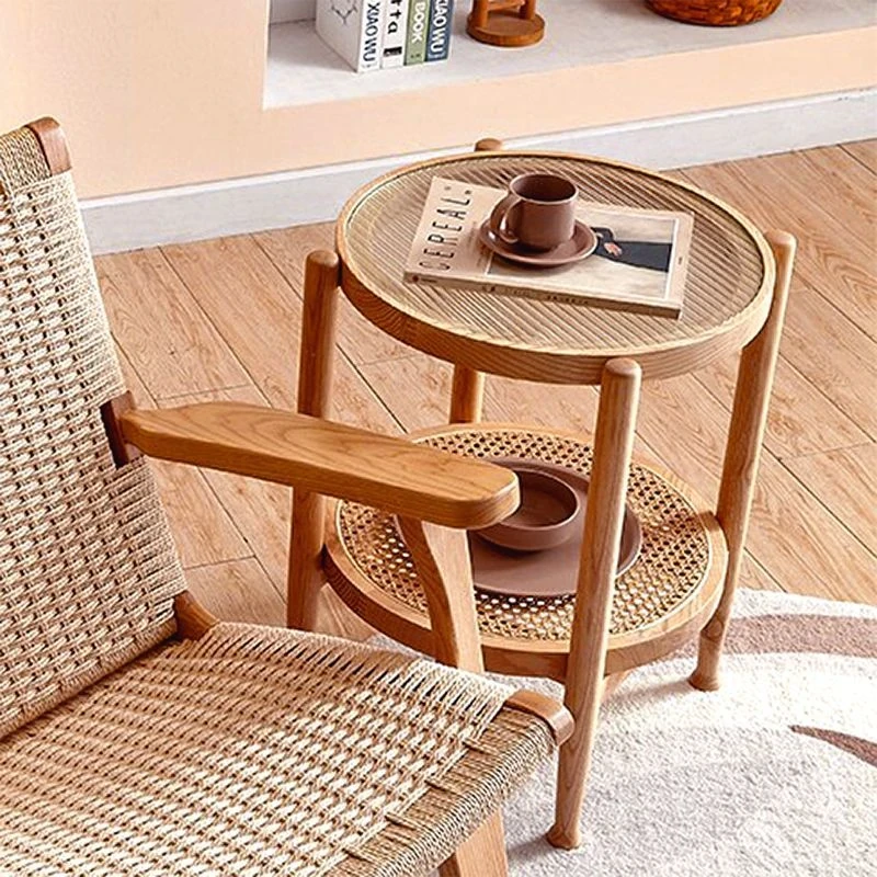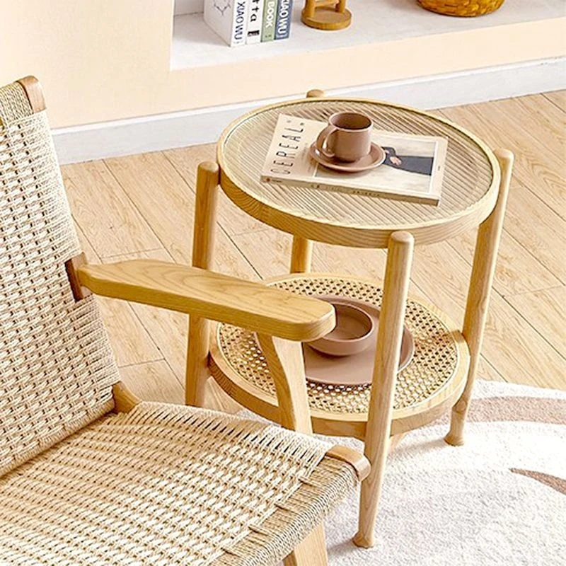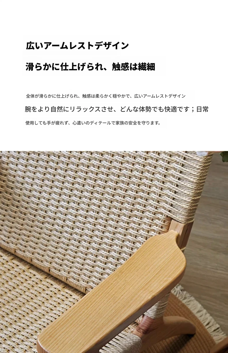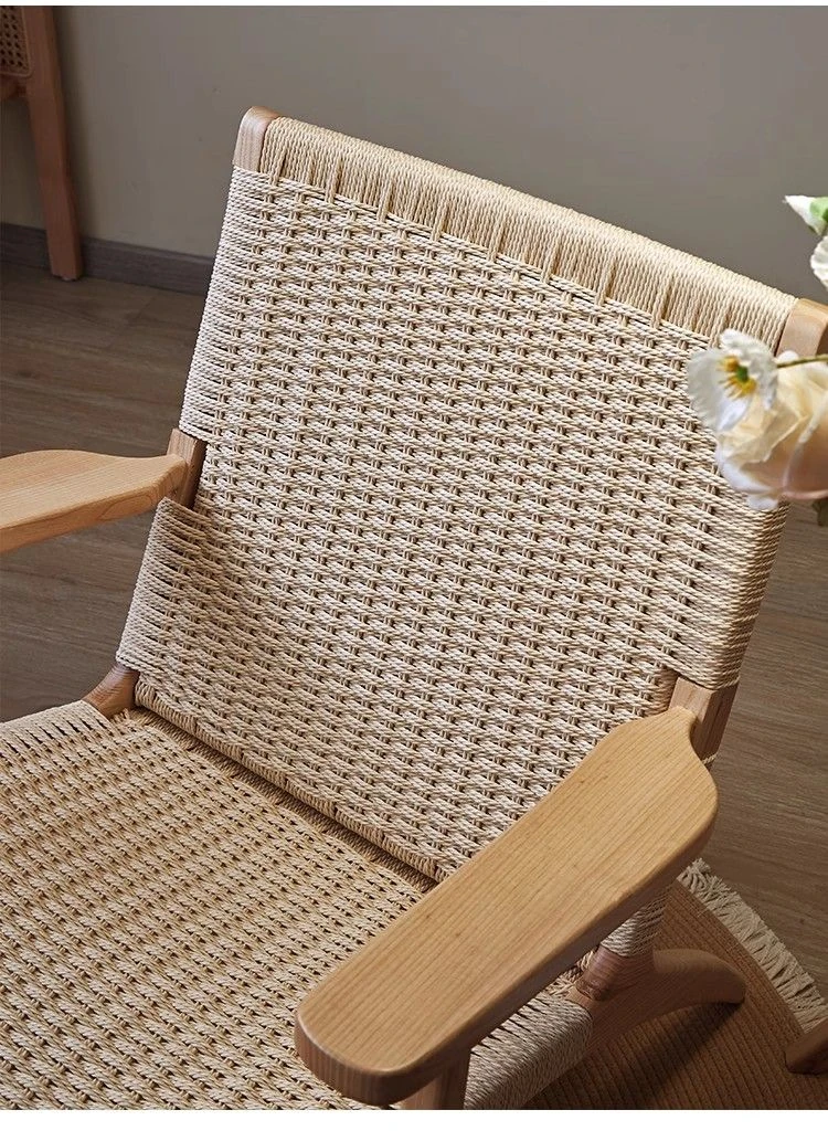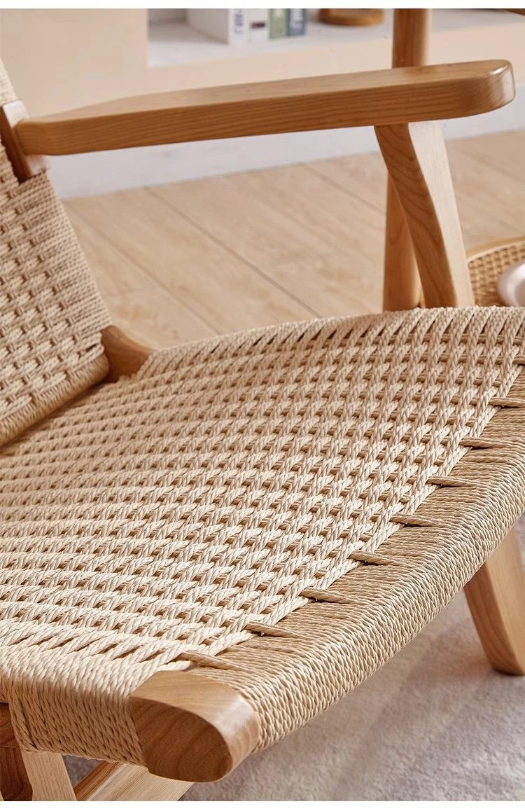 ナチュラルウッド色のラタン編みリクライニングチェア【手作り編み】