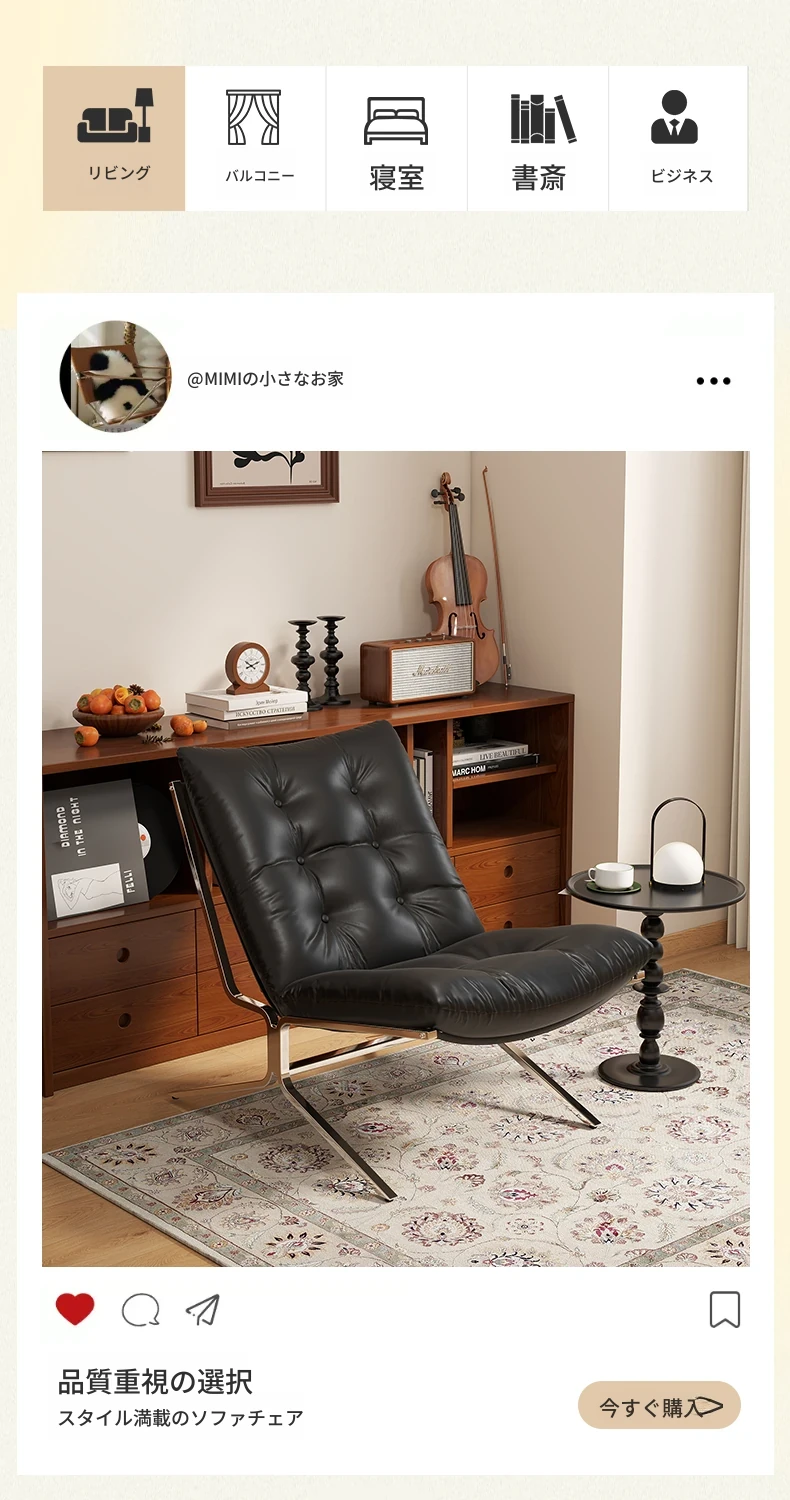オームのリラックスチェア|シンプルで洗練されたバウハウススタイルの一人掛けソファ|バルセロナデザインの背もたれ付きチェアで、あなたの空間を特別に演出します!