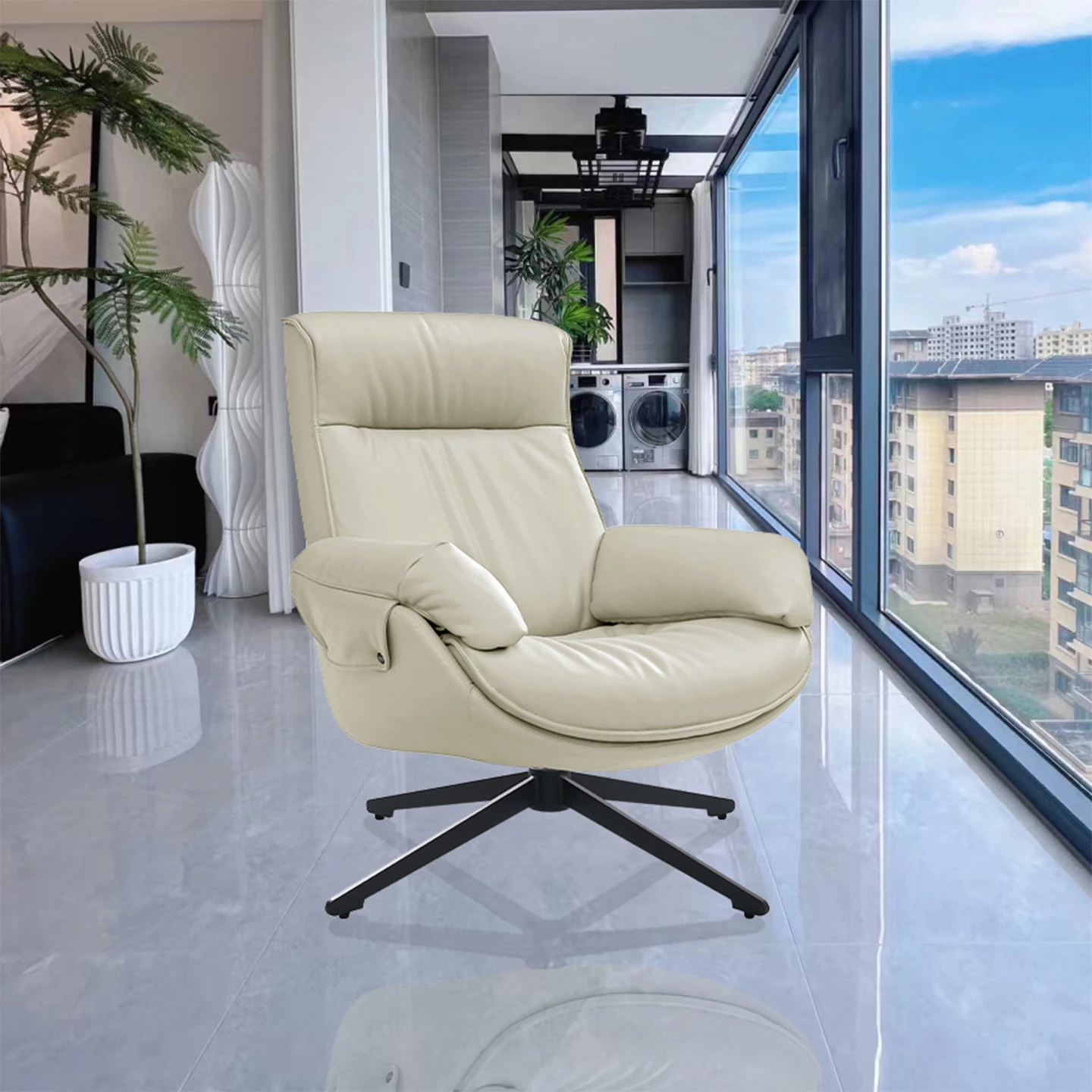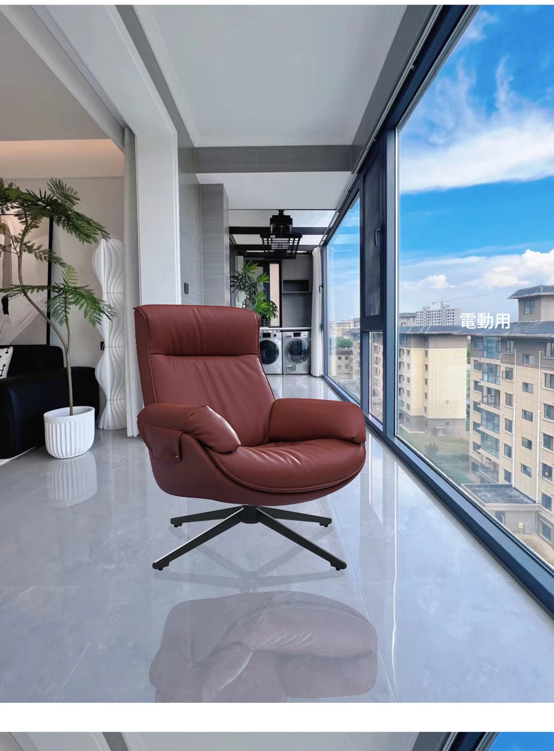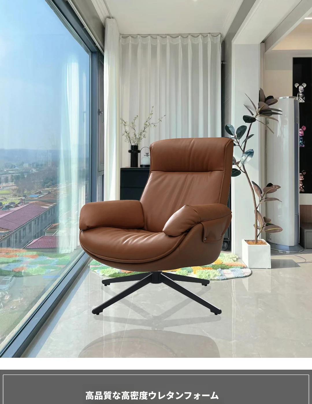 高級本革回転ソファチェア - リビングルームにぴったりな高級一人掛けリクライニングチェア。バルコニーにも最適なラグジュアリーなリラックスソファで、贅沢なひとときをお楽しみください。