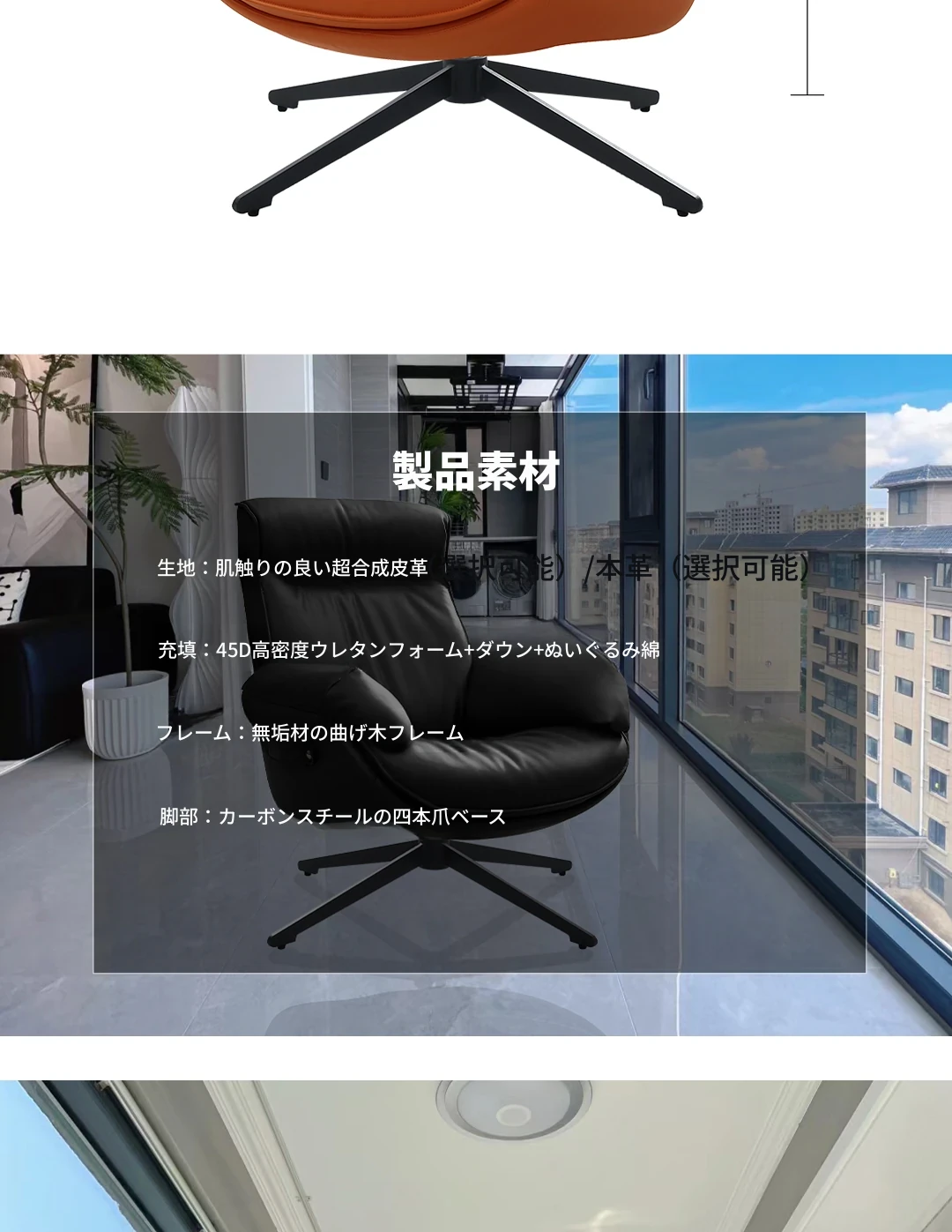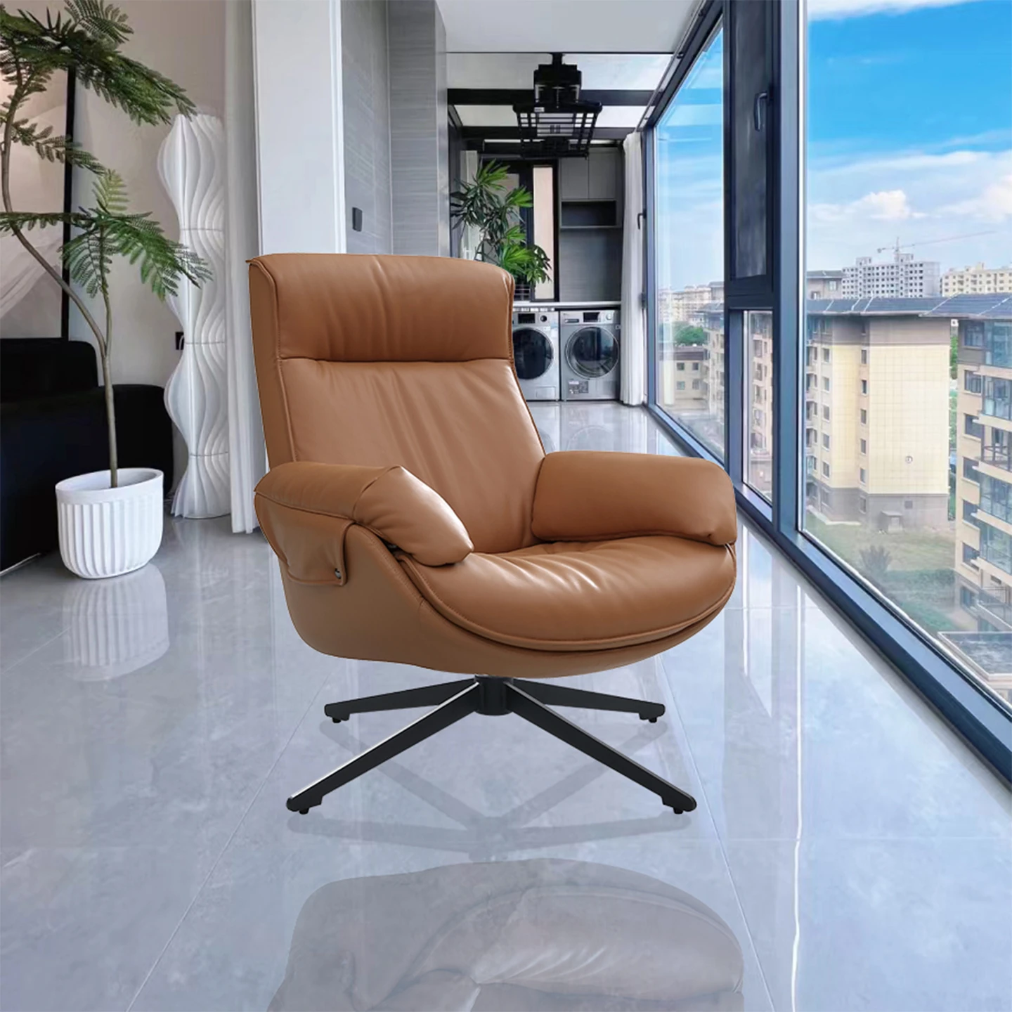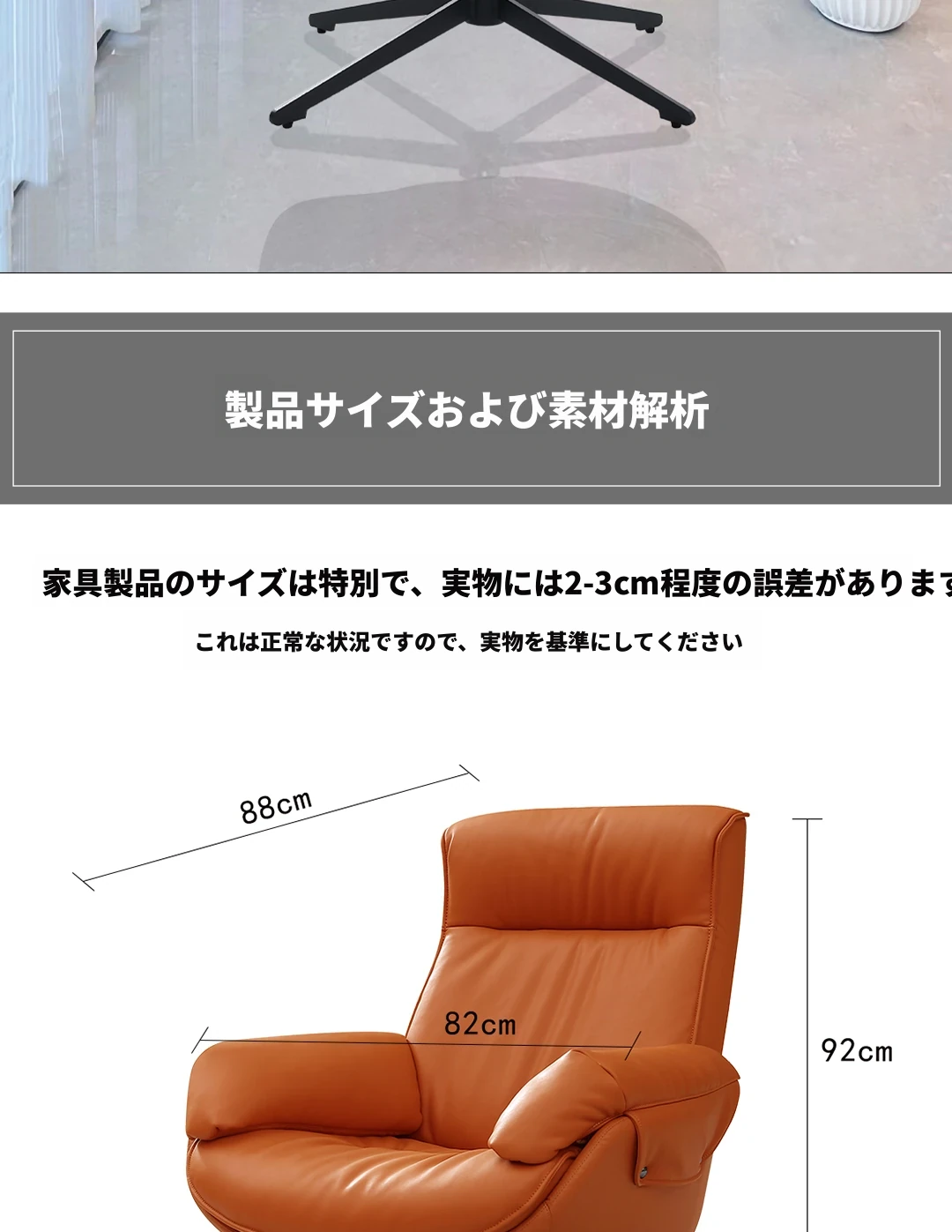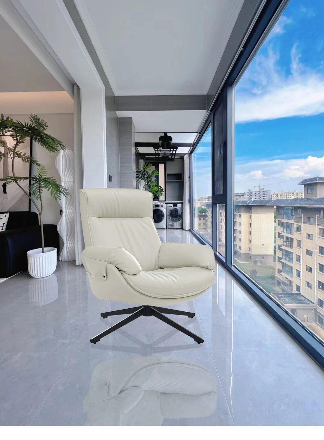 高級本革回転ソファチェア - リビングルームにぴったりな高級一人掛けリクライニングチェア。バルコニーにも最適なラグジュアリーなリラックスソファで、贅沢なひとときをお楽しみください。