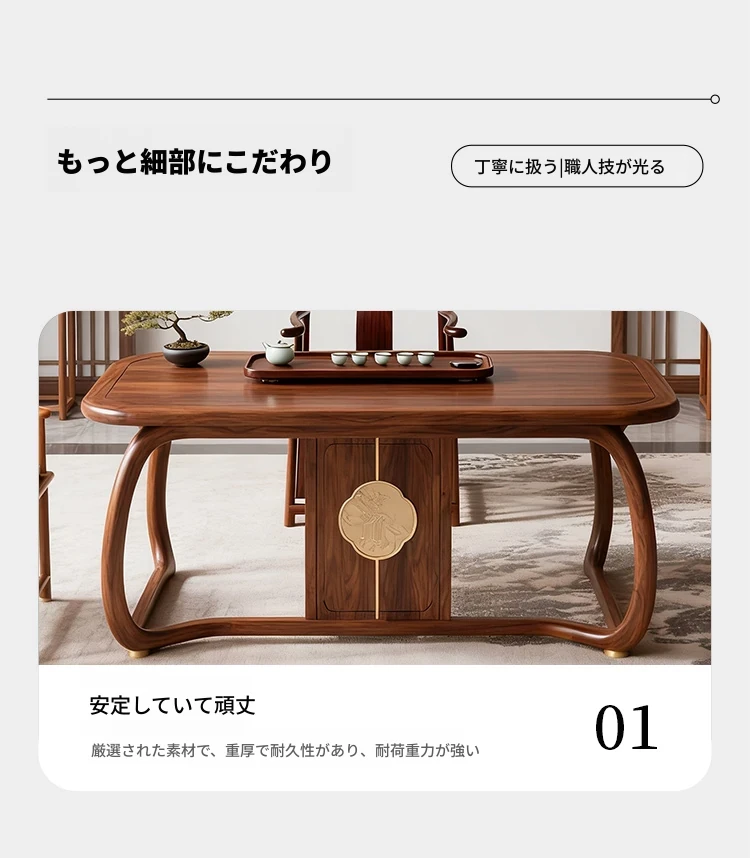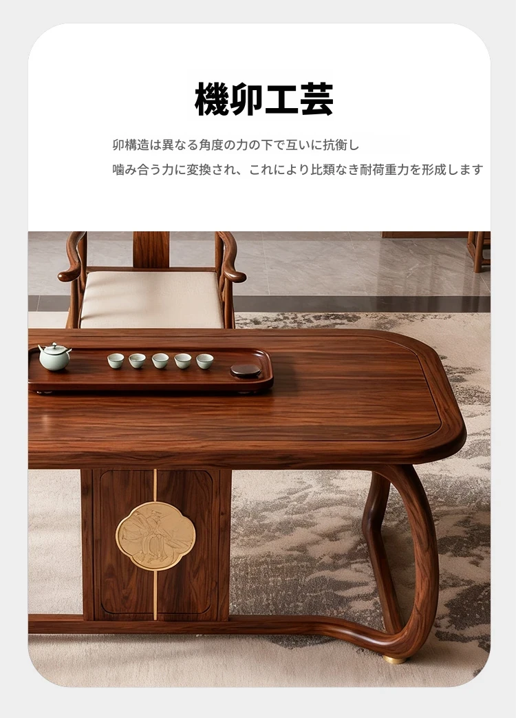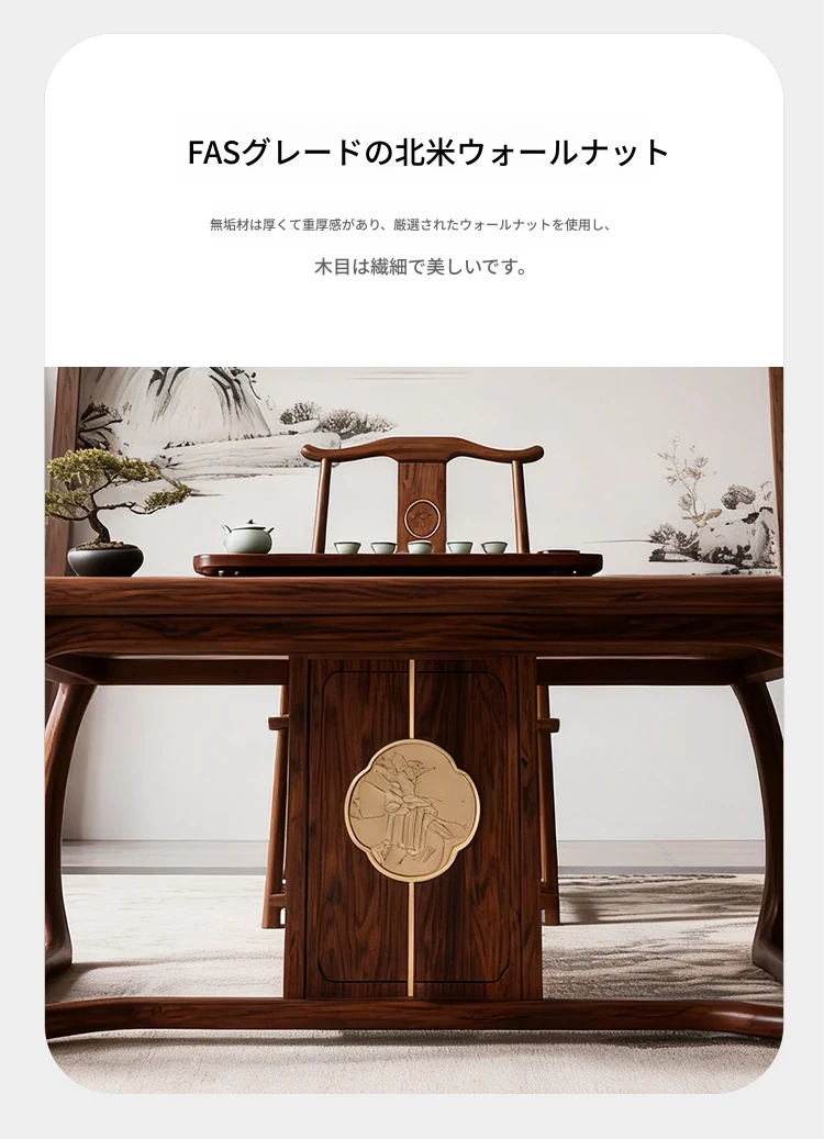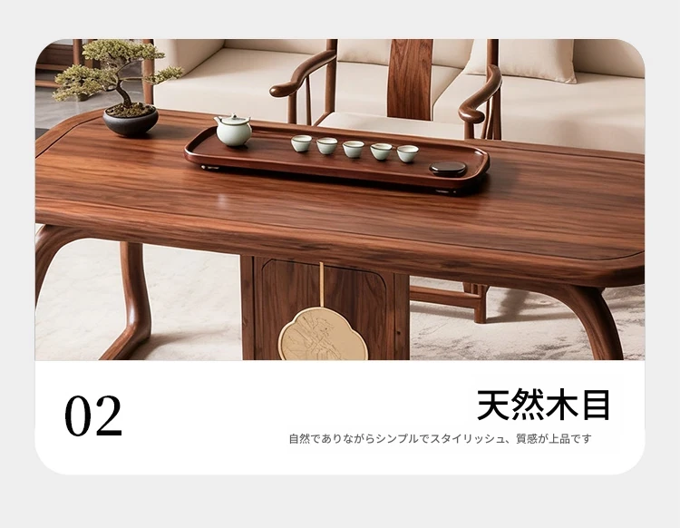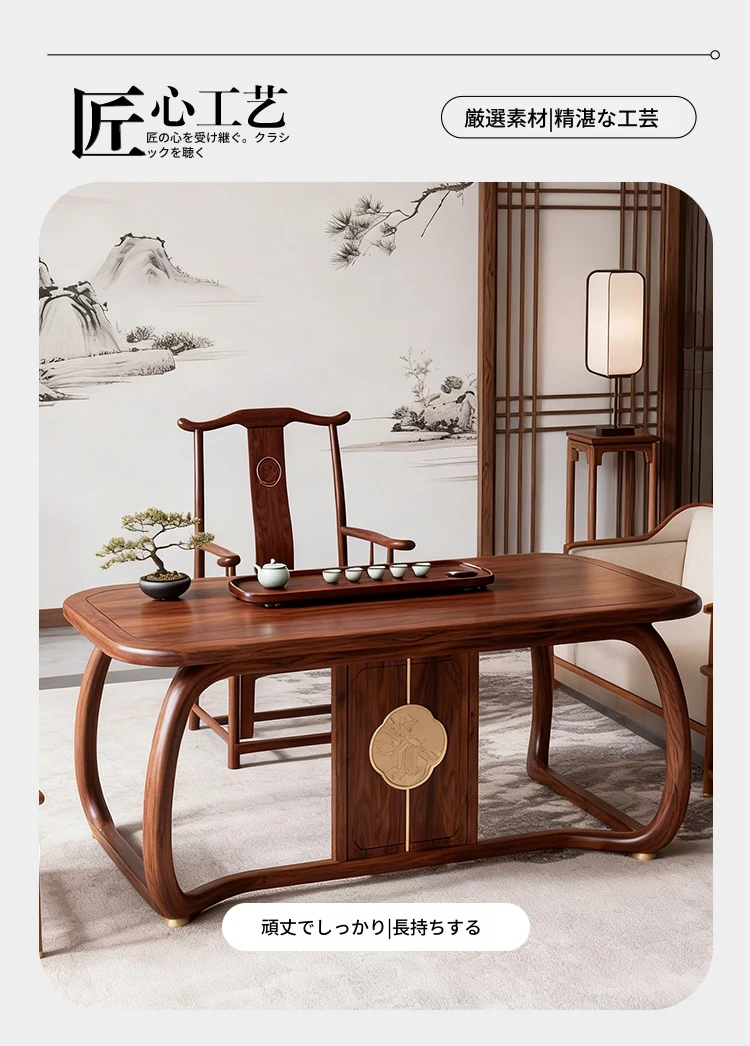 新中式高級天然木製ティーテーブル|モダンシンプルデザインで心を癒す禅の空間|ウォールナット材使用の高品質ティーテーブルを家庭のリビングに最適!