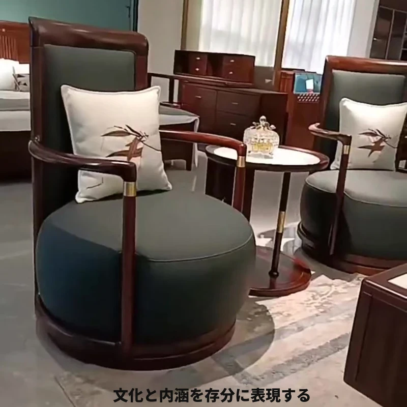 2025年新作!大容量皮革ソファー - 高級感溢れる新中式デザイン、ウォールナット材使用で、リビングや接待スペースに最適!快適なひとときをお届けします。