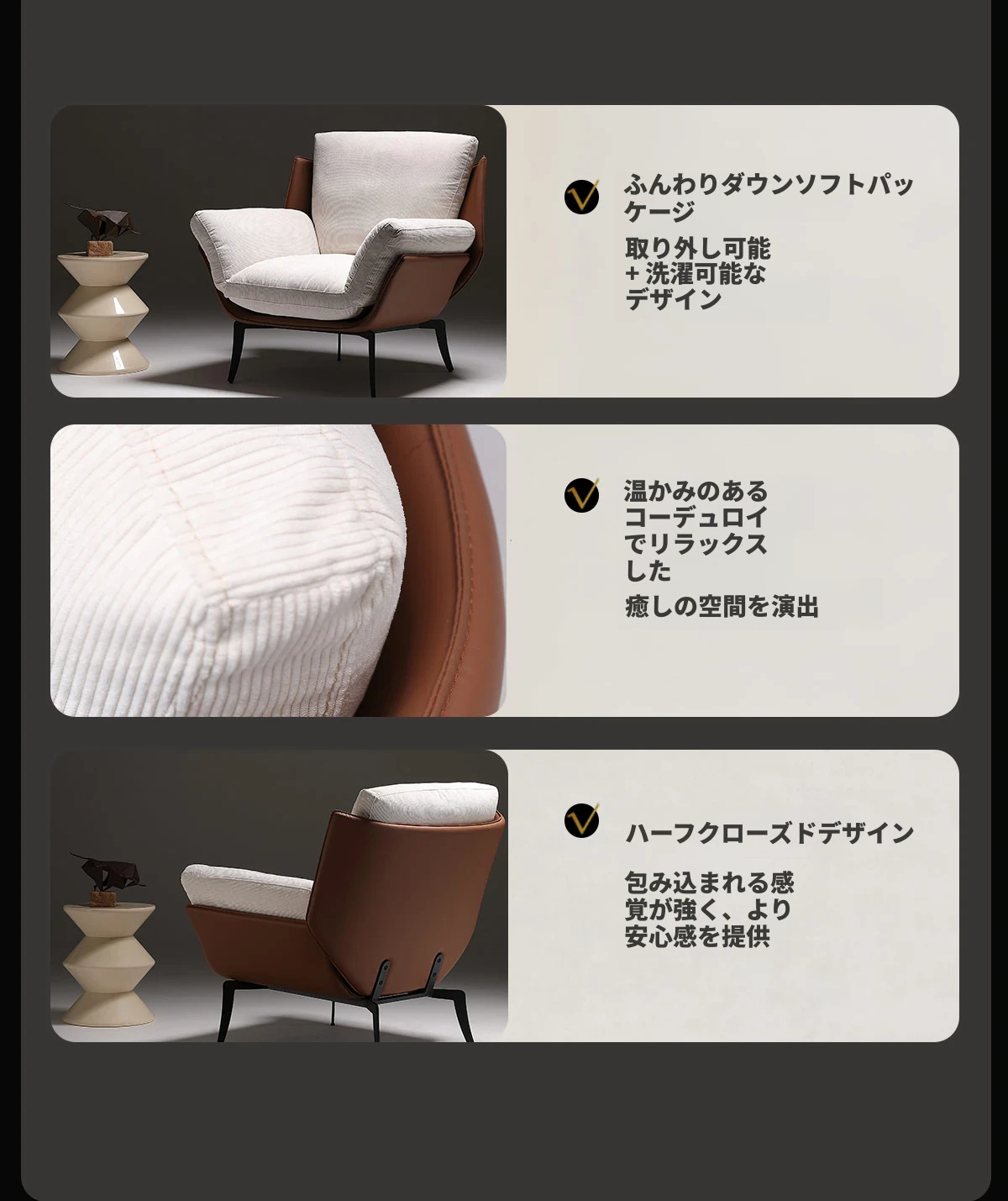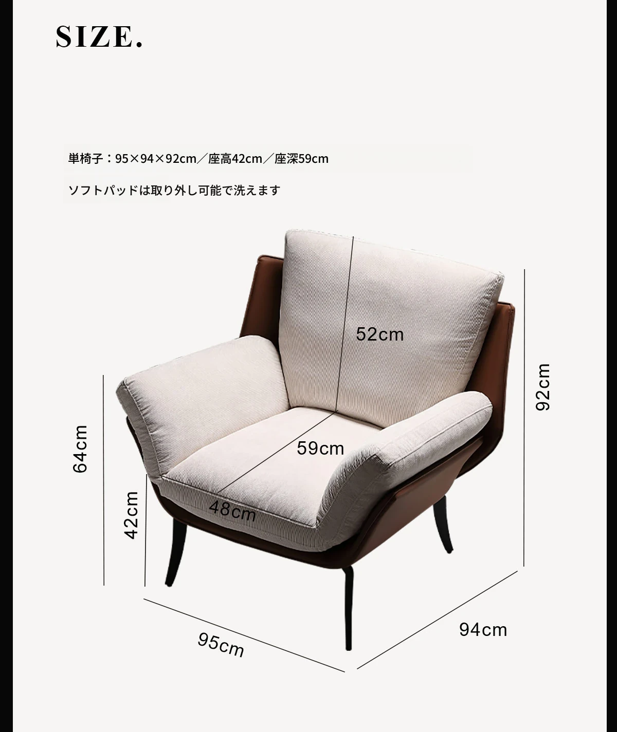 Punta イタリアンシンプルデザインのゆったりとしたリクライニングソファチェア - 洗える布製、リビングやバルコニーに最適な大きめの一人掛け椅子!くつろぎの時間をお楽しみください。