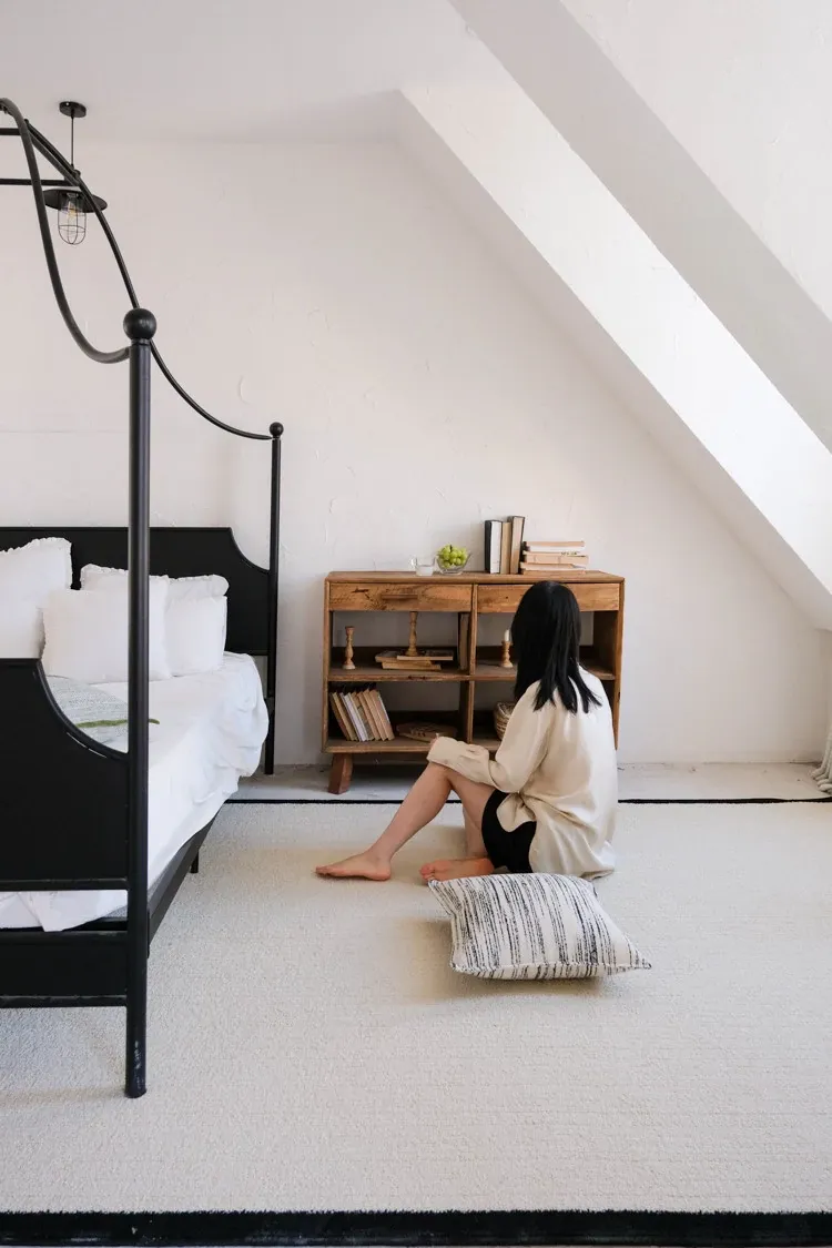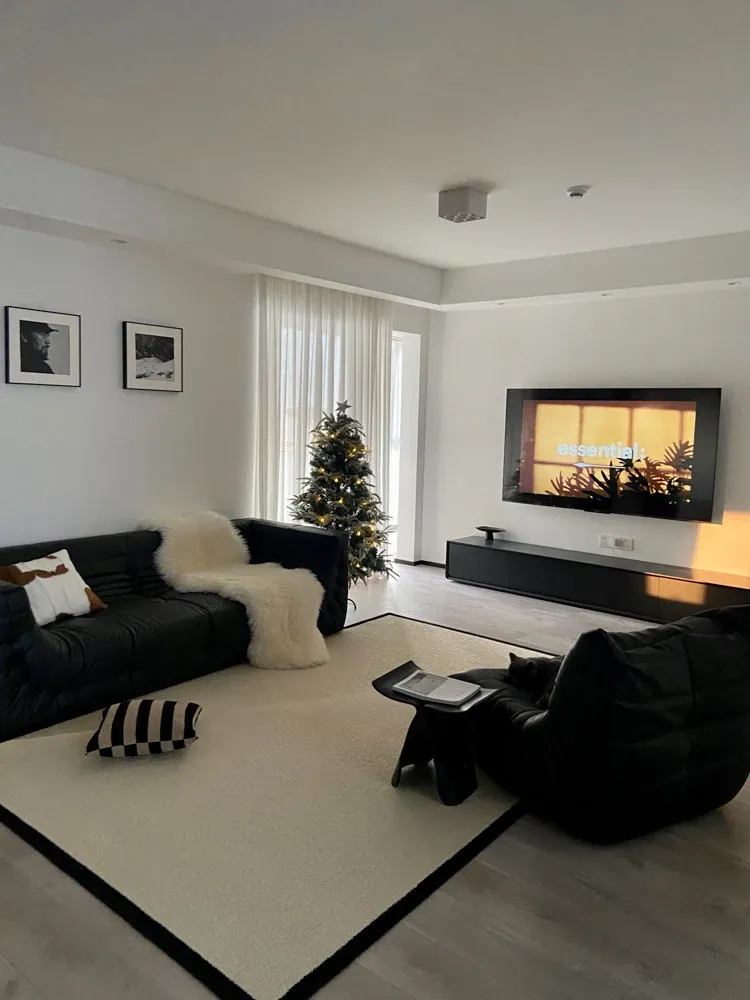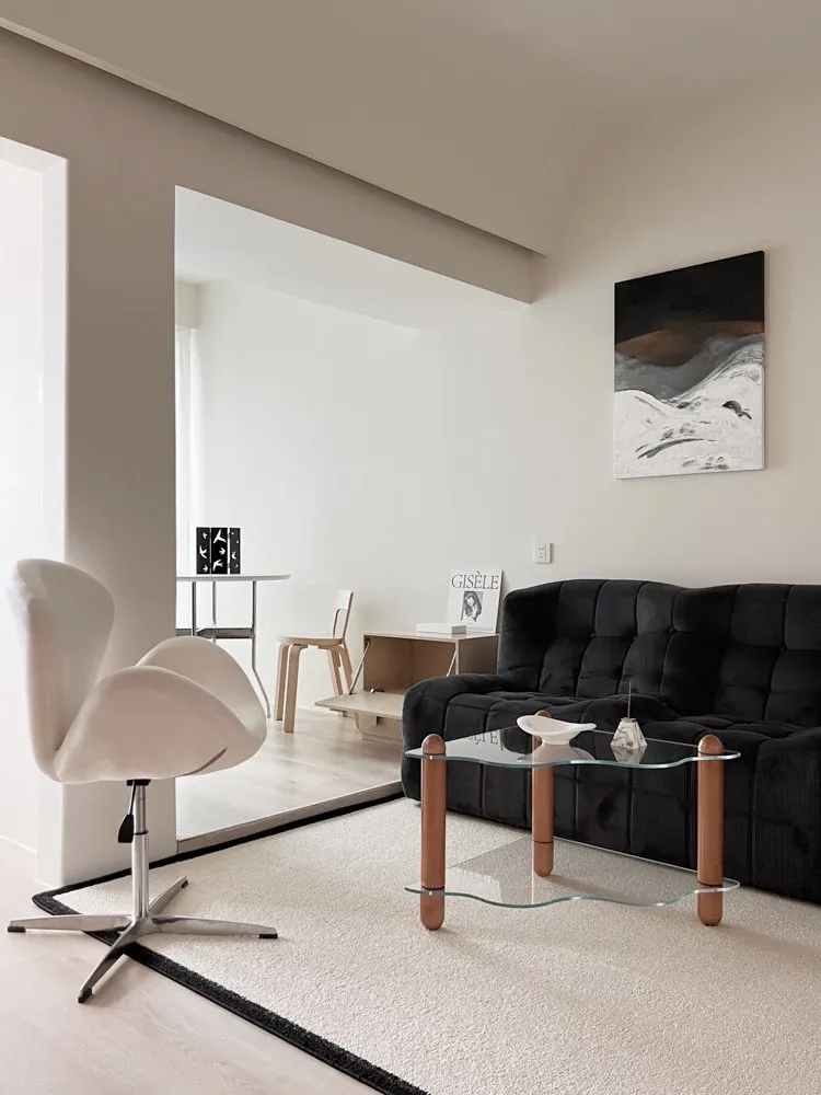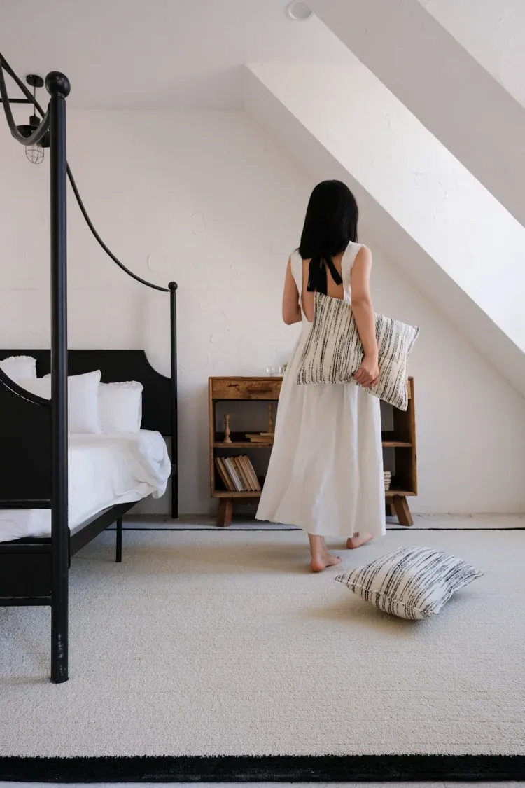 若奈テクスチャー藻糸2.0!R1tzリッツ ブラック&ホワイト 防水リビングマット 大面積カバーでお部屋をスタイリッシュに演出!