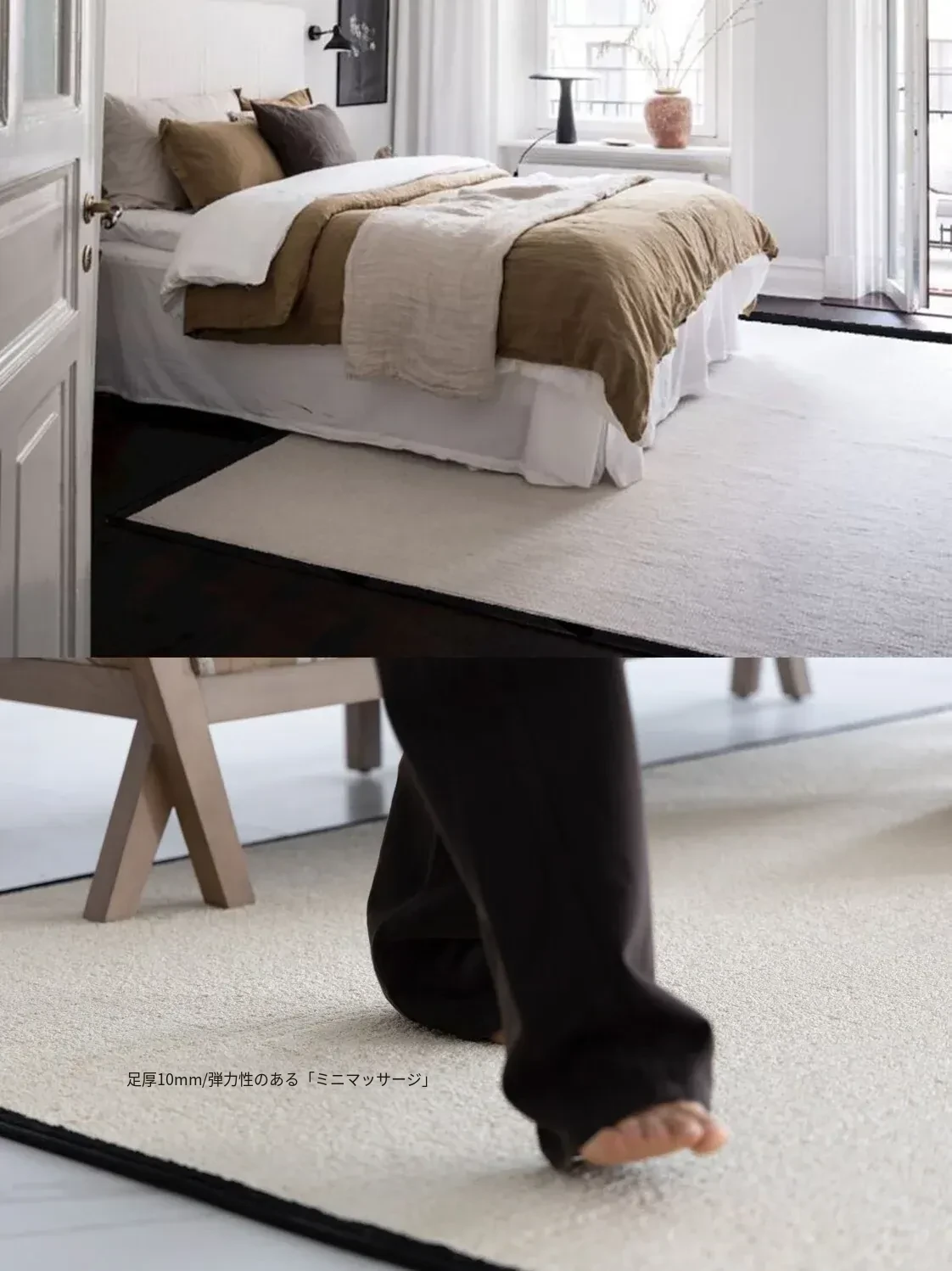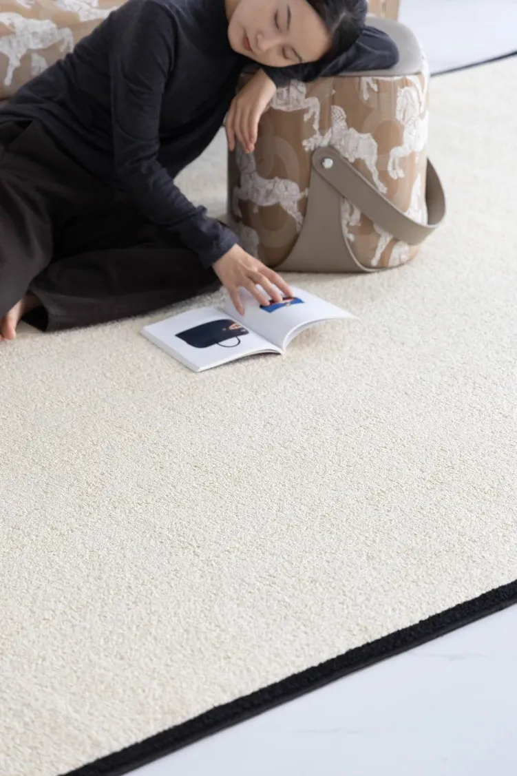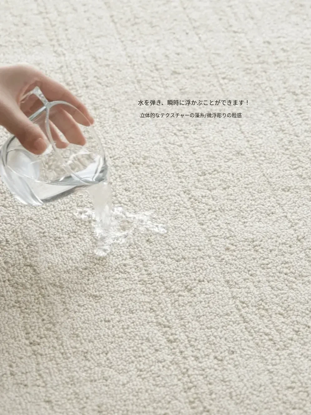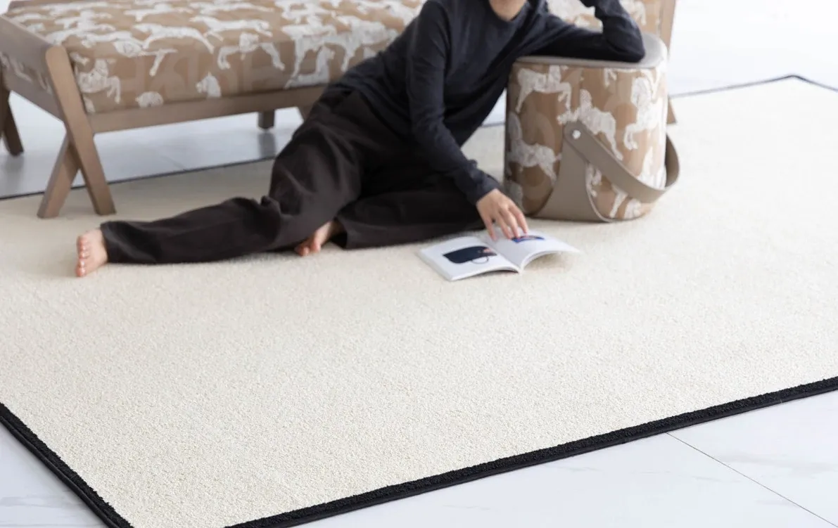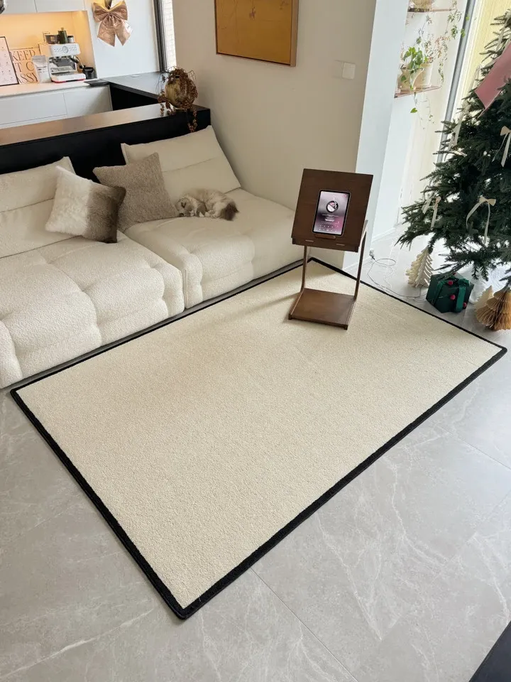 若奈 R1tzリッツ!ブラックホワイト藻糸微防水カーペット、汚れに強いクリーム色のリビング・ベッドルーム用ベッドサイドマット。おしゃれで機能的、あなたの空間を引き立てます!