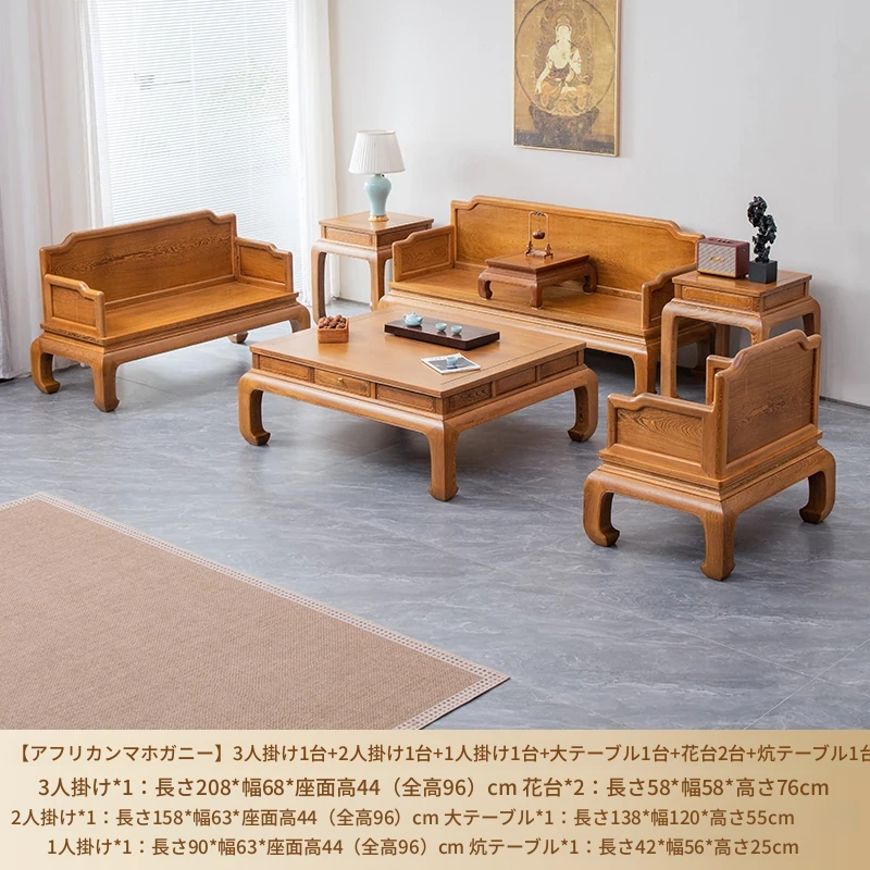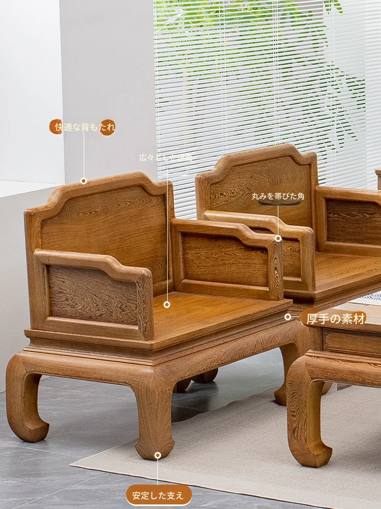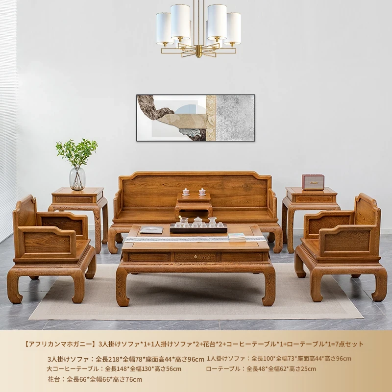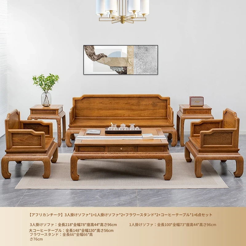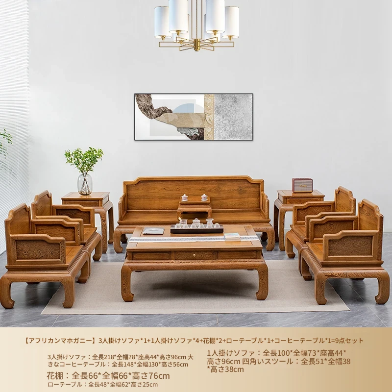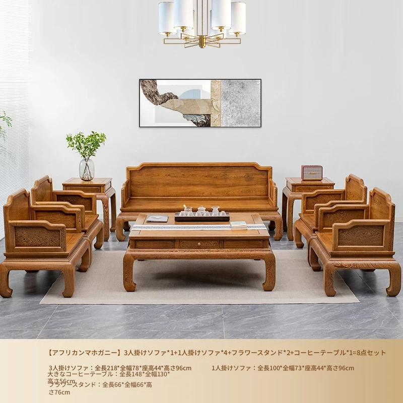 鶏翅木製のソファと新中式の紅木ティーテーブルセット - リビングルーム向けのフルソリッドウッドソファと椅子、ラグジュアリーで快適な大座席!
