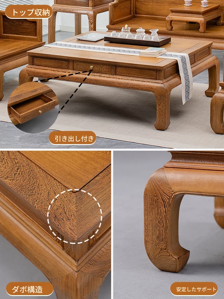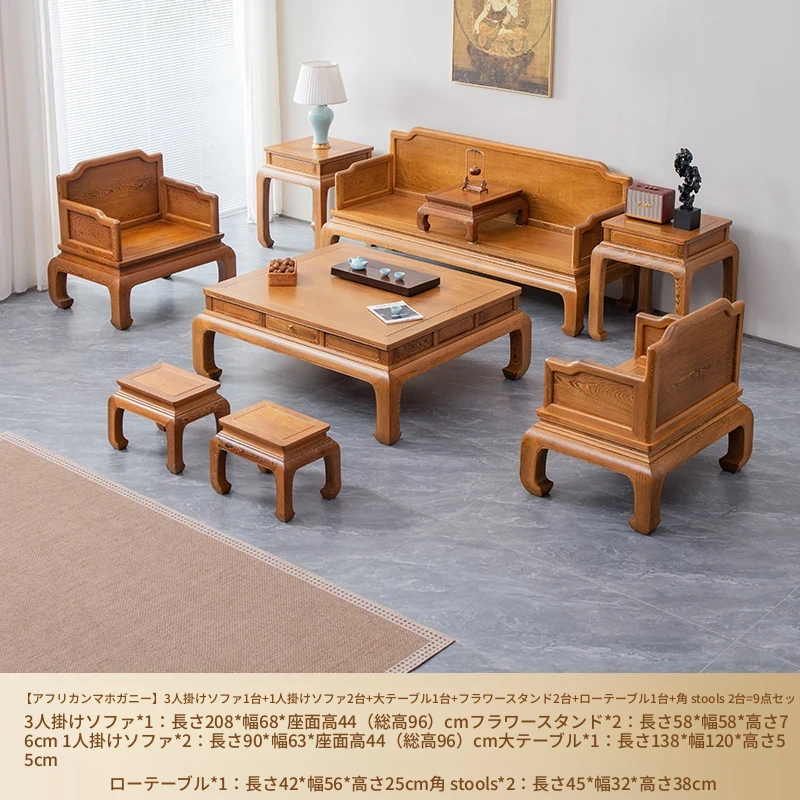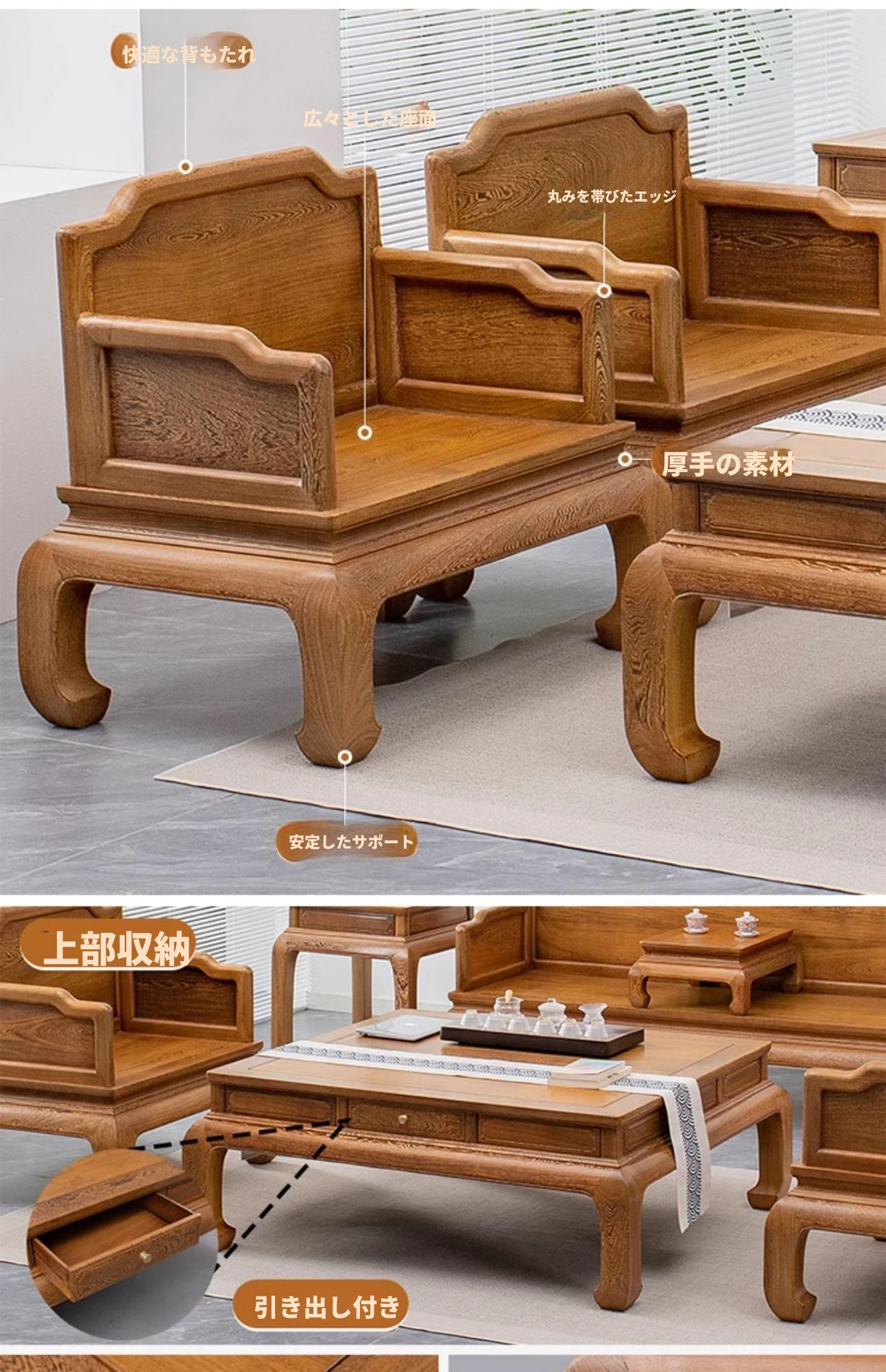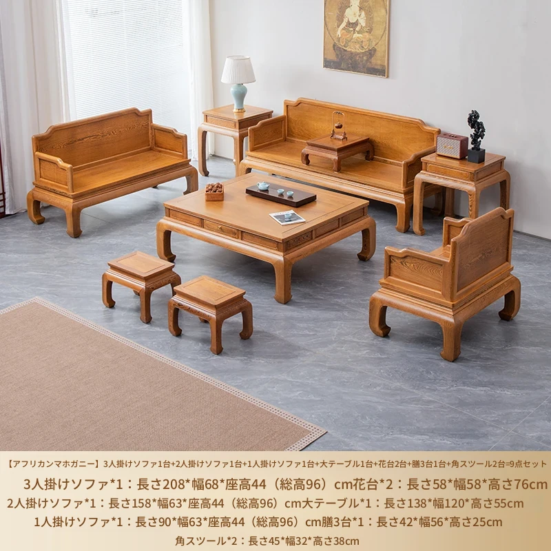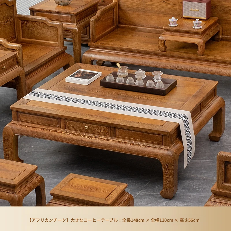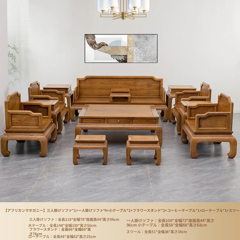 鶏翅木製のソファと新中式の紅木ティーテーブルセット - リビングルーム向けのフルソリッドウッドソファと椅子、ラグジュアリーで快適な大座席!