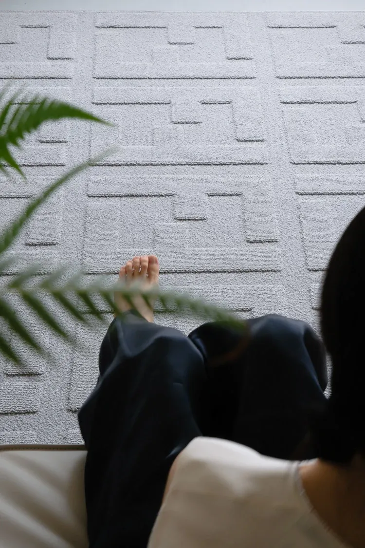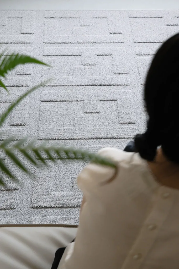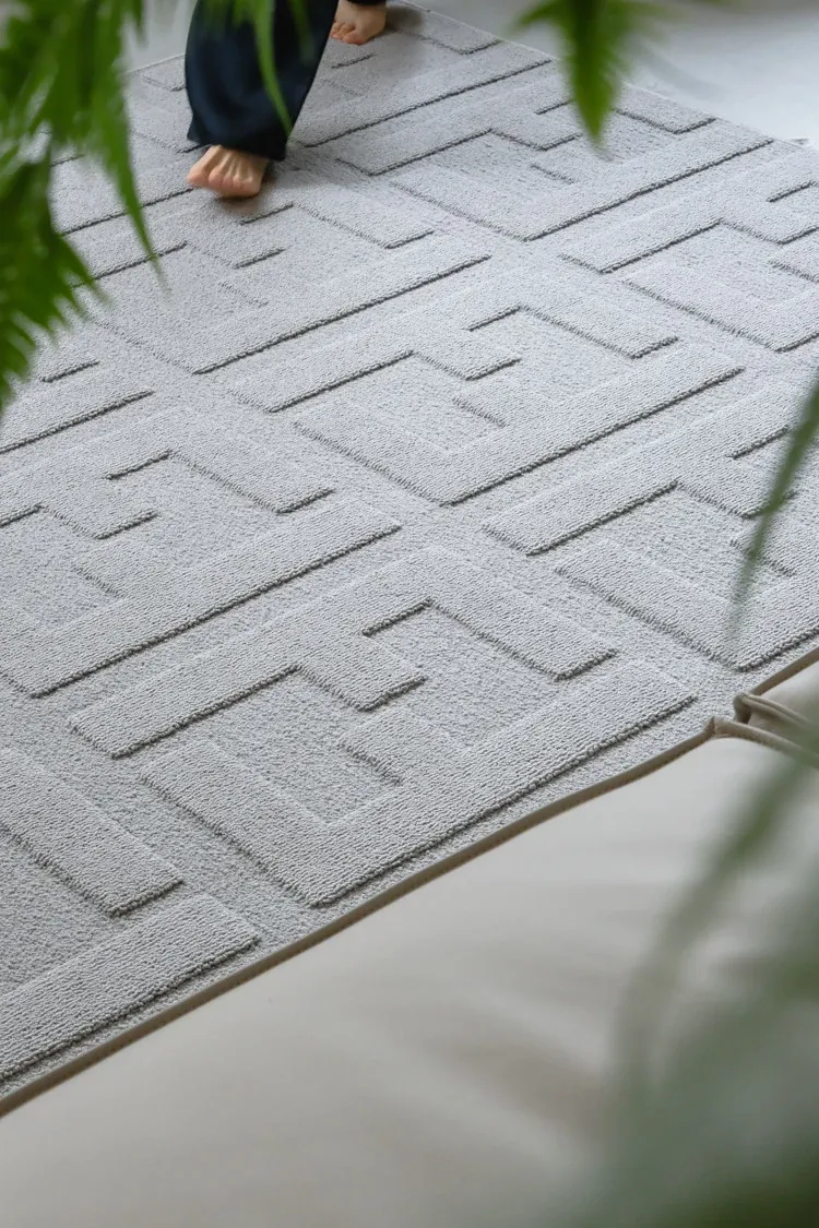 若奈 Fend*パールグレー「ミニ防水」ダブルF立体浮彫リビングカーペット・玄関・ベッドサイドマット【快適な足元を演出】【スタイリッシュなインテリアに最適】