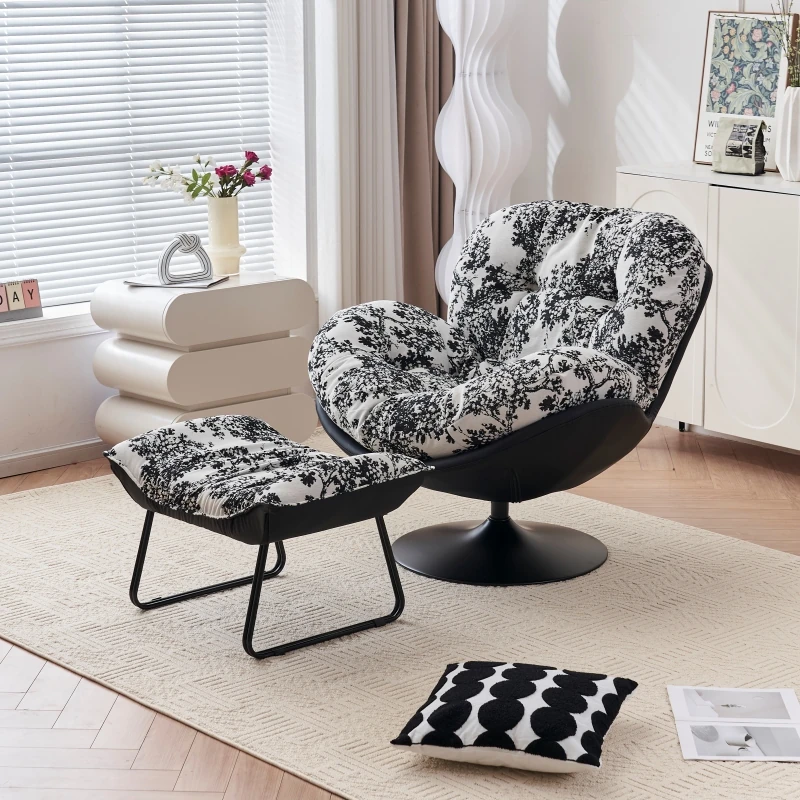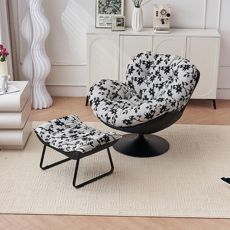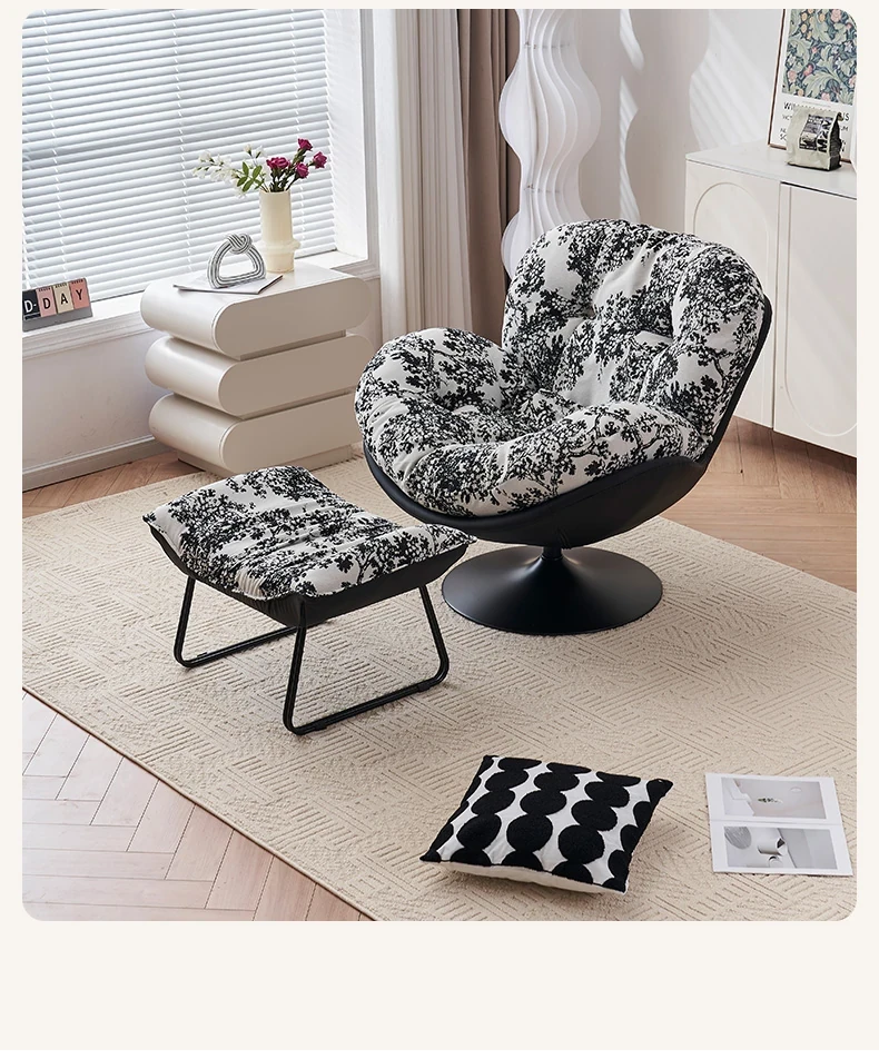 水墨の花枝—黒猫の爪皮【回転可能】+フットスツール