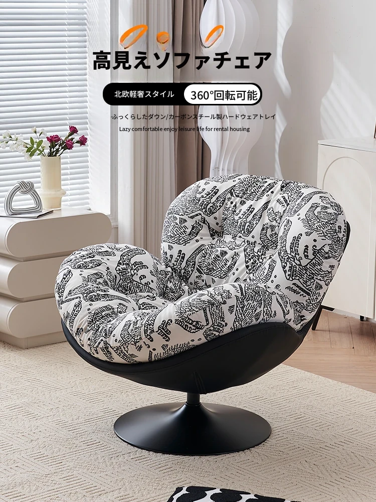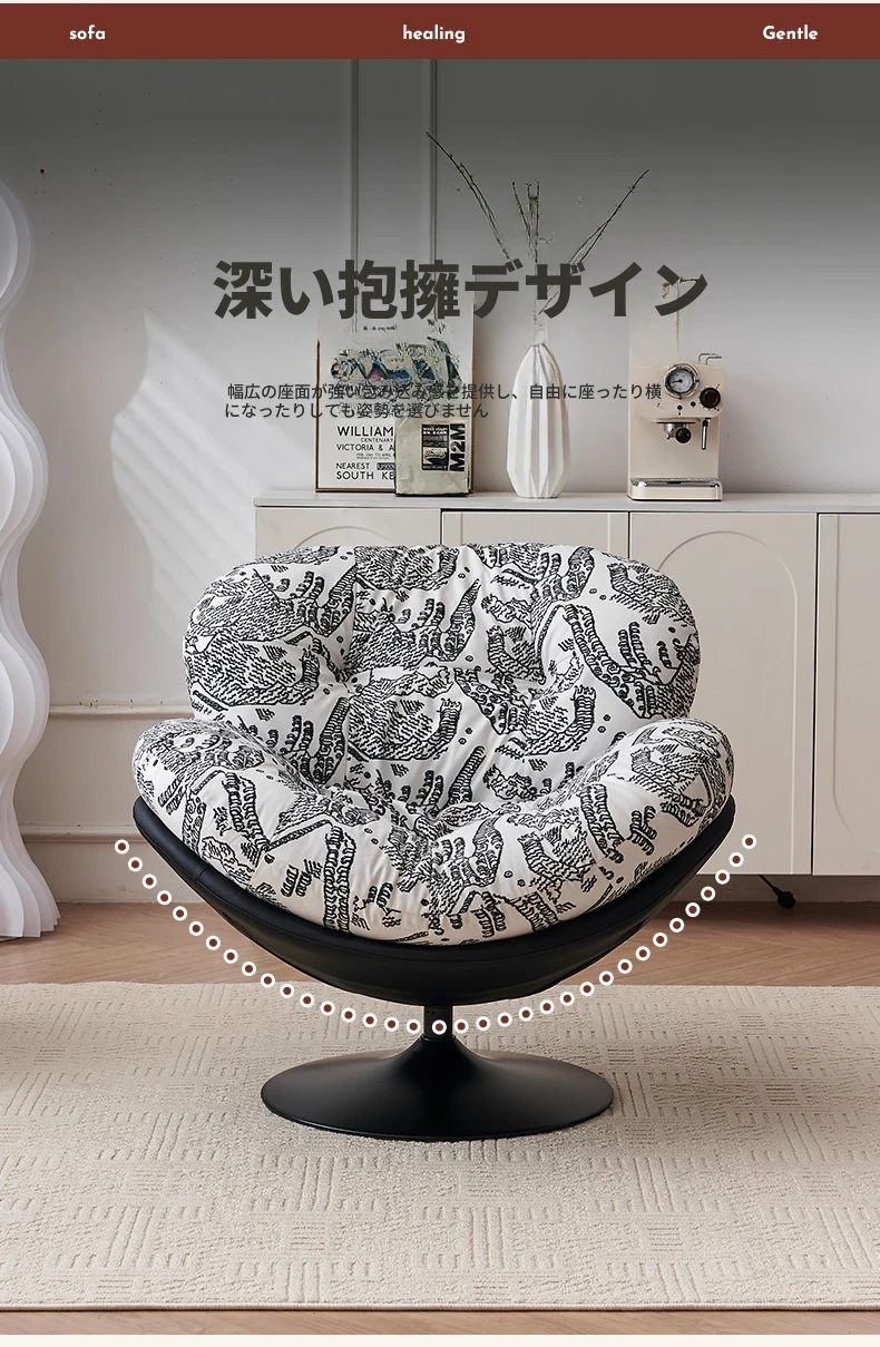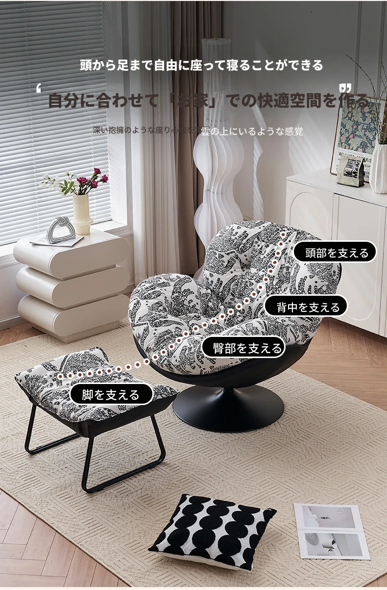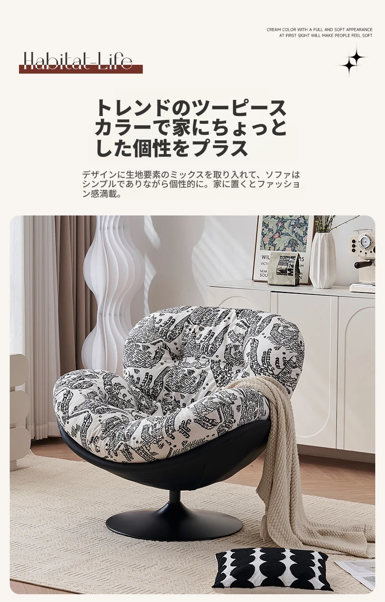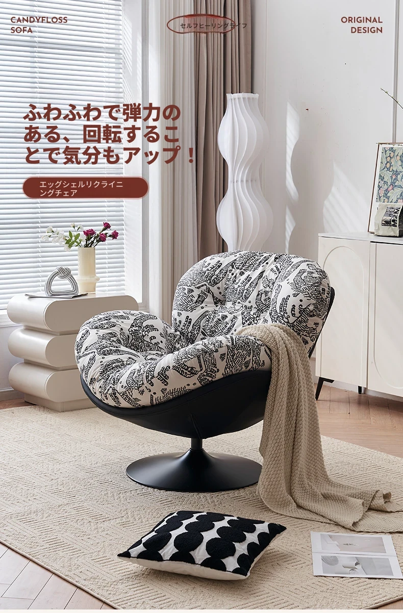 レトロデザインの一人用ソファチェア、バルコニーやリビングにぴったり!回転機能付きの卵型チェアで、小スペースでもゆったりとくつろげる。おしゃれで快適なリラックス空間をあなたの家に!
