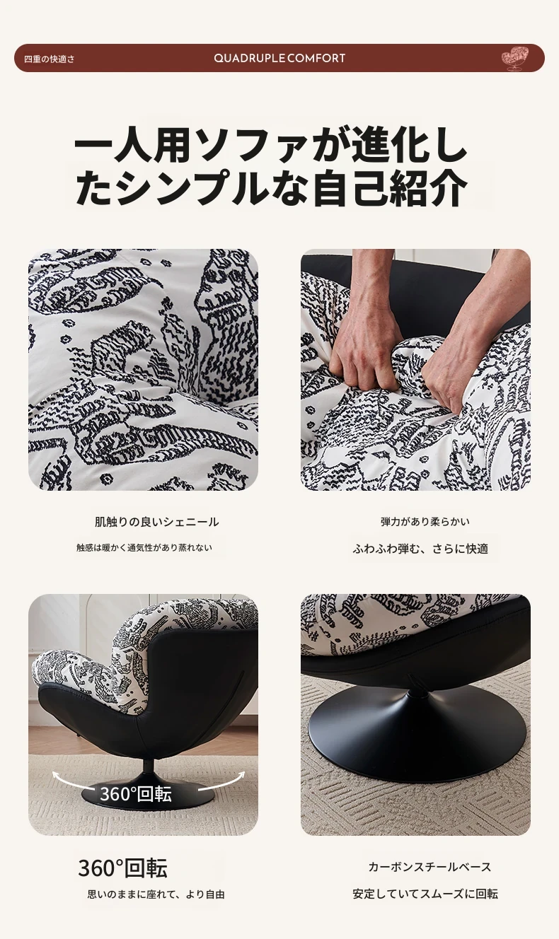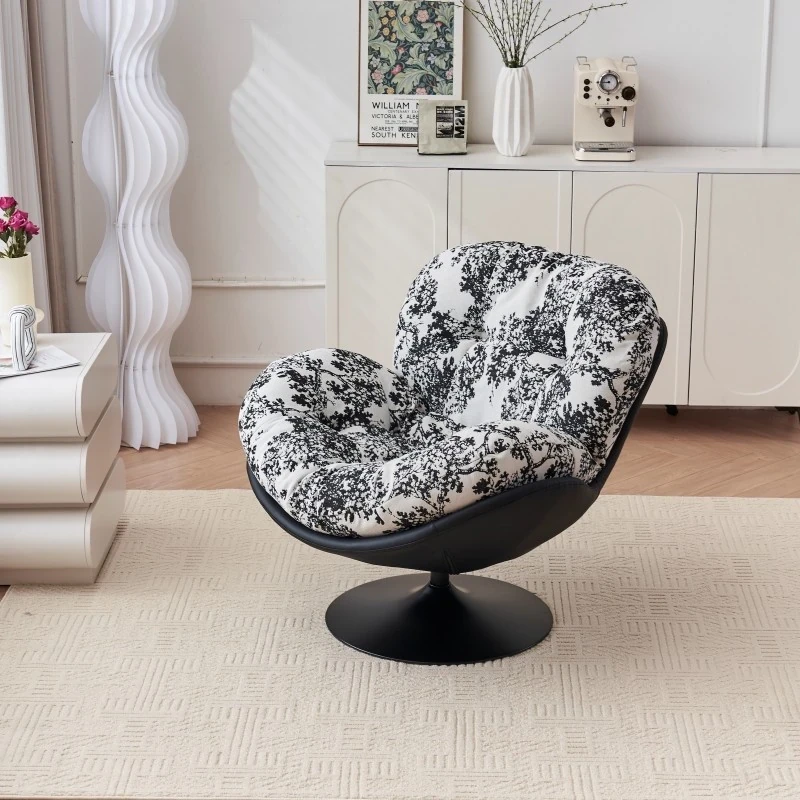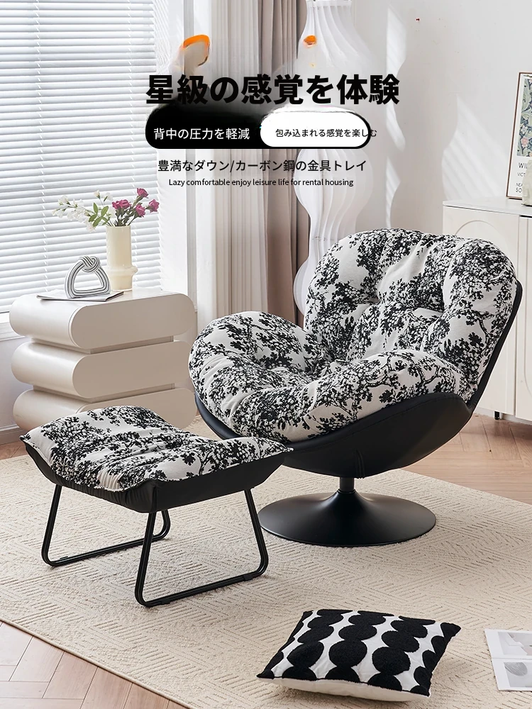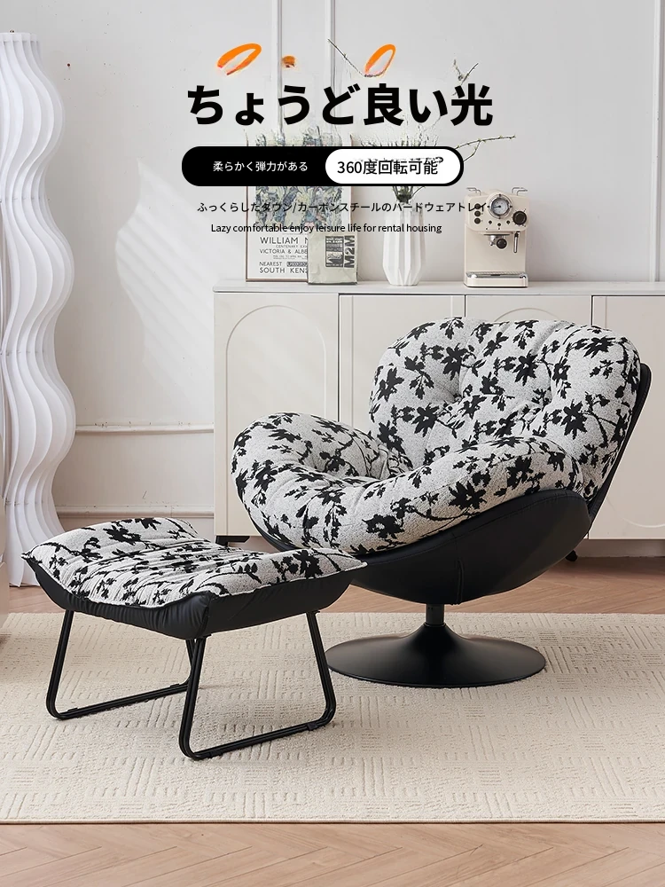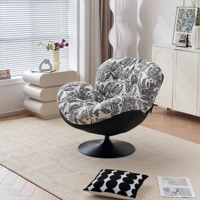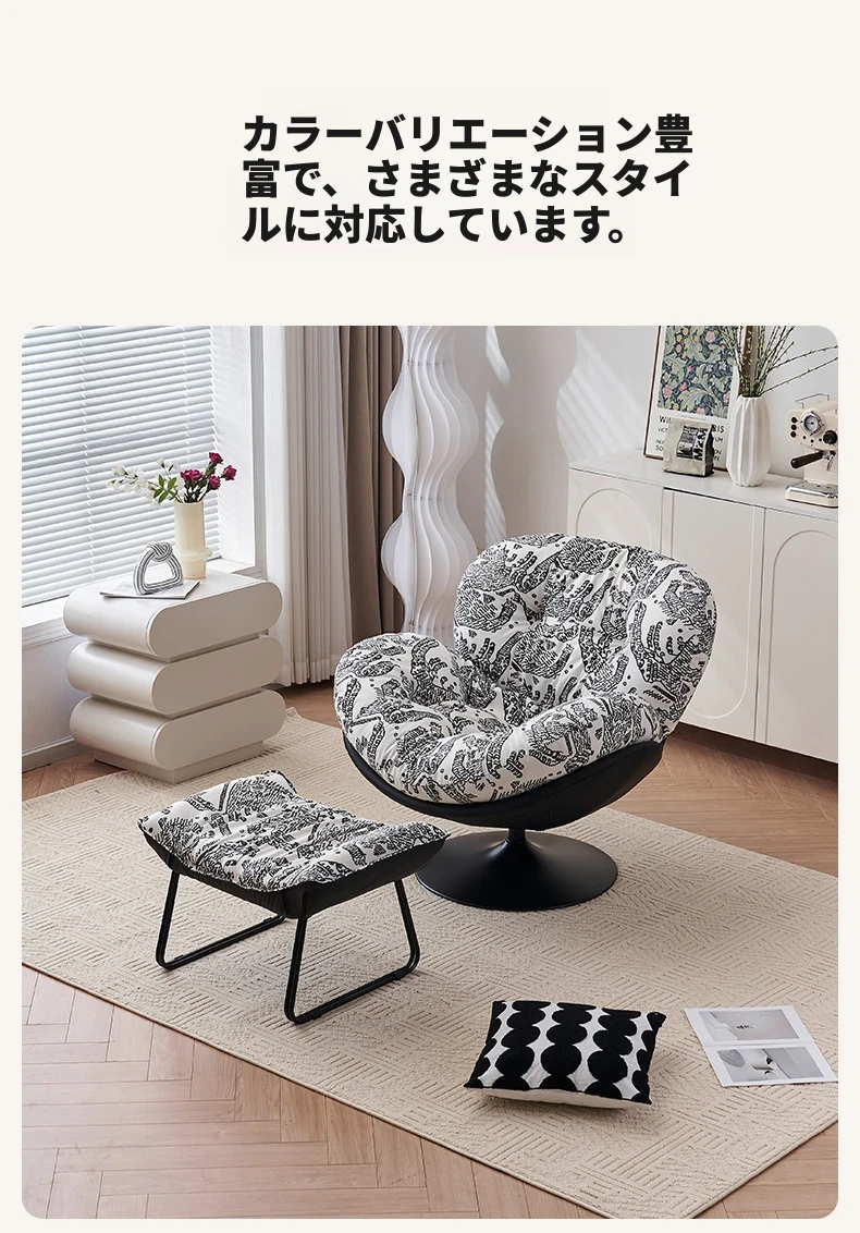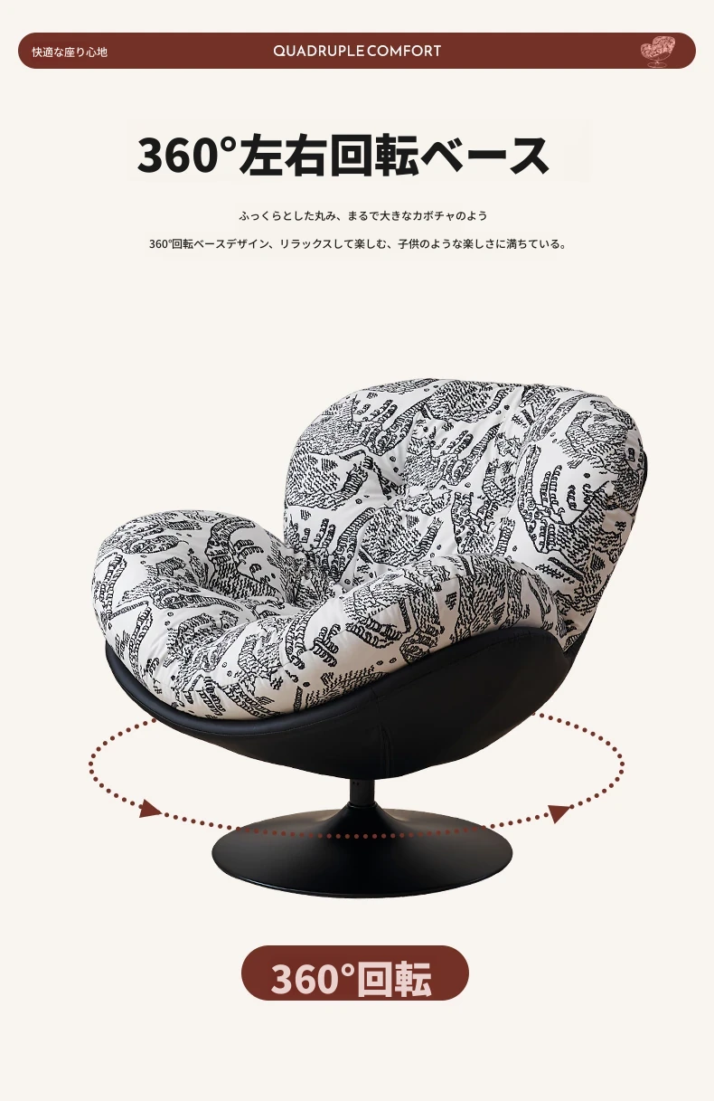 レトロデザインの一人用ソファチェア、バルコニーやリビングにぴったり!回転機能付きの卵型チェアで、小スペースでもゆったりとくつろげる。おしゃれで快適なリラックス空間をあなたの家に!
