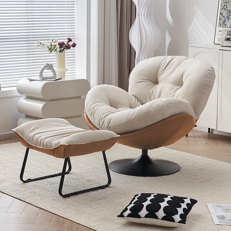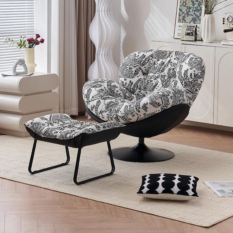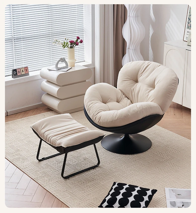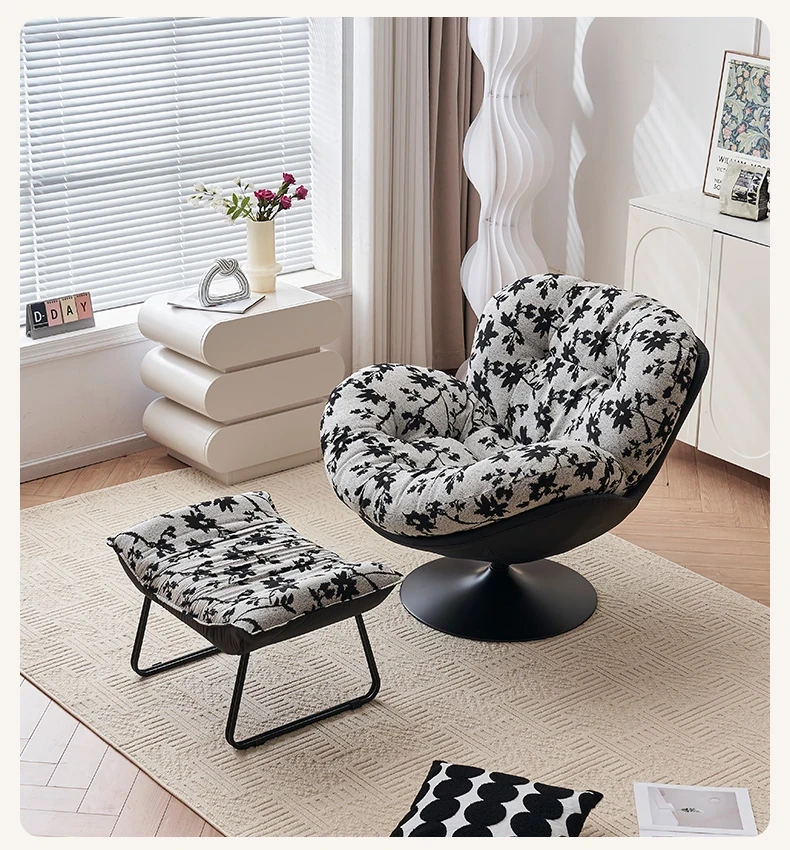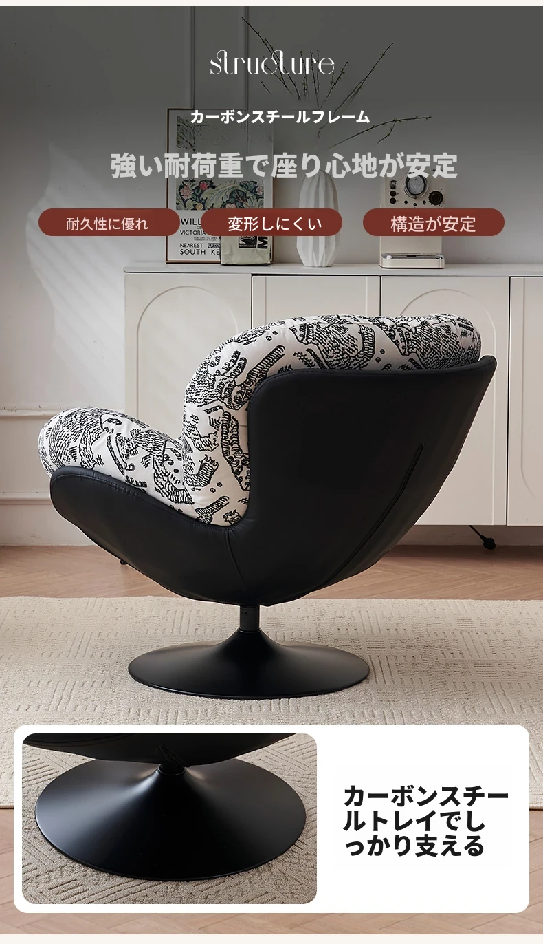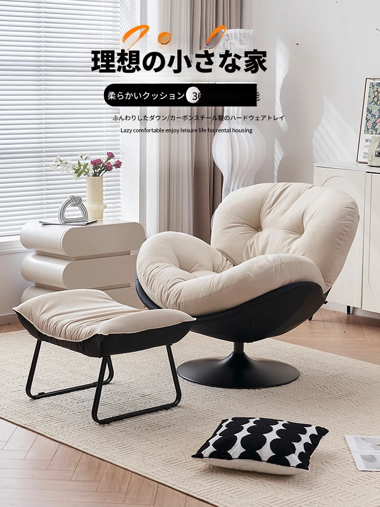 レトロデザインの一人用ソファチェア、バルコニーやリビングにぴったり!回転機能付きの卵型チェアで、小スペースでもゆったりとくつろげる。おしゃれで快適なリラックス空間をあなたの家に!