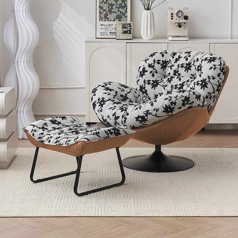水墨の花枝—茶色の猫の爪皮【回転可能】+フットスツール